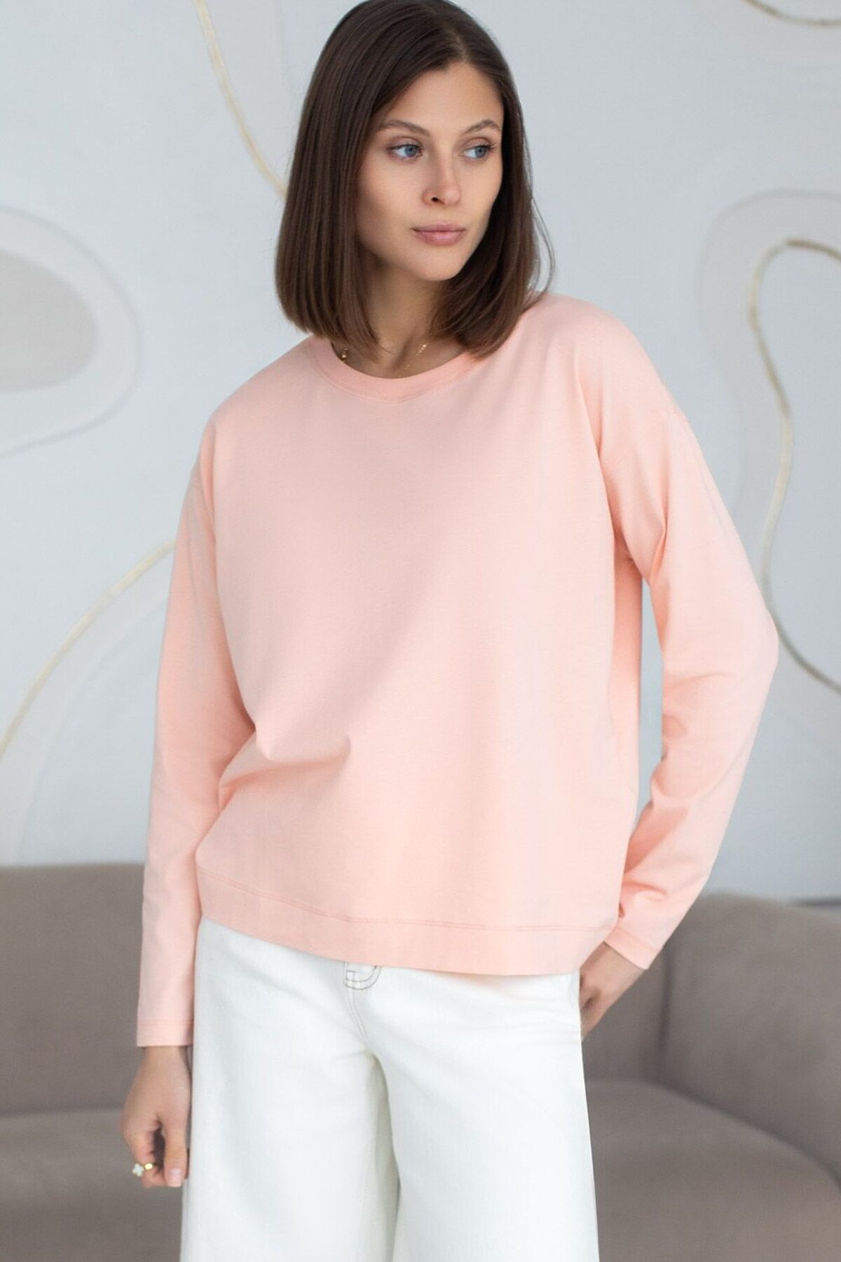 Базовый лонгслив из премиального хлопка с эластаном VILATTE, пудровый