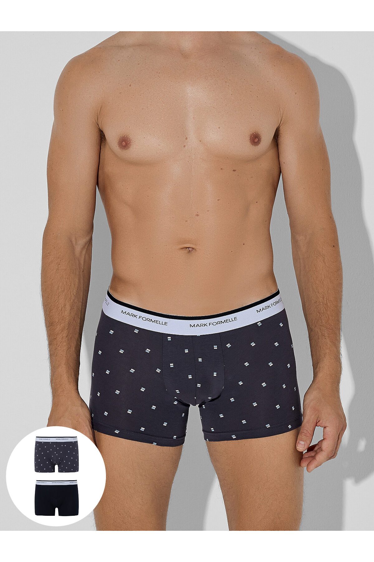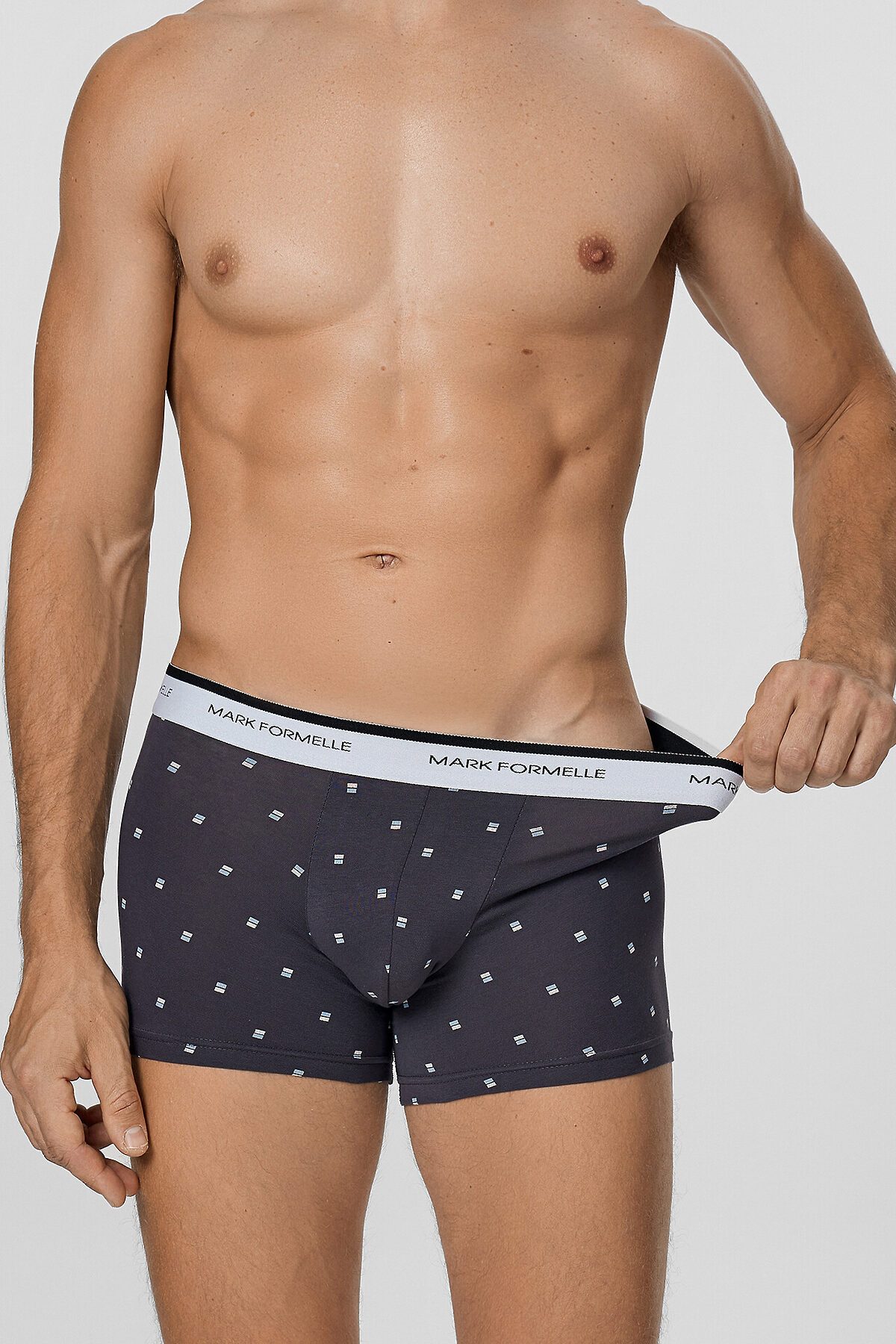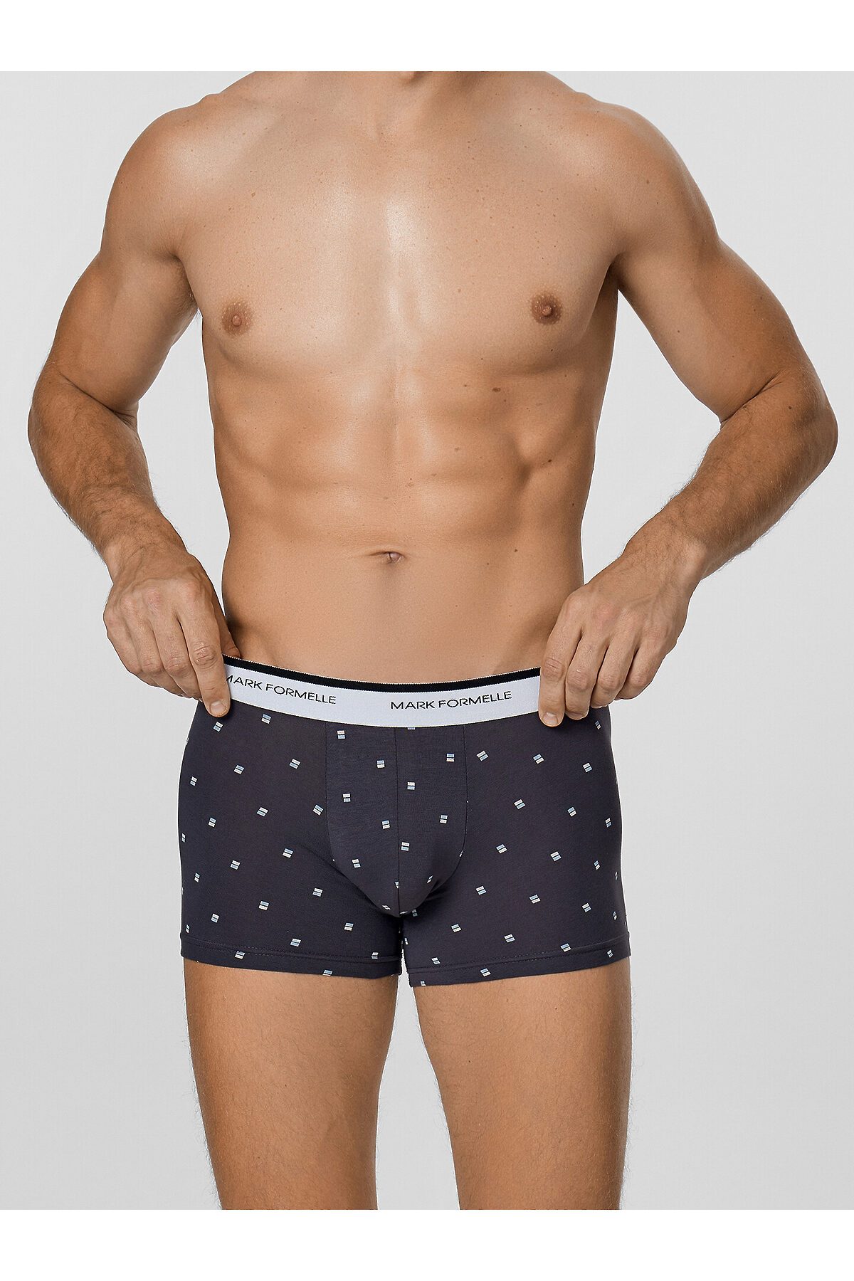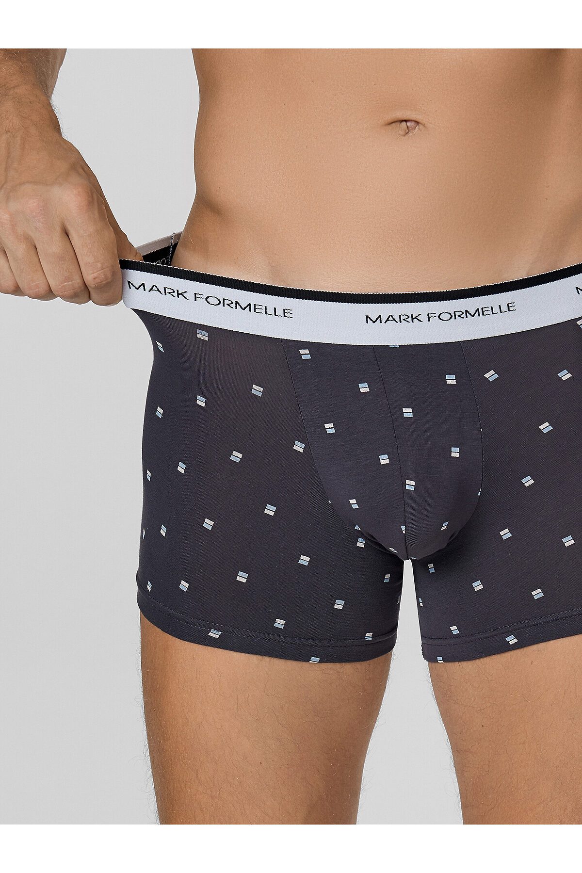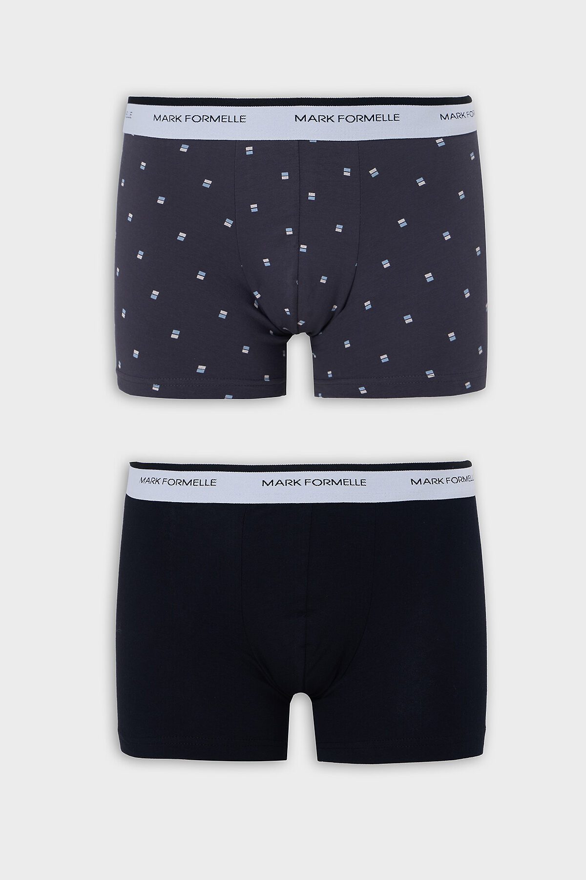 Трусы мужские (2шт) MARK FORMELLE, прямоугольники на т.сером +черный