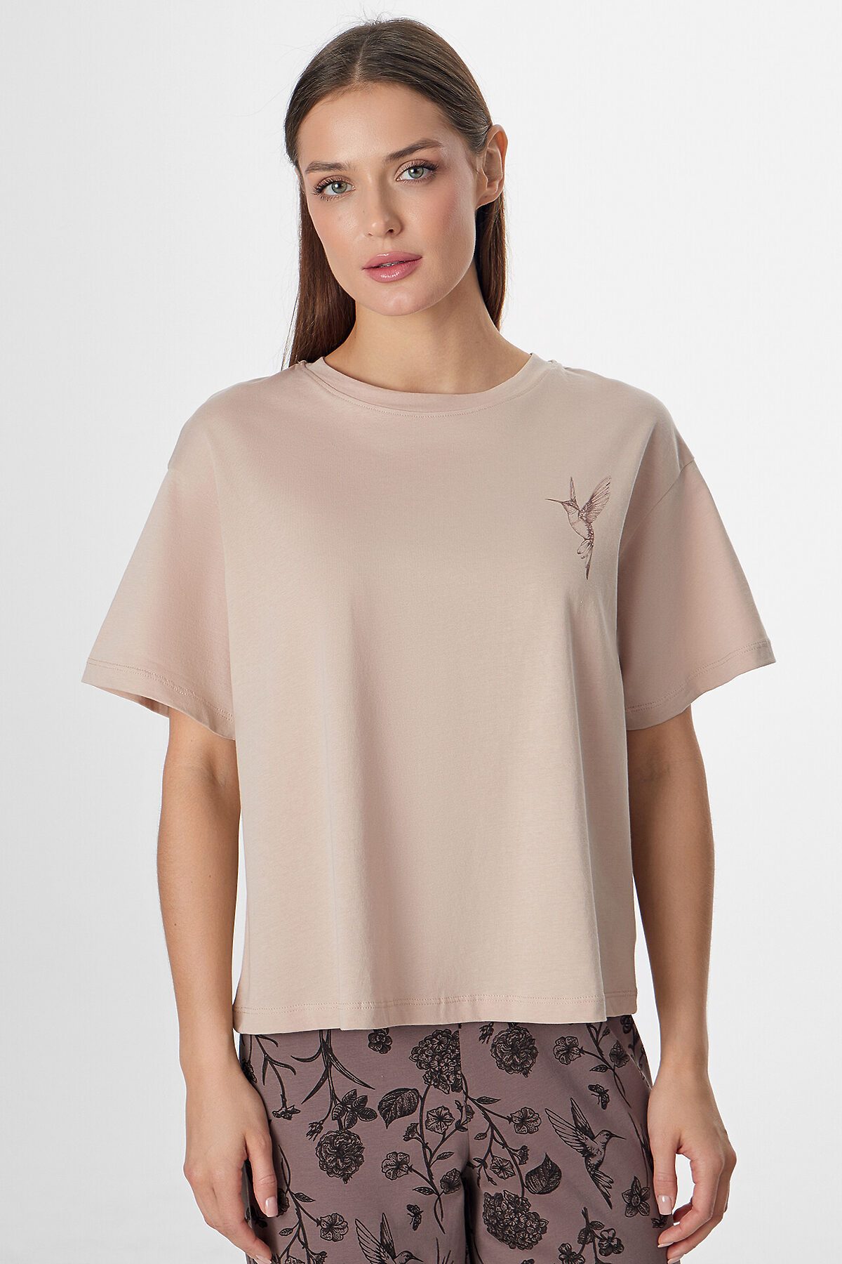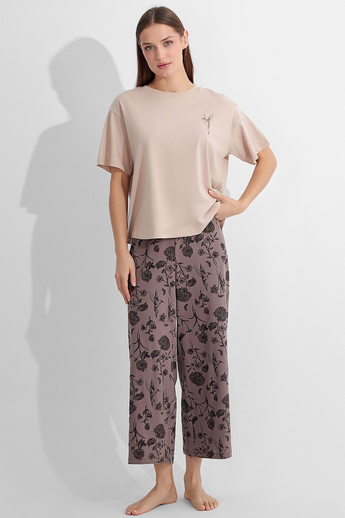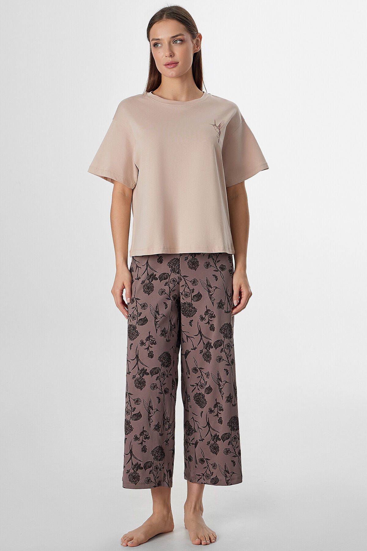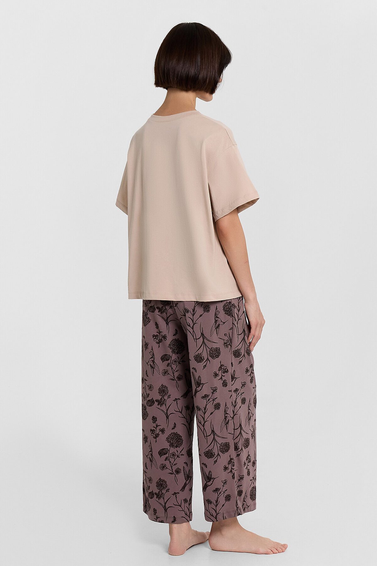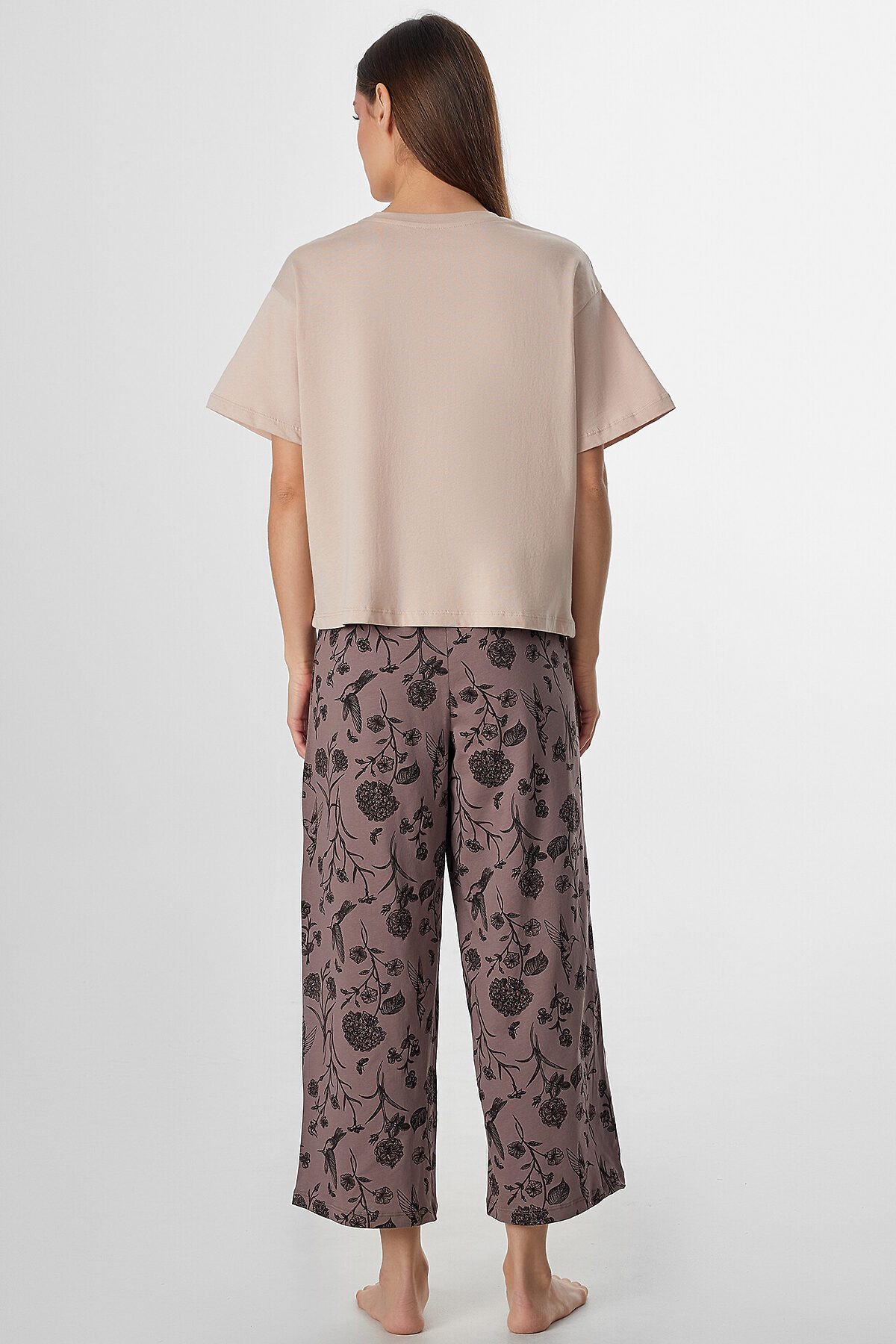 Комплект женский (джемпер, бриджи) MARK FORMELLE, холодный бежевый +цветы на коричневом