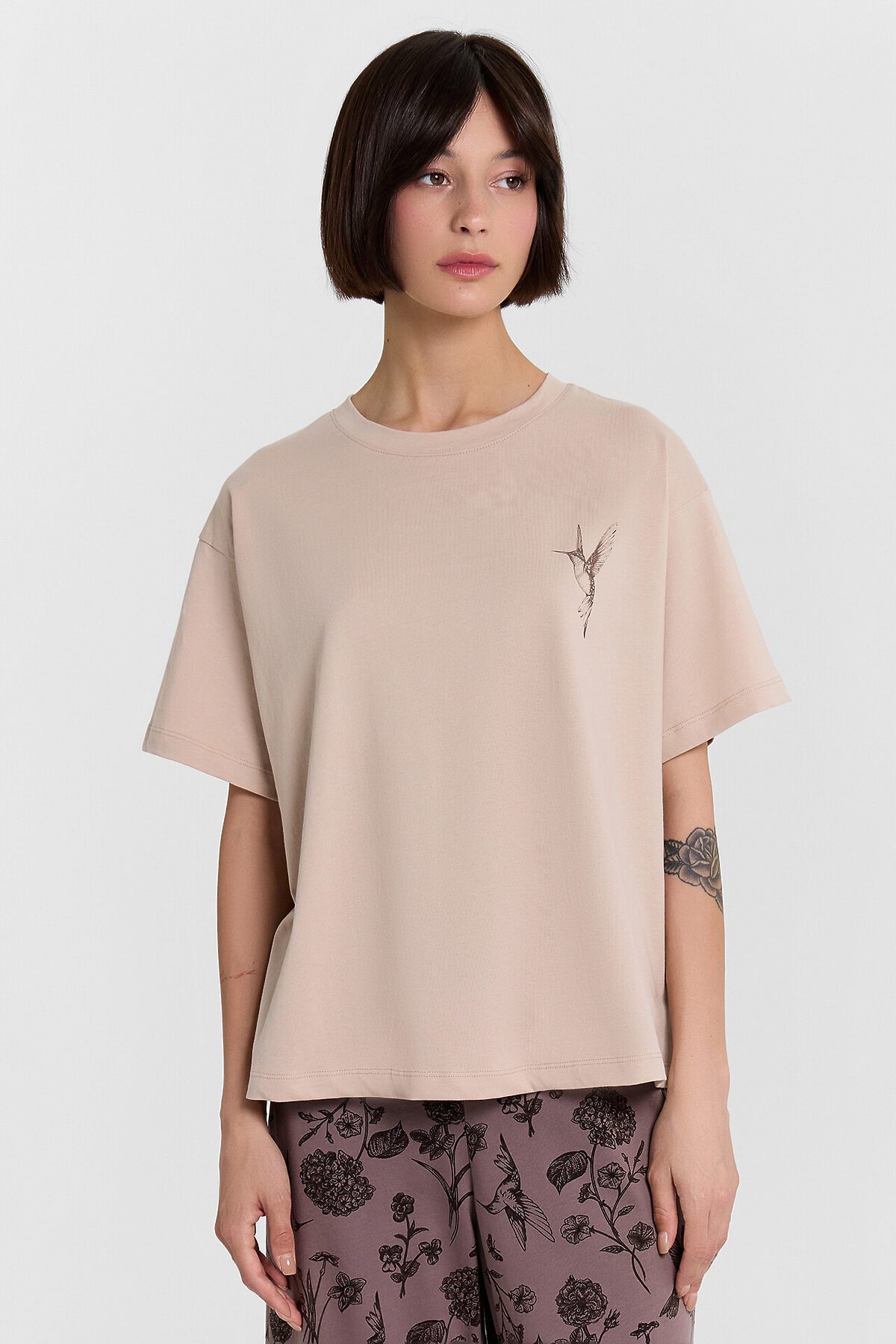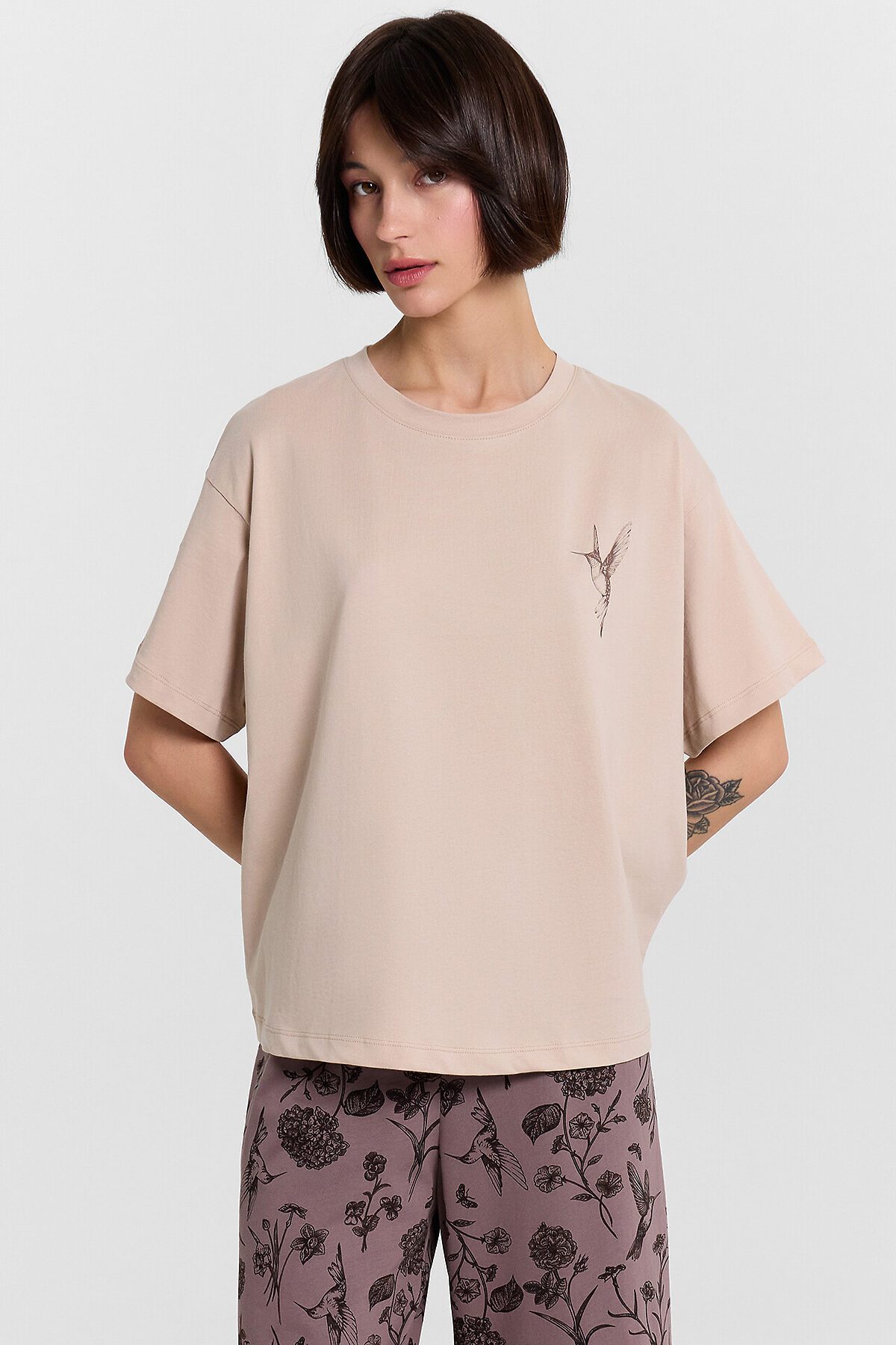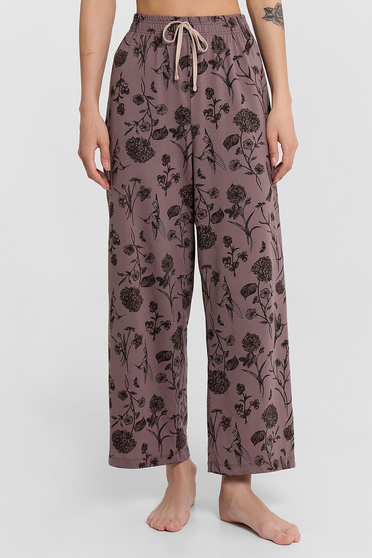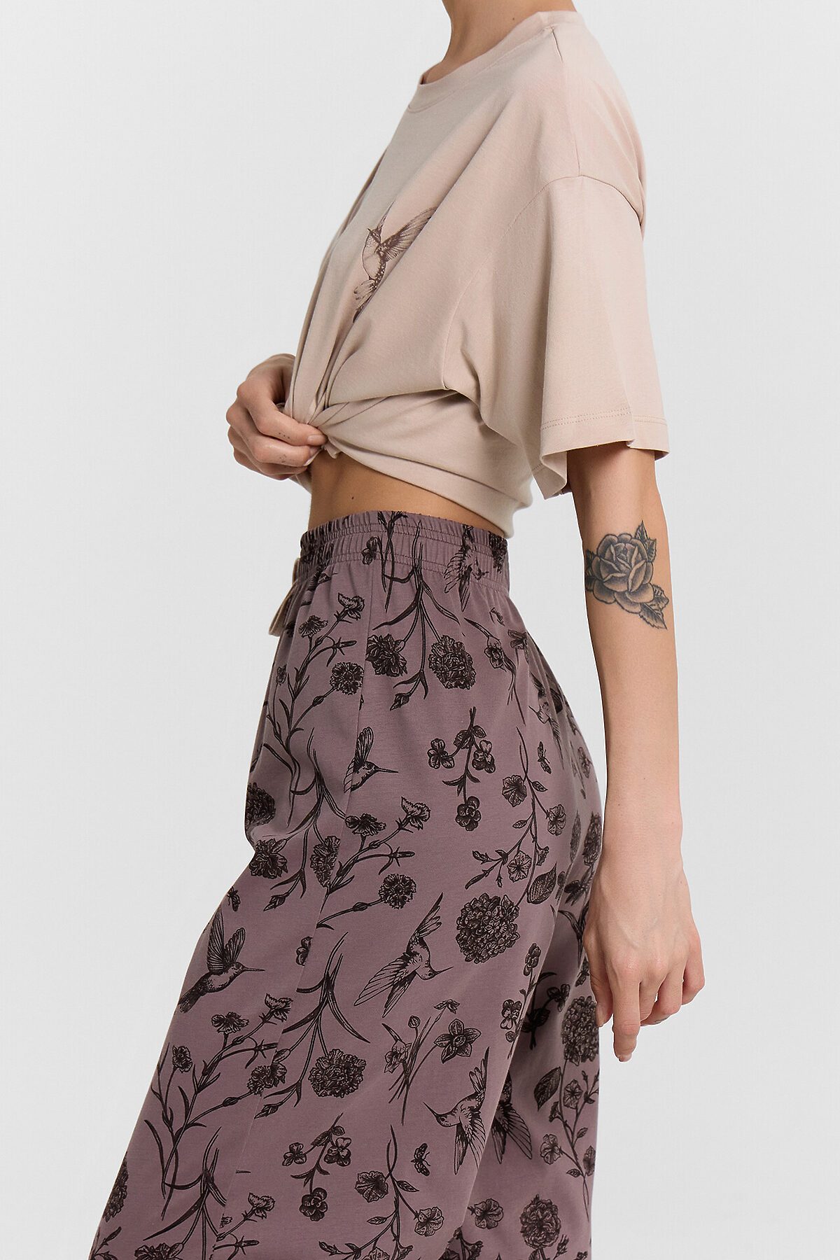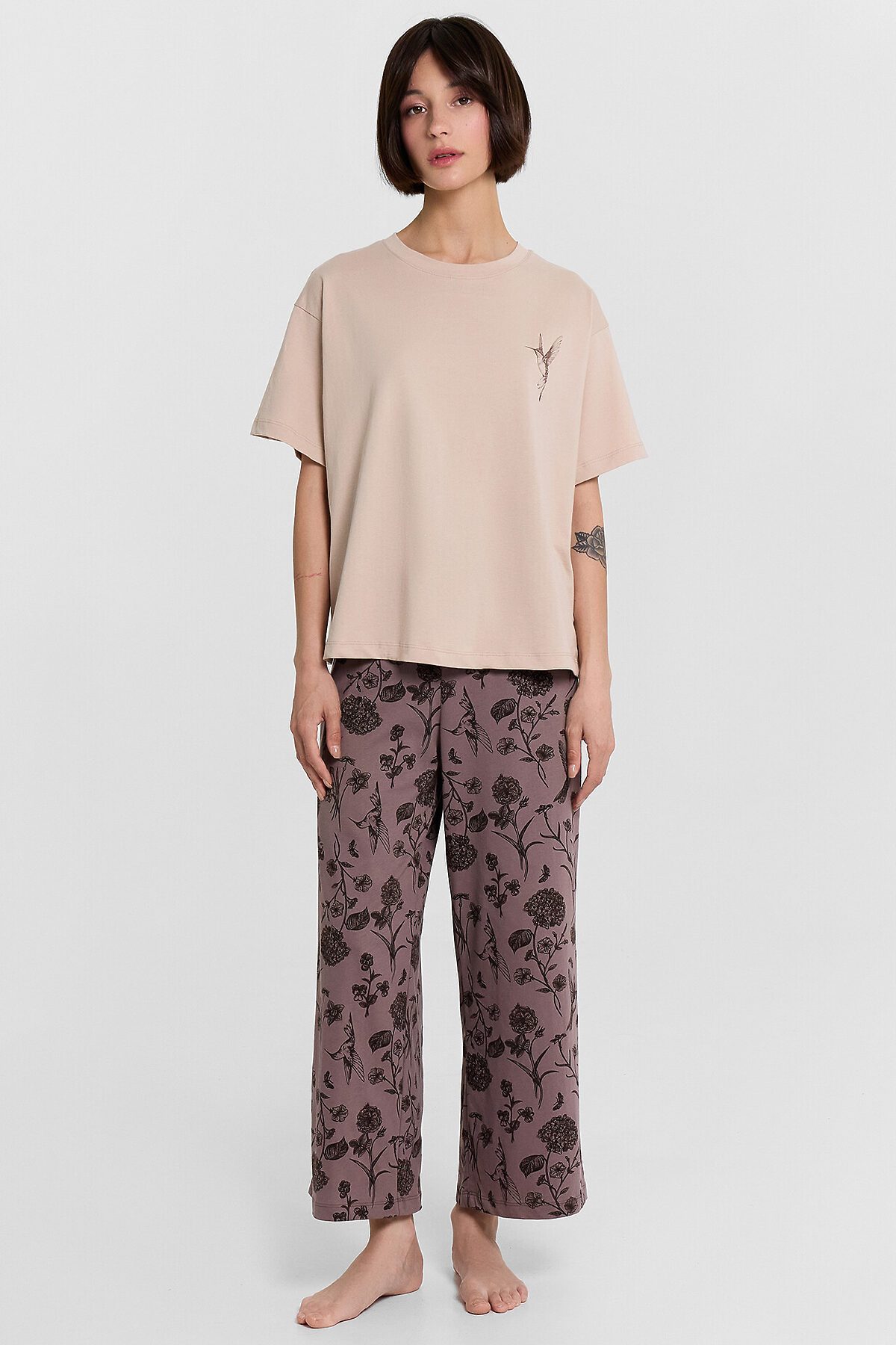 Комплект женский (джемпер, бриджи) MARK FORMELLE, холодный бежевый +цветы на коричневом