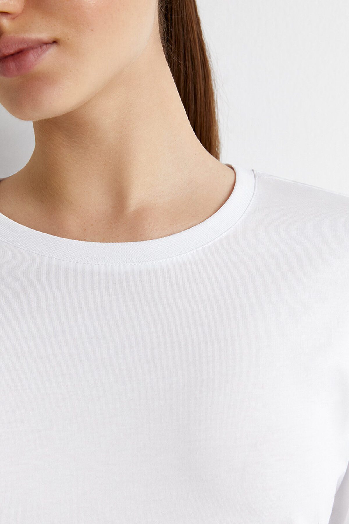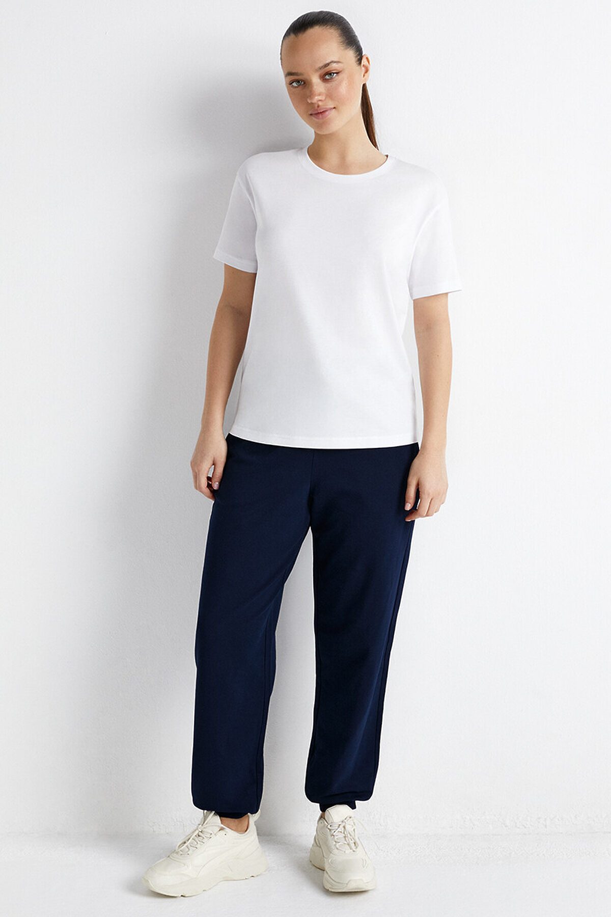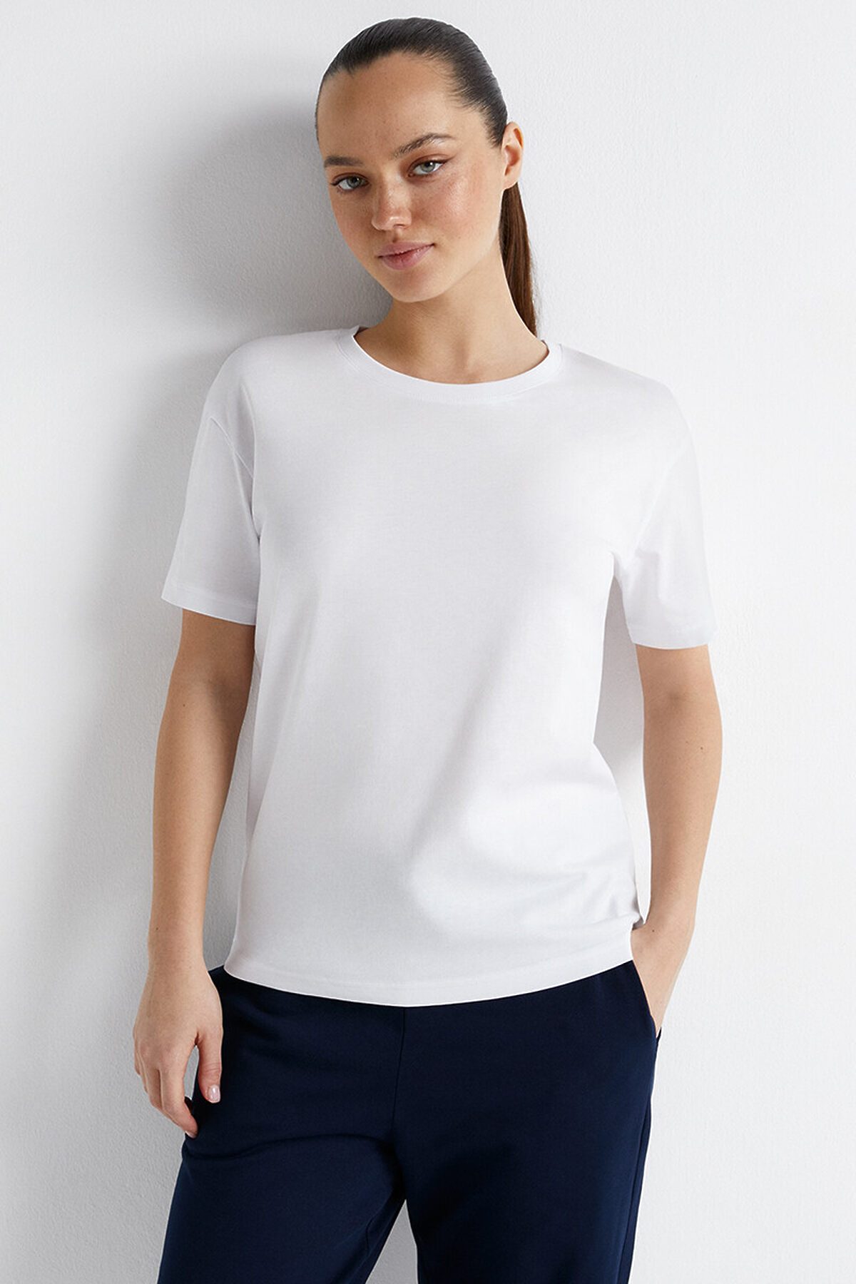 Женская футболка с коротким рукавом. В составе – высококачественный хлопок, который обладает отличной воздухопроницаемостью, хорошо впитывает влагу и подходит даже для чувствительной кожи, и эластан, который позволяет создать полуприлегающий силуэт и способствует длительному сохранению формы и цвета. Удобная, легкая и стильная. Благодаря прямому крою и свободному силуэту эффектно смотрится независимо от типа фигуры, обеспечивает свободу движений, и подходит как для занятий спортом, так и на каждый день.