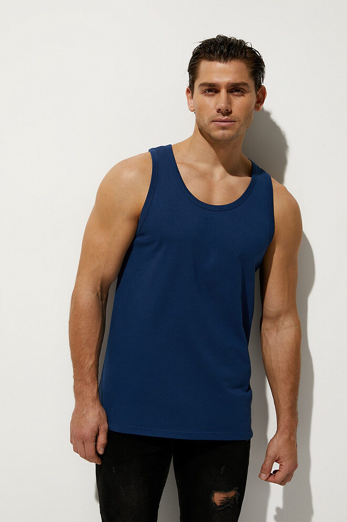 Мужская классическая бельевая майка из хлопка, с круглой широкой горловиной. Выполнена из легкого и мягкого материала, который отлично пропускает воздух, хорошо впитывает влагу и подходит даже для самой чувствительной кожи. Горловина и проймы обработаны бейкой. Универсальная прямая майка свободного кроя, которая превосходно подходит и на каждый день, и для занятий спортом.