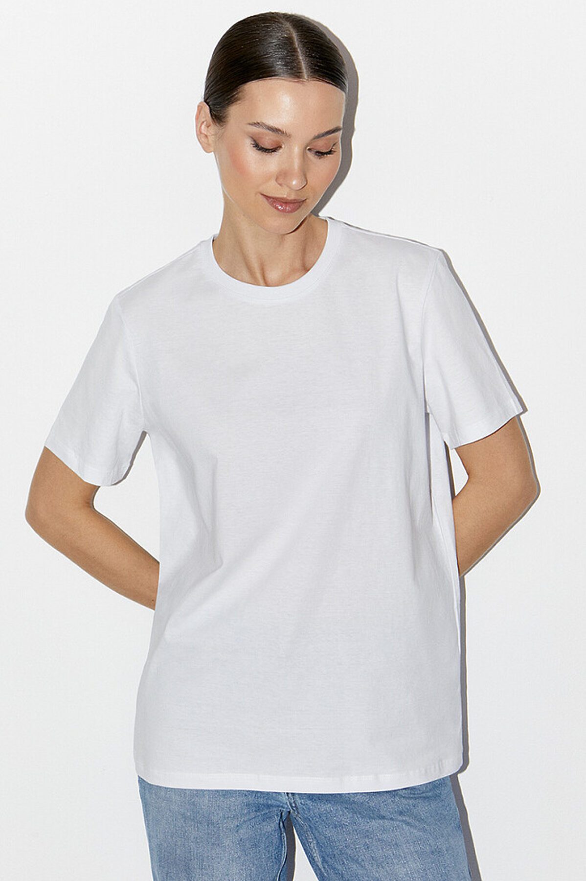 Женская футболка с круглым вырезом горловины с коротким рукавом. Изготовлена из высококачественного 100% хлопка, который обладает высокой воздухопроницаемостью, отлично впитывает влагу и подходит для чувствительной кожи. Комфортно ощущается благодаря свободному силуэту, и стильно смотрится благодаря лаконичному дизайну. Футболка универсально подойдет и в качестве повседневной базовой, и для занятий спортом.