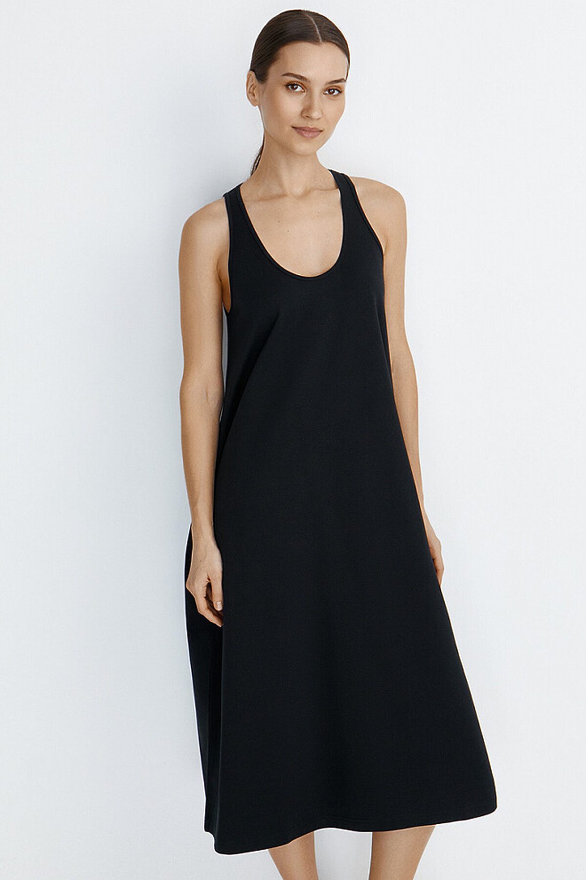 Женское платье «макси» А – силуэта с открытой проймой, глубоким круглым вырезом и карманами в боковых швах. Выполнено из высококачественного двухниточного футера. В составе трикотажного материала мягкий хлопок, который отлично пропускает воздух, приятно ощущается на теле и подходит для нежной и чувствительной кожи. Добавление эластана обеспечивает сохранение формы. Эффектное платье в спортивном стиле будет отлично смотреться как в рамках модных городских аутфитов, так и повседневных образов для дома и отдыха.