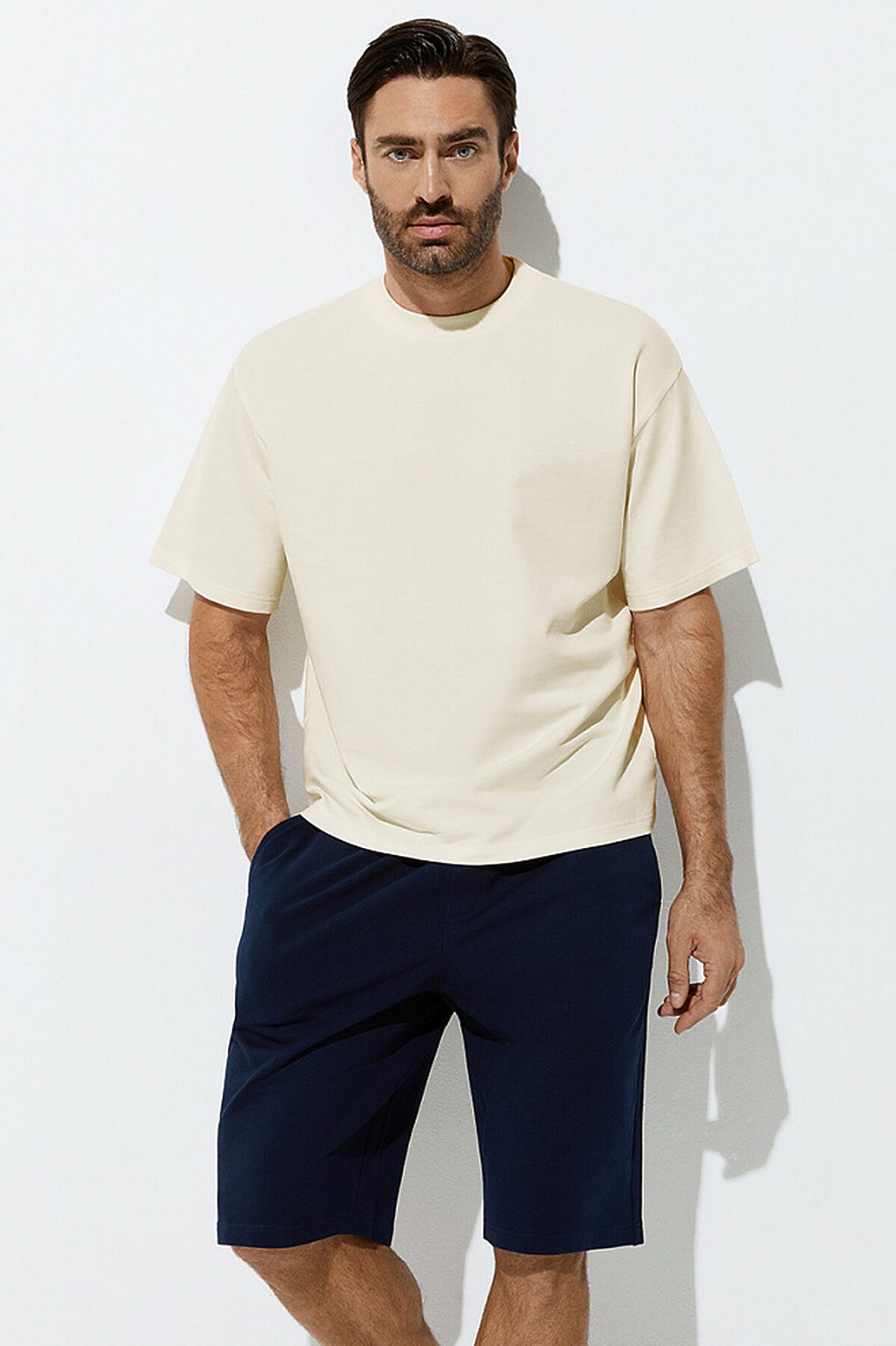 Мужская футболка OVERSIZE с коротким рукавом и круглым вырезом. Горловина обработана обтачкой из трикотажного материала кашкорсе.Выполнена из высококачественного двухниточного футера. В составе трикотажного материала мягкий хлопок, который отлично пропускает воздух, приятно ощущается на теле и подходит для нежной и чувствительной кожи. Добавление эластана обеспечивает сохранение формы. Стильная и комфортная футболка для дома, отдыха и городских образов.