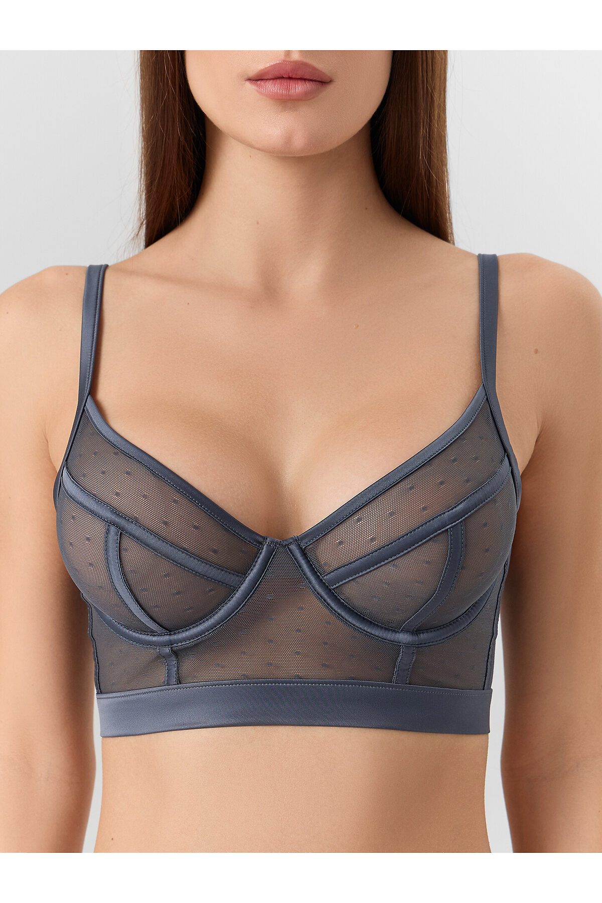 Очаровательный бюстгальтер из полупрозрачной эластичной сеточки добавит вашим соблазнительным образам утонченность и изящество. Модель с мягкими чашками на каркасах обеспечивает поддержку и комфорт. Верхний срез чашки аккуратно окантован тканью, что придает изделию завершенный и элегантный вид. Окантовка пройм плавно переходит в регулируемую по длине бретель, позволяя идеально подогнать бюстгальтер по фигуре. А тройная застежка на крючки-петли обеспечивает надежную фиксацию и удобство. Этот бюстгальтер станет прекрасным дополнением вашего гардероба, подчеркнет вашу женственность и обеспечит комфорт на протяжении всего дня. Дополните модель подходящими трусиками из этой же коллекции для создания изящного комплекта белья от Mark Formelle!