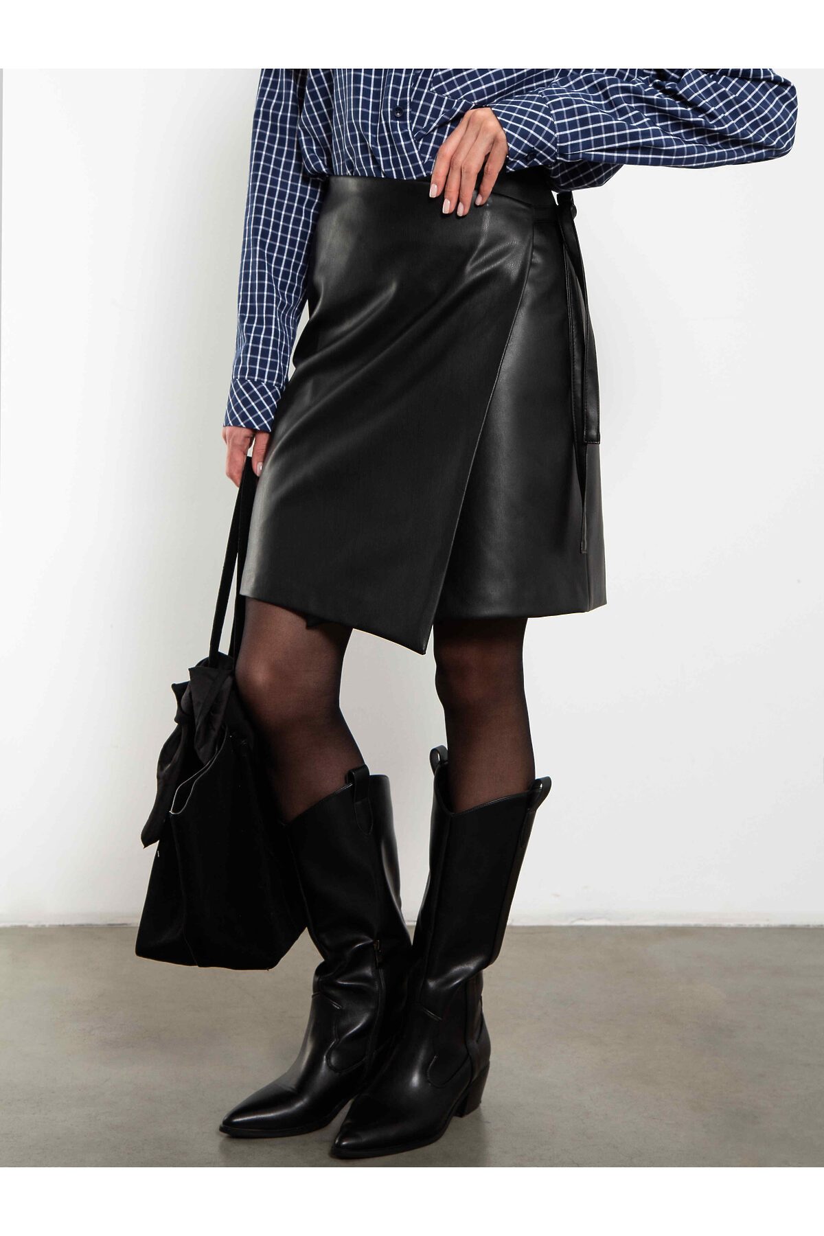 Юбка «Муза» — та самая вещь, которая собирает образ за минуту и добавляет уверенности без лишних усилий. Мягкая экокожа красиво держит форму, а асимметричный запах подчёркивает линию талии и визуально вытягивает силуэт. Аккуратная завязка сбоку позволяет идеально подогнать посадку по фигуре, а длина до колена остаётся универсальной — уместна и днём, и вечером. Носите «Музу» с рубашкой в клетку и сапогами для городского шика, с топом и жакетом — для свидания или выхода, с водолазкой и лоферами — для офиса. Стильно, женственно, всегда в тему. Детали: запах, асимметричный крой, регулируемая завязка, комфортная посадка. Уход: деликатная чистка мягкой салфеткой, без агрессивных средств, хранить на вешалке.