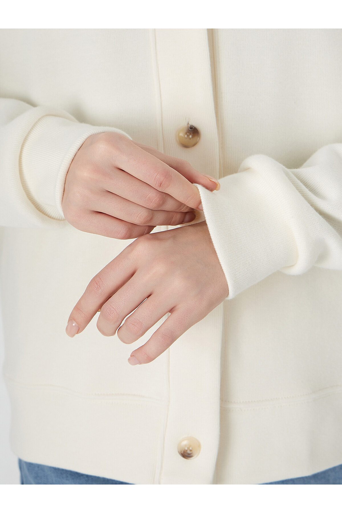 Кардиган дополнен длинными рукавами с манжетами и отрезным поясом по низу для аккуратной посадки.