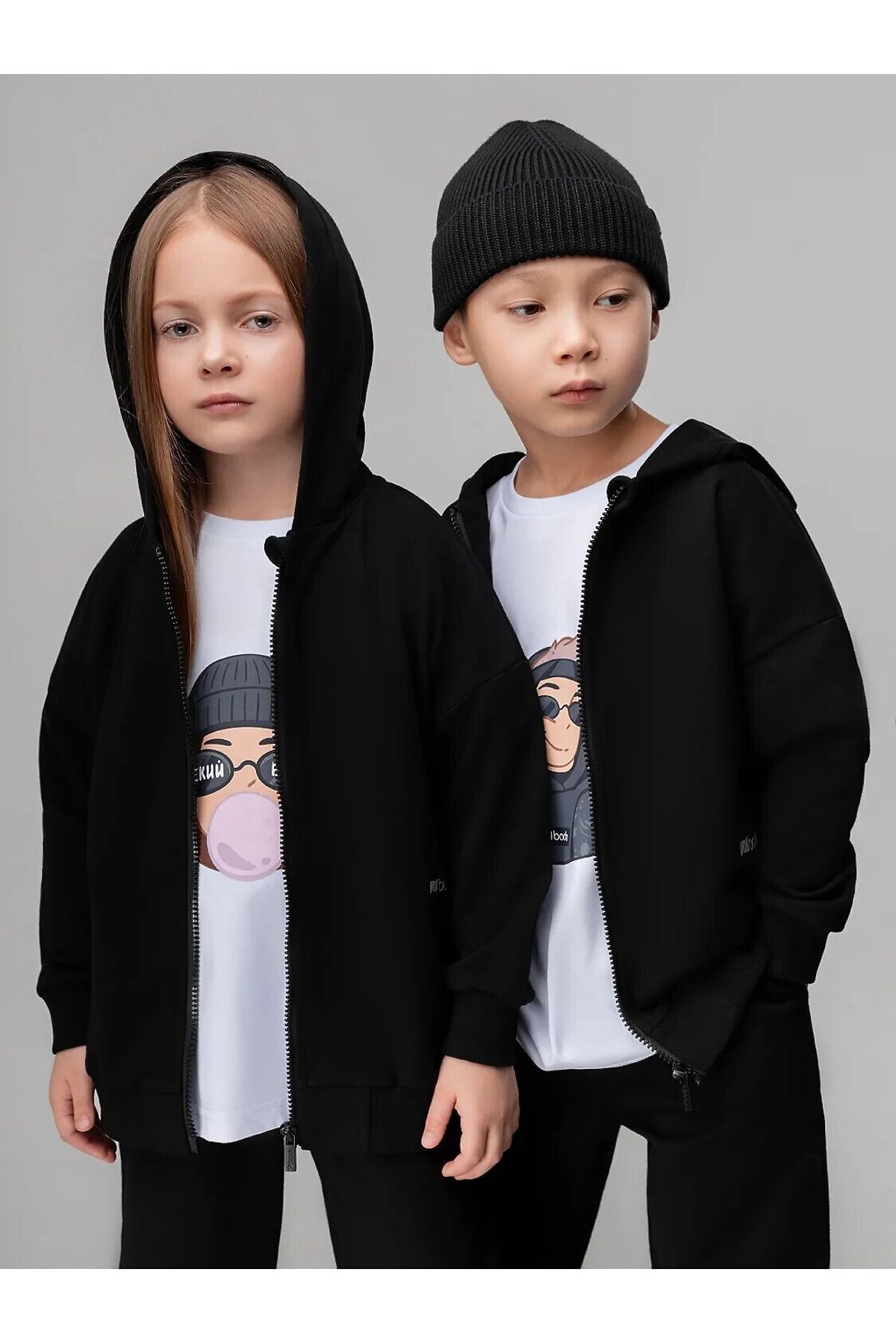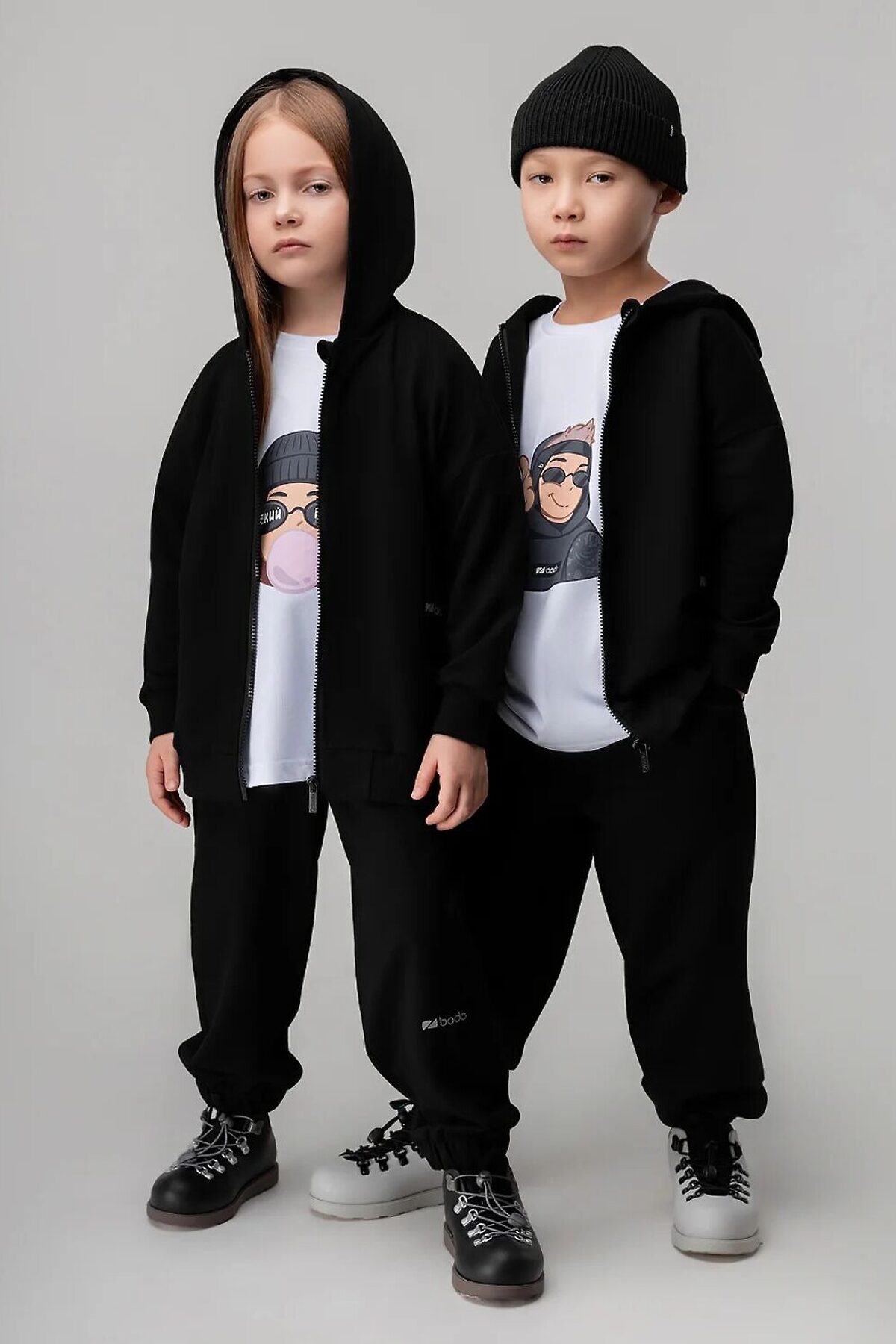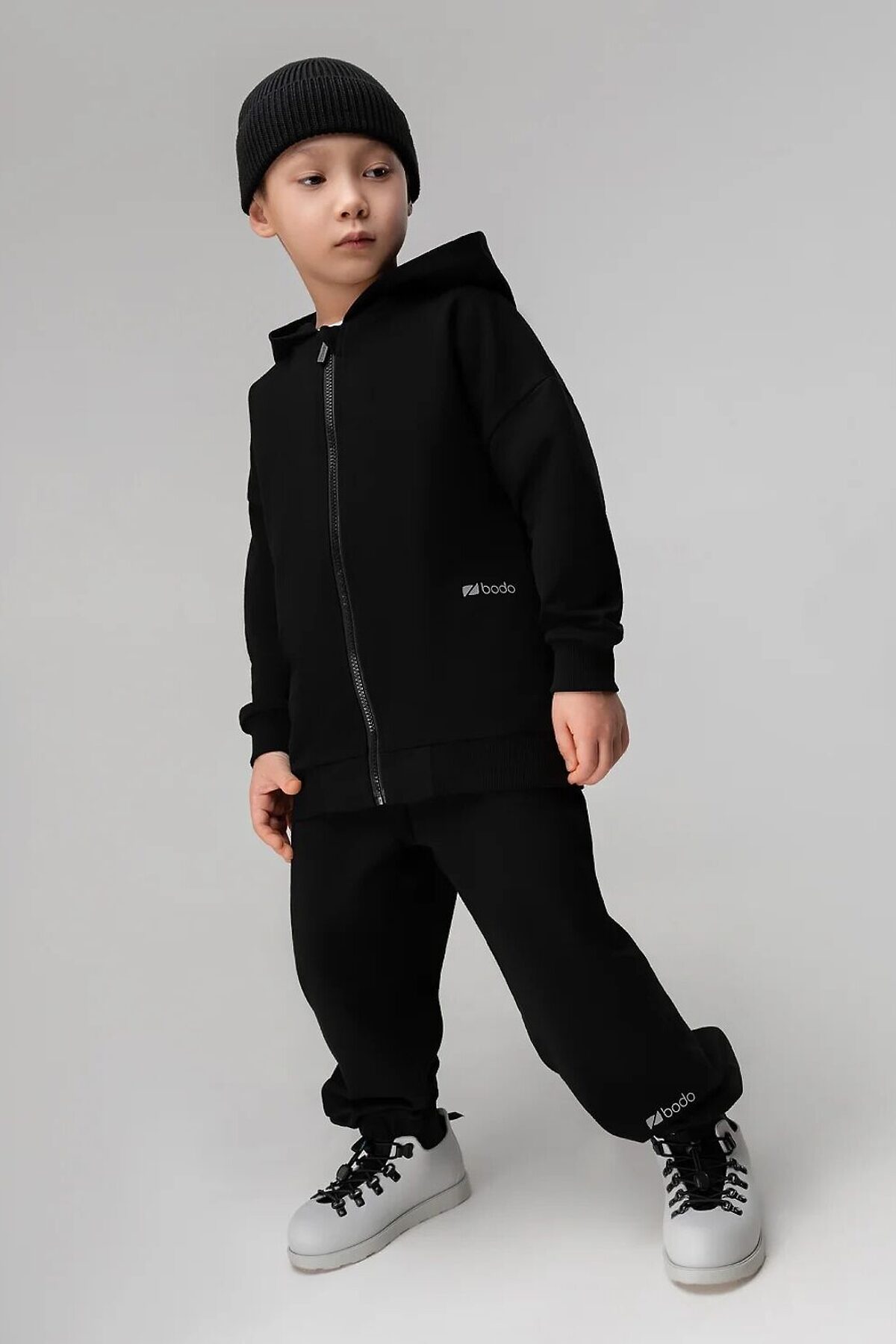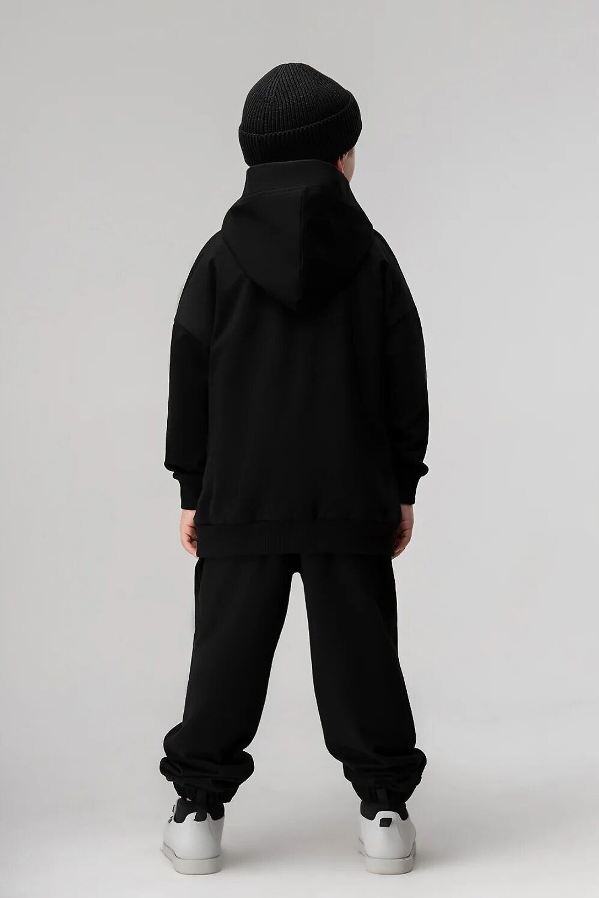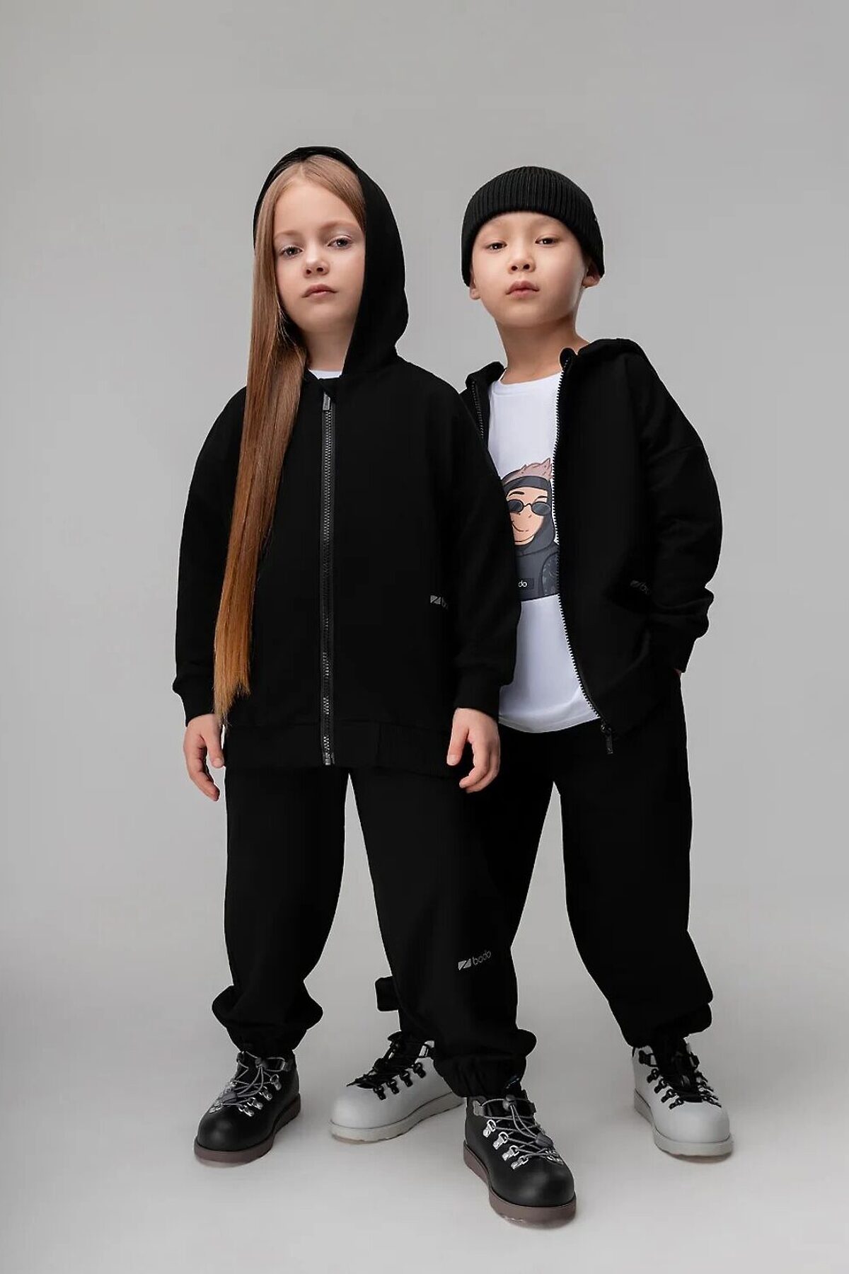 Прямая, свободная толстовка на молнии с капюшоном без подкладки. Толстовка со спущенным плечом с длинным рукавом с манжетой. Толстовка с поясом по низу изделия. Брюки свободного силуэта, на поясе с внутренней резинкой. Низ брюк с манжетой на резинке. Брюки с боковыми карманами.