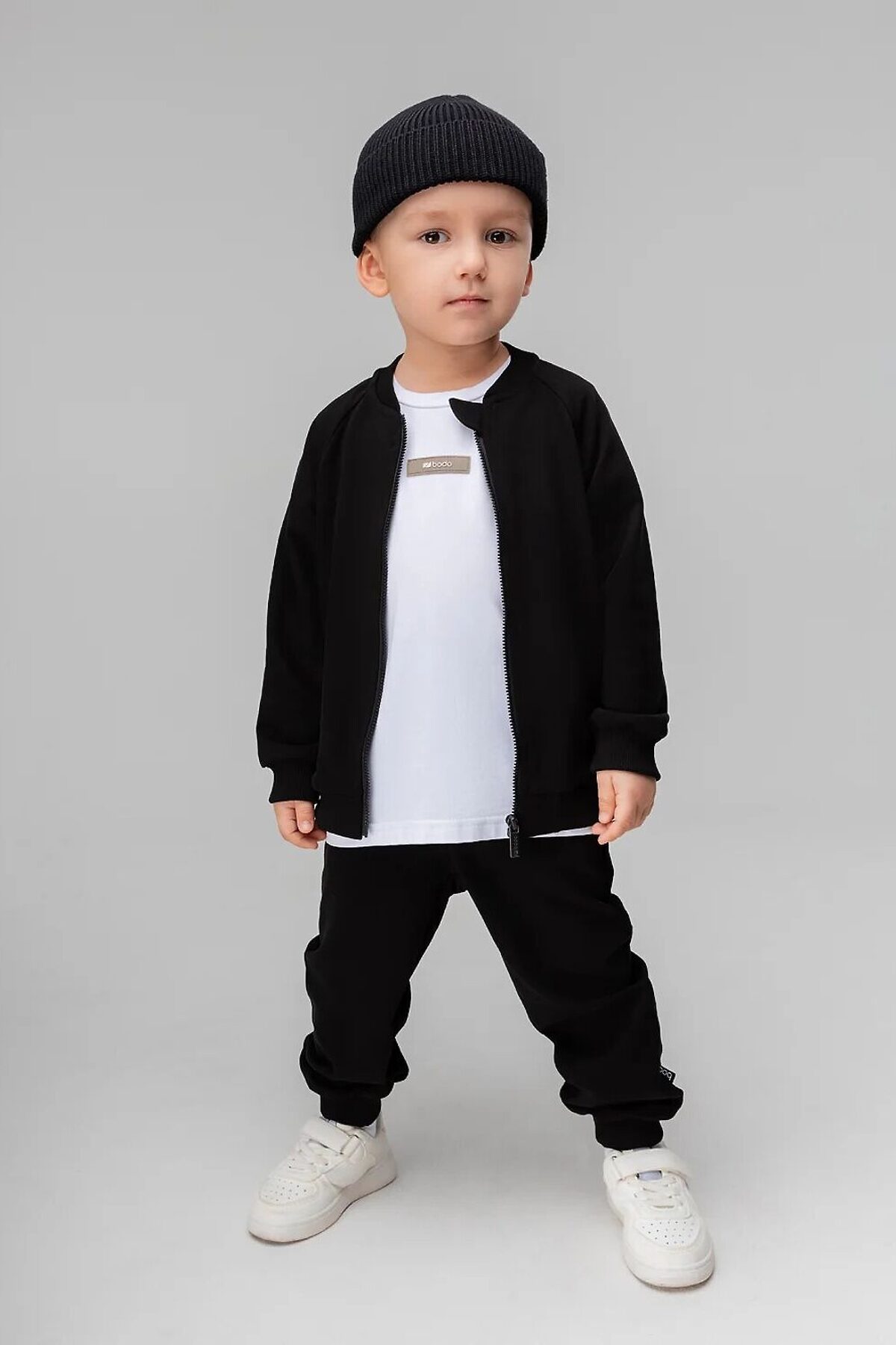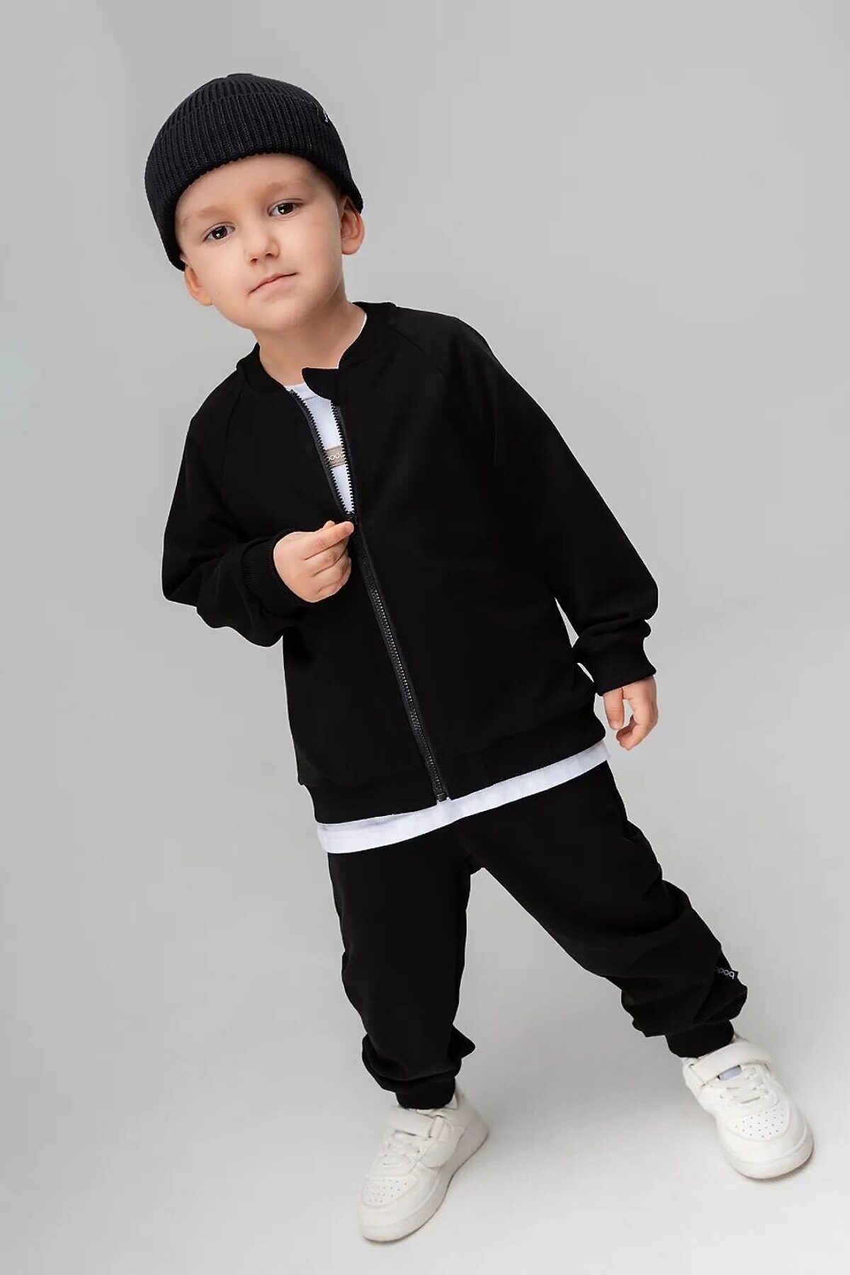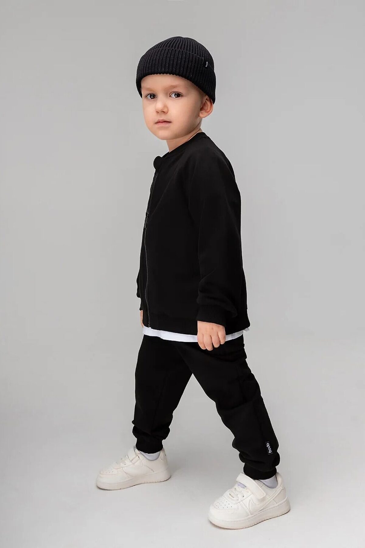 Костюм для детей ясельного возраста.Толстовка прямого силуэта свободная с центральной бортовой застёжкой на тесьму-молния, рукавом реглан, с притачной манжетой. Толстовка с поясом по низу изделия. Горловина округлой формы, оформлена рибаной. Брюки прямые на притачном поясе с внутренней резинкой. Брюки с манжетой.