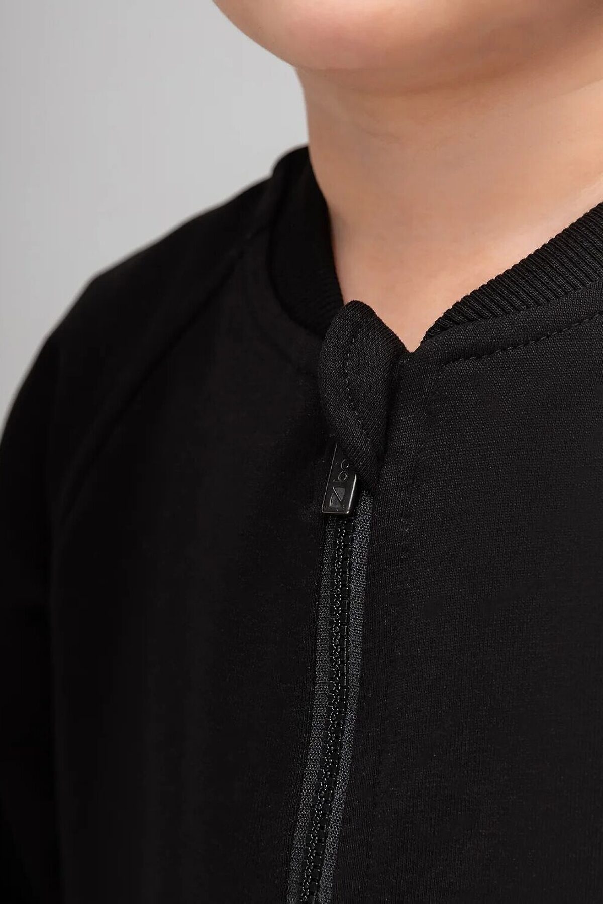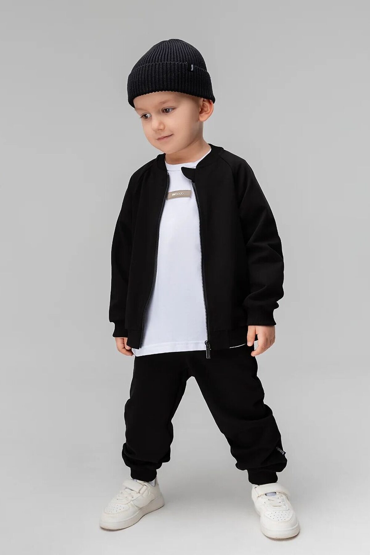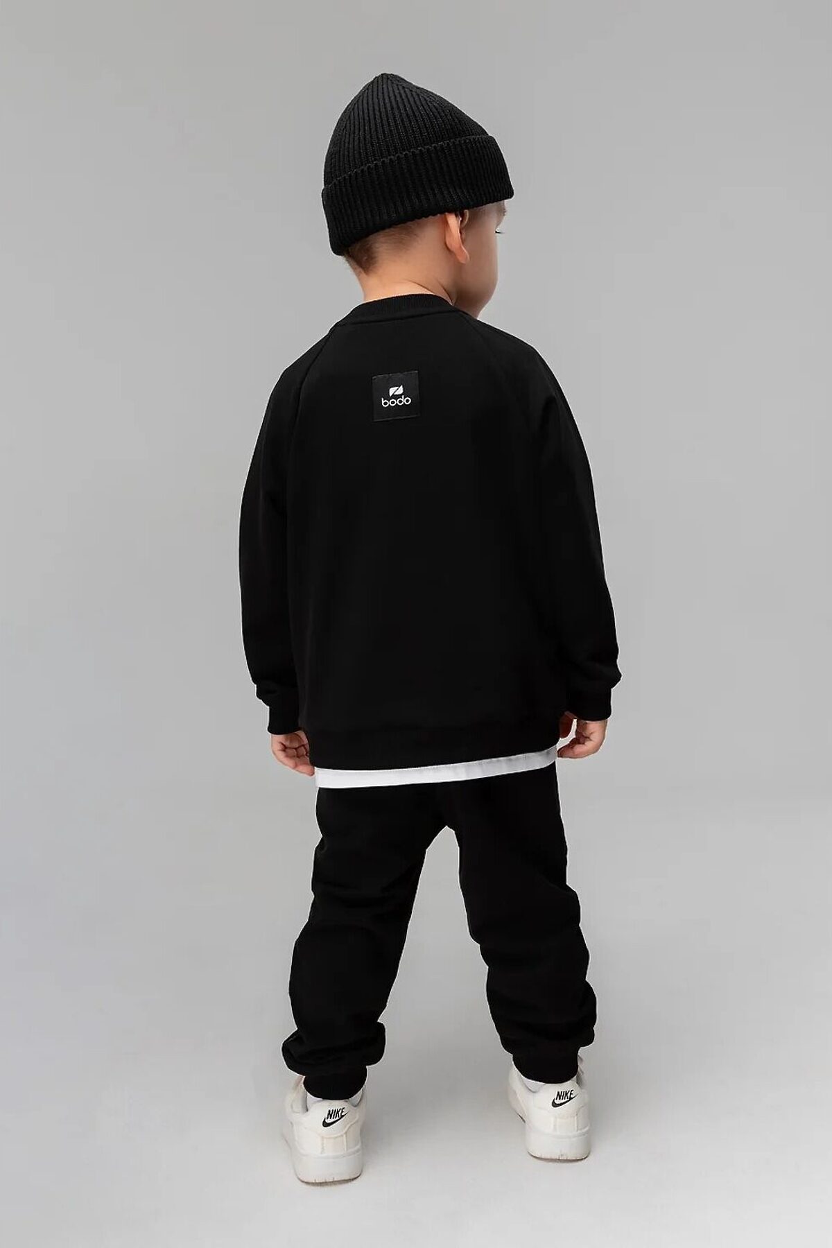 Костюм для детей ясельного возраста.Толстовка прямого силуэта свободная с центральной бортовой застёжкой на тесьму-молния, рукавом реглан, с притачной манжетой. Толстовка с поясом по низу изделия. Горловина округлой формы, оформлена рибаной. Брюки прямые на притачном поясе с внутренней резинкой. Брюки с манжетой.