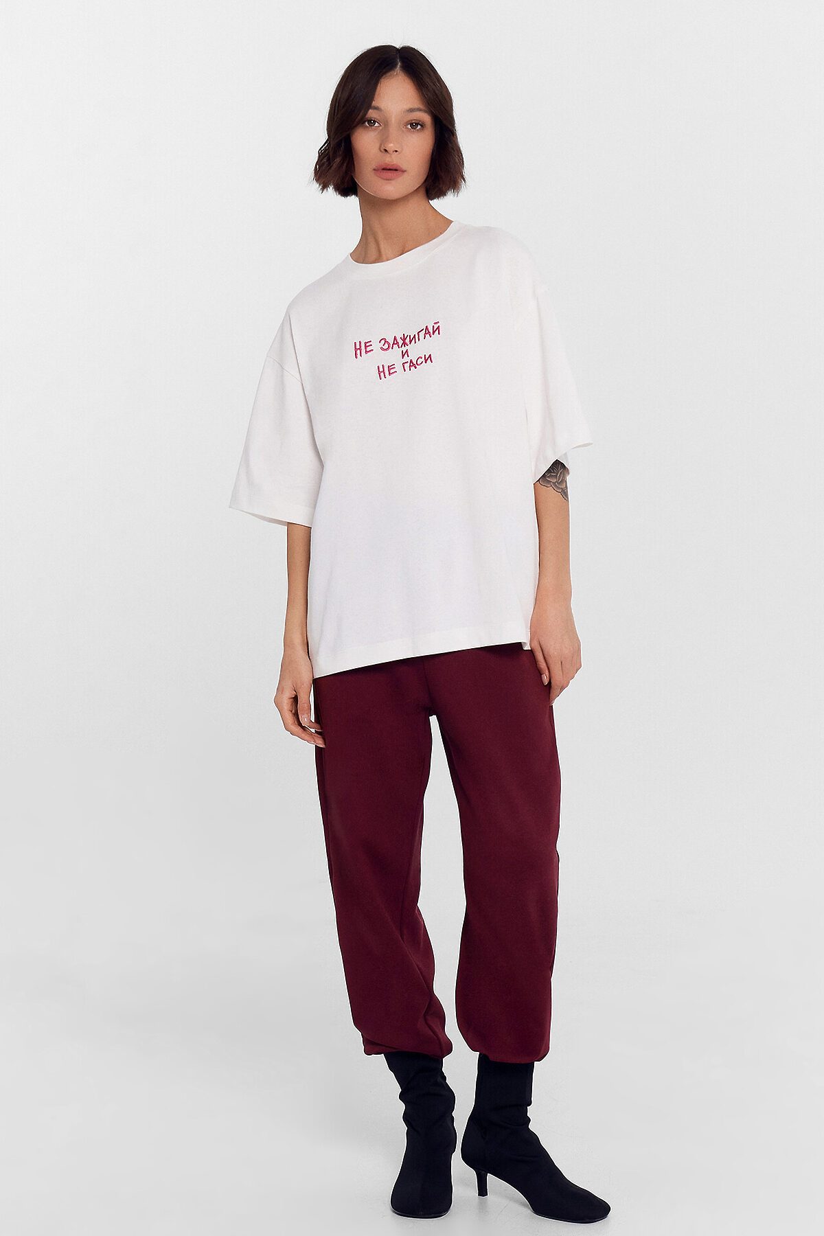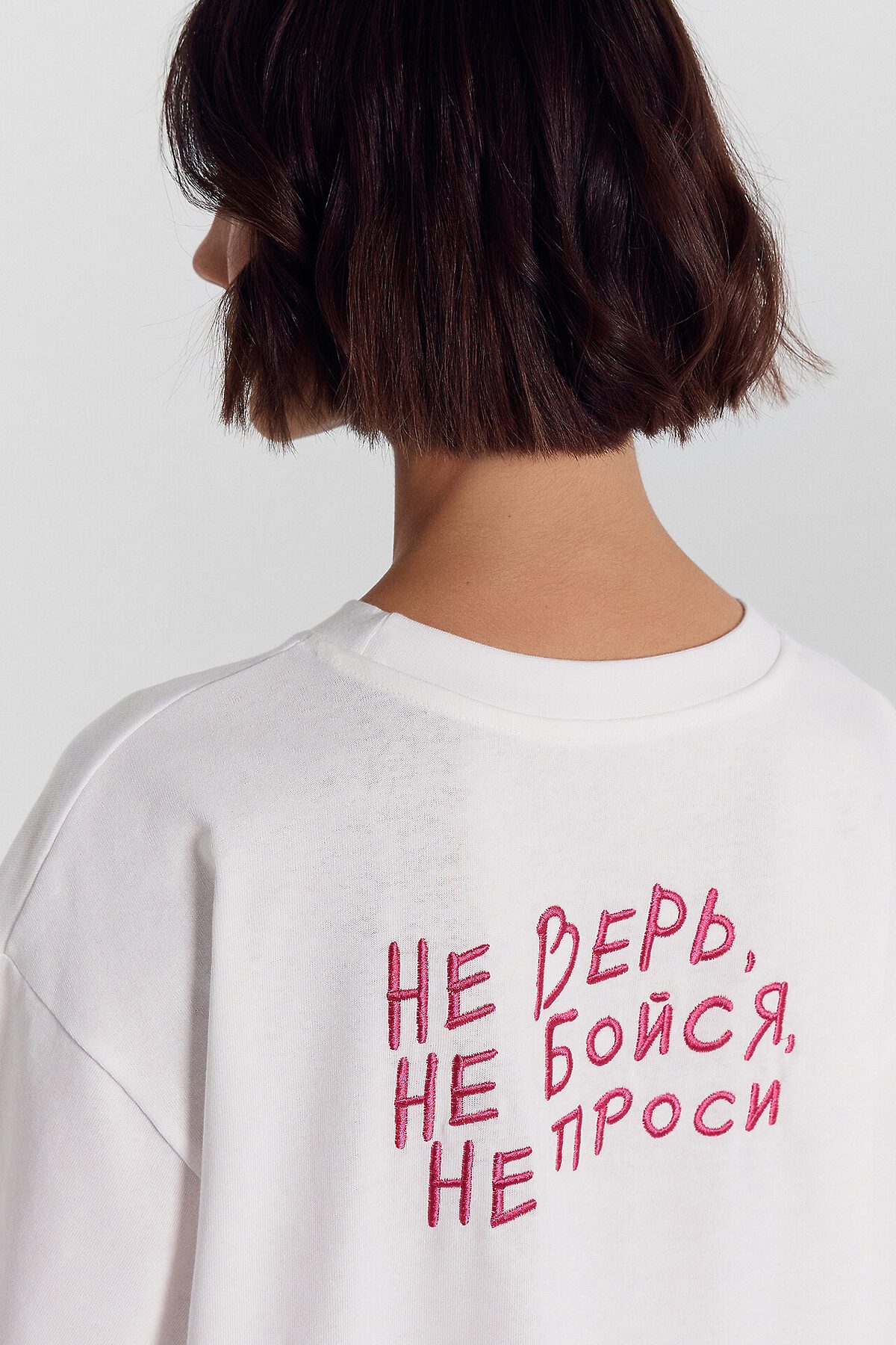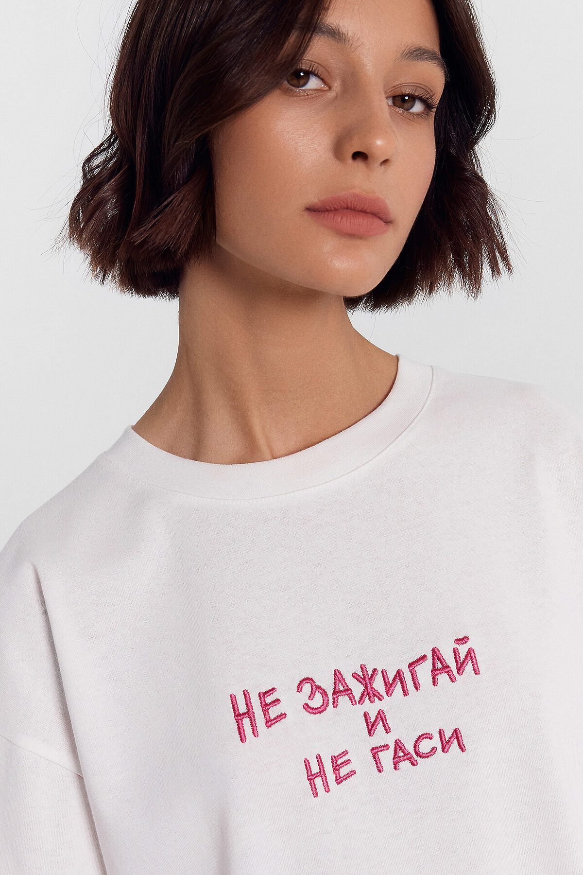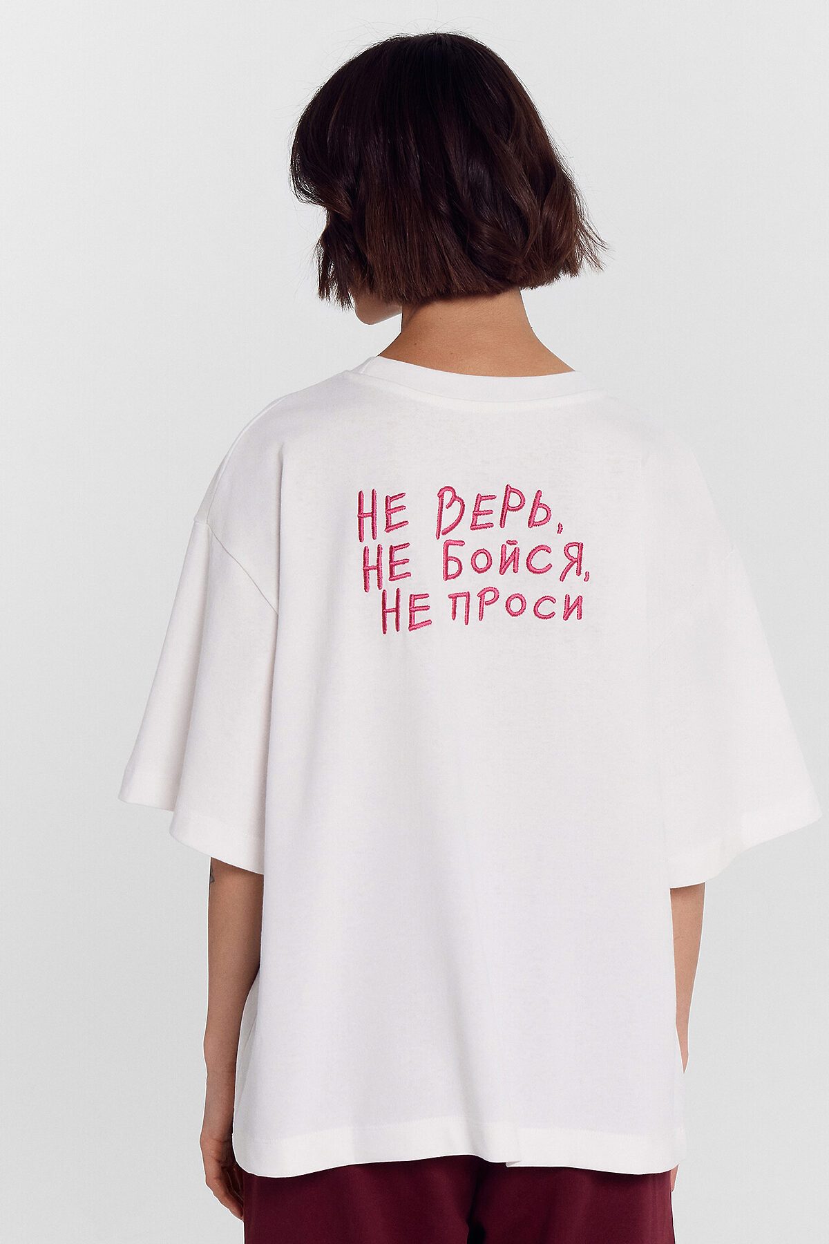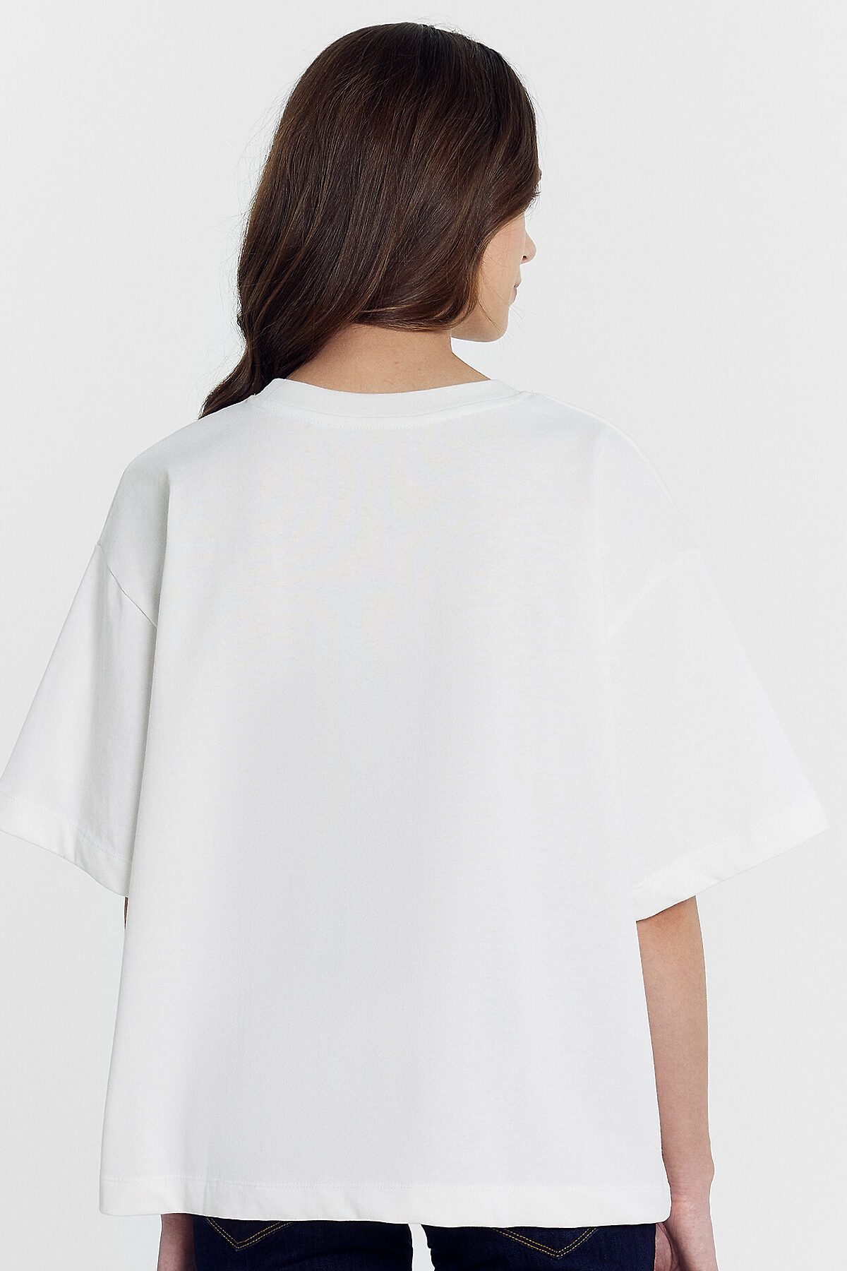 Футболка свободного кроя — отличный вариант для повседневной носки. Модель выполнена из натурального хлопка, который приятен к телу, позволяет коже дышать и не теряет формы после стирки. Свободный крой со спущенными плечами и круглой горловиной подходит для любого типа фигуры.