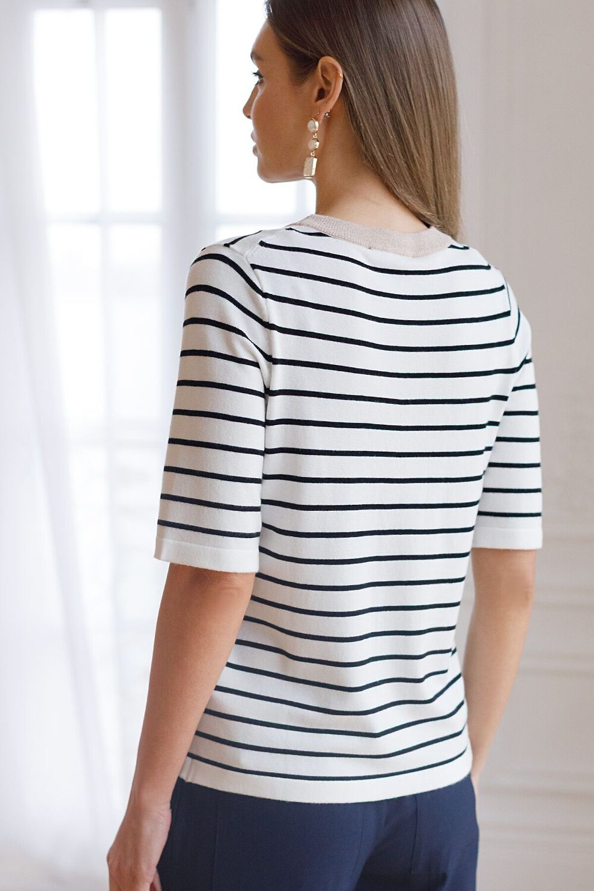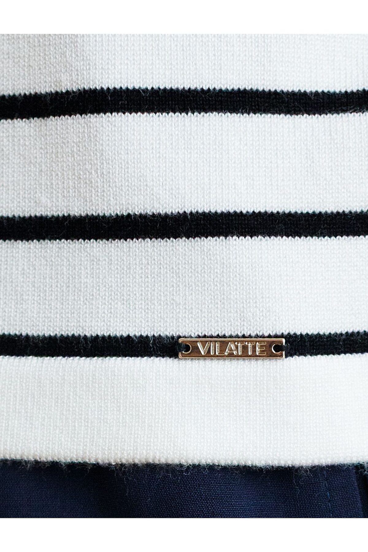 Свободный джемпер в полоску из вискозы с люрексом VILATTE, белый
