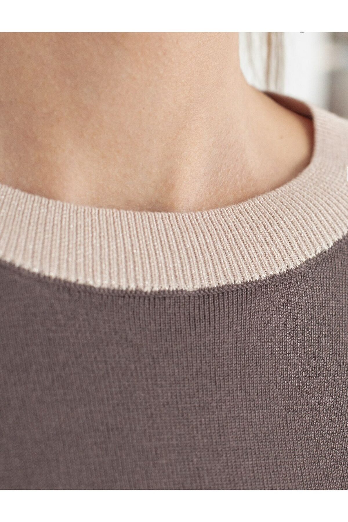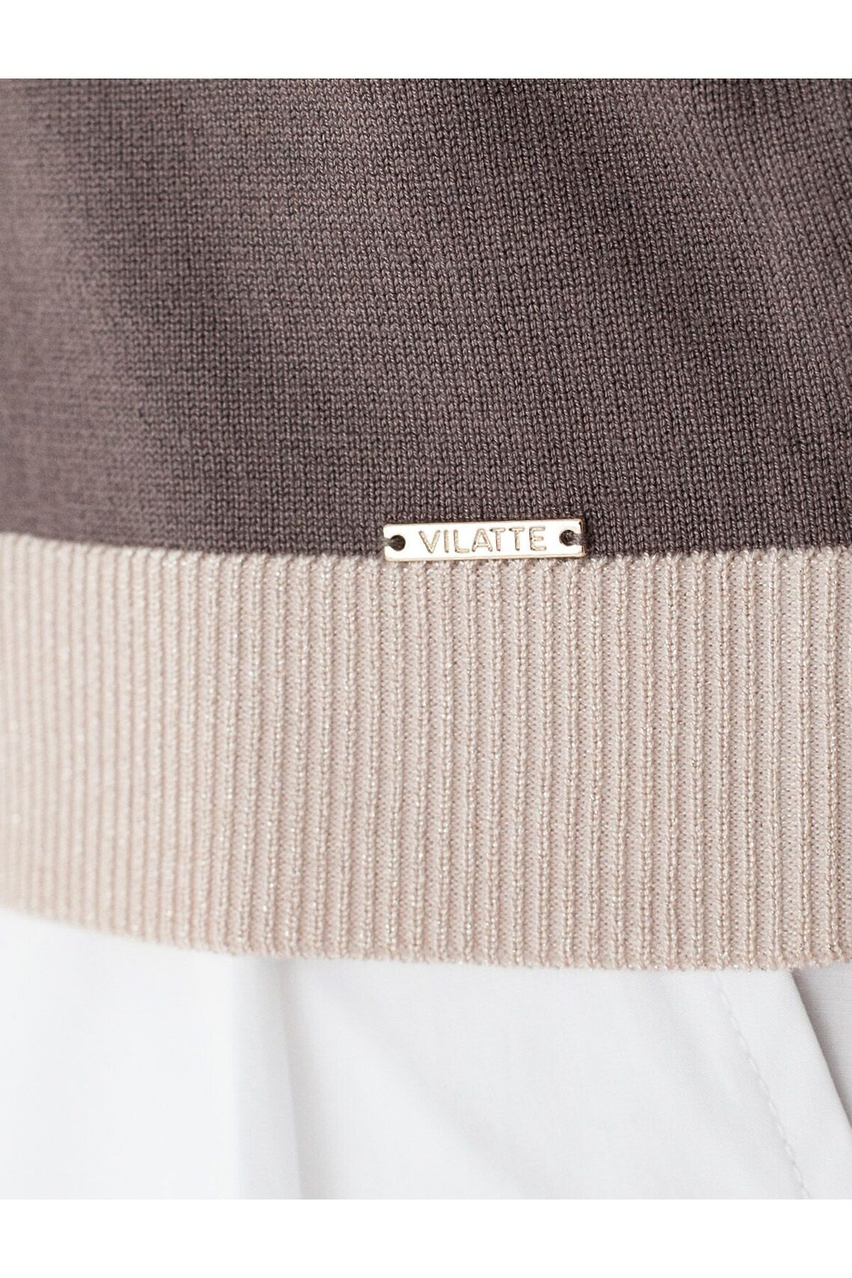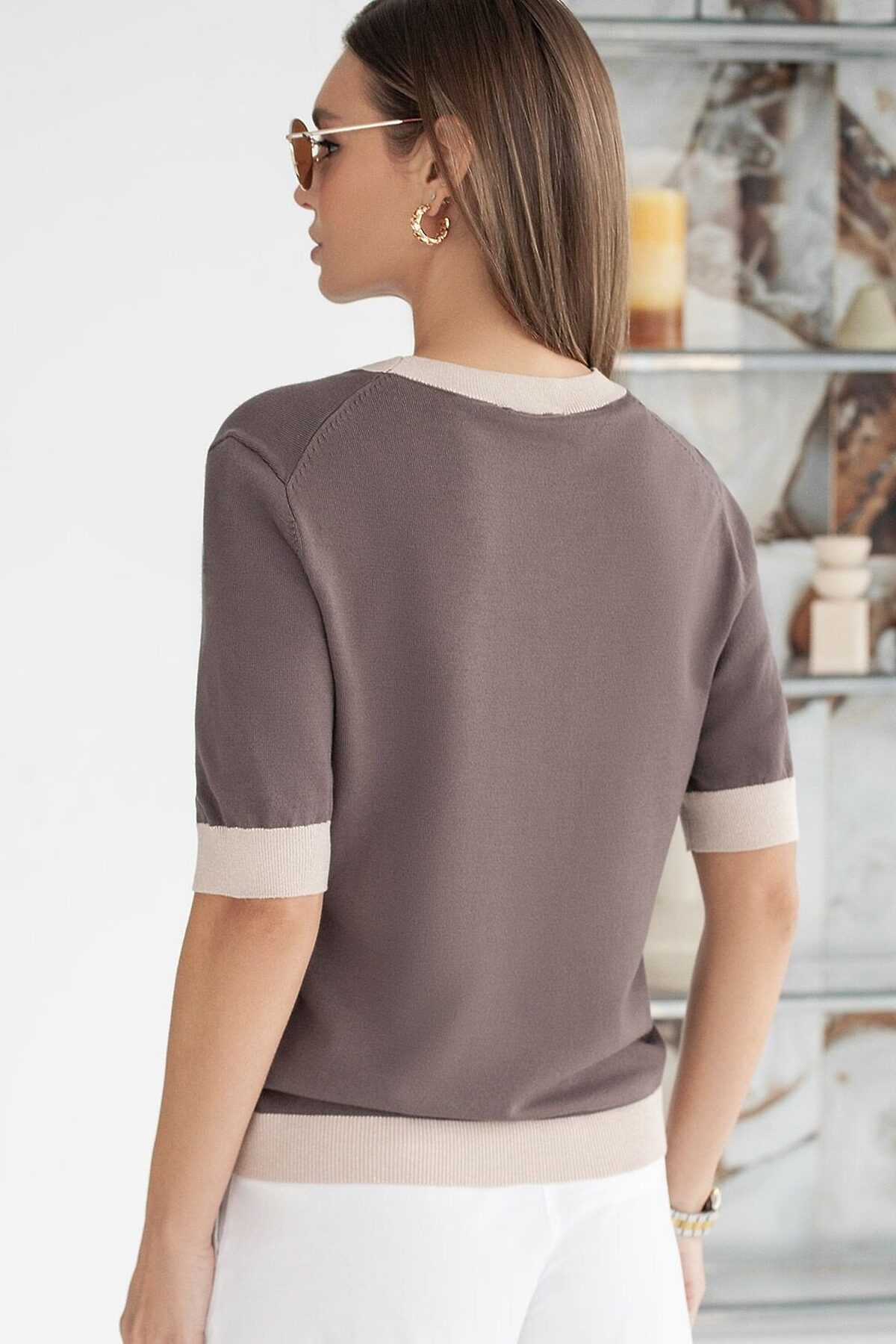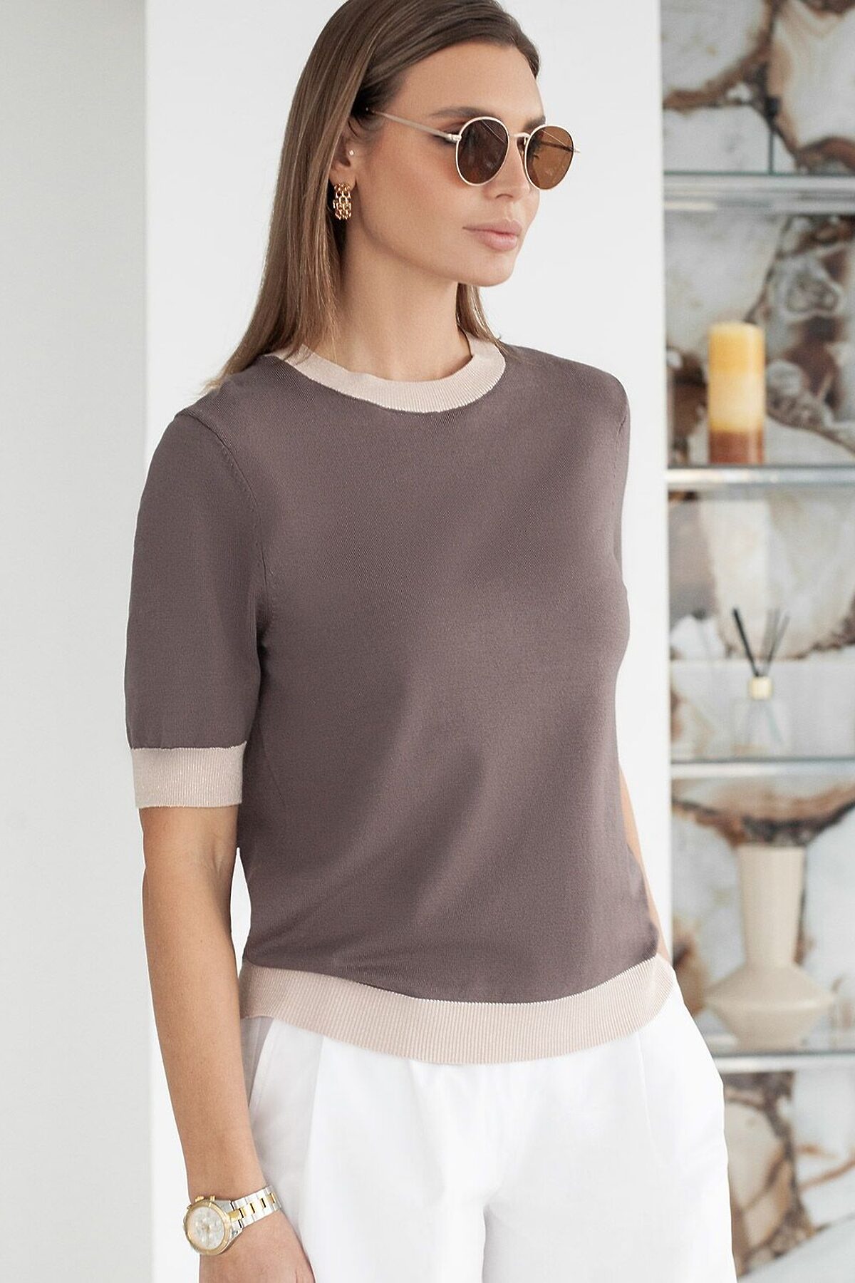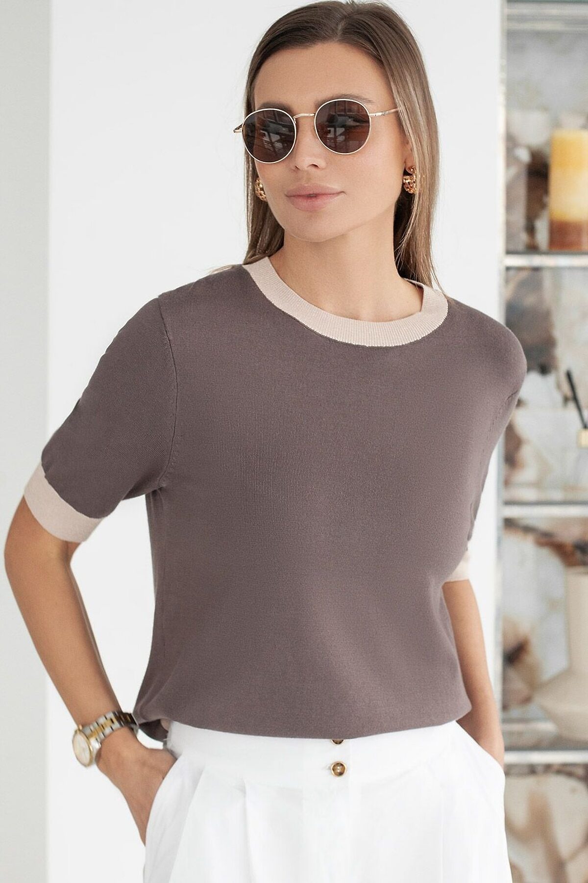 Джемпер с коротким рукавом тонкой вязки из вискозы с люрексом VILATTE, кофейный
