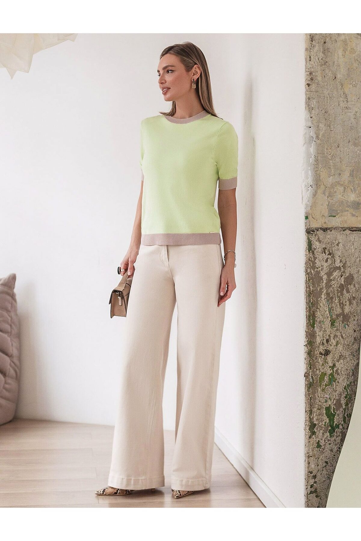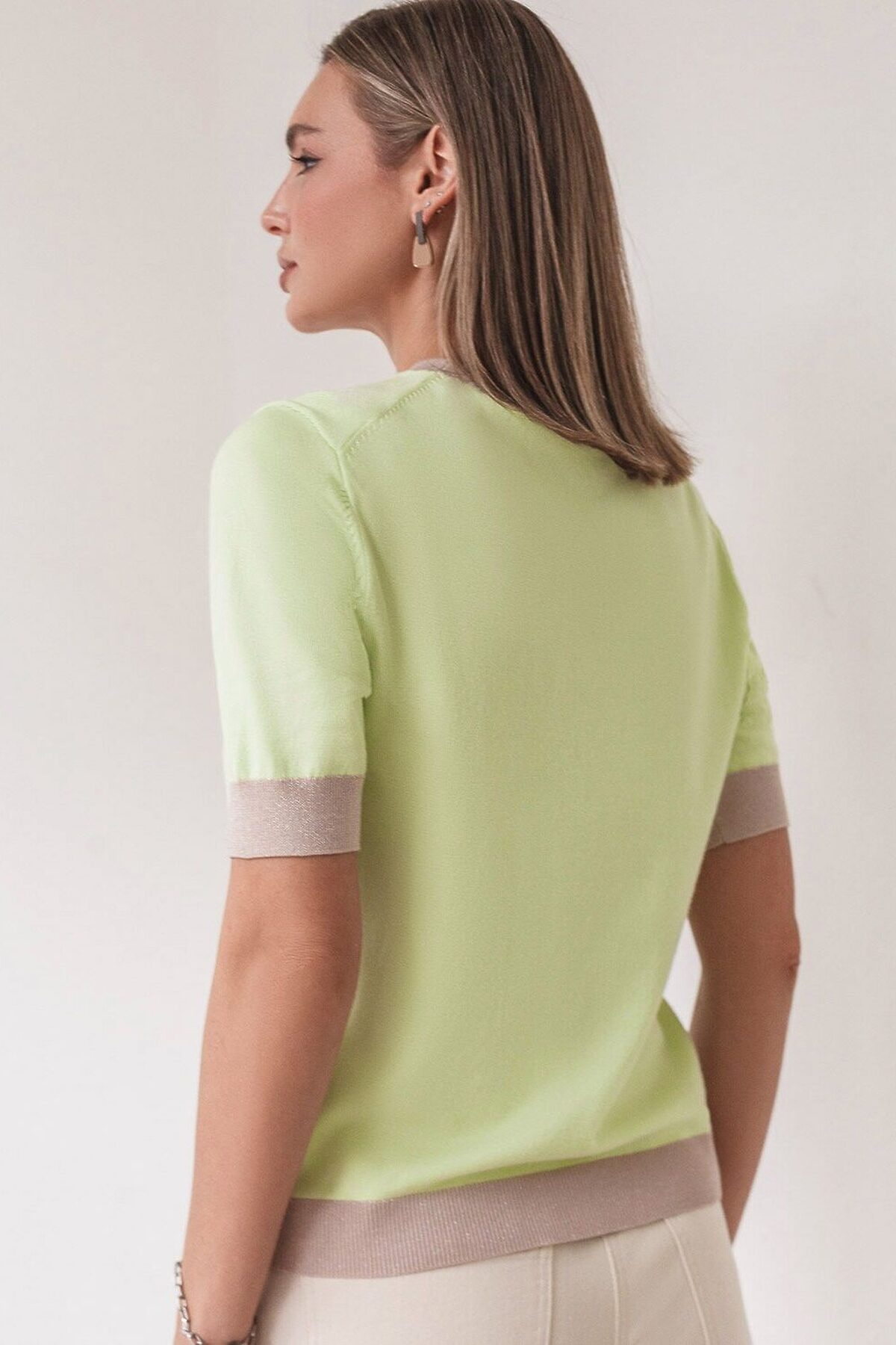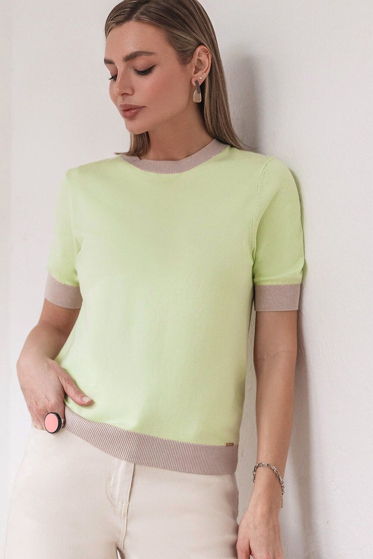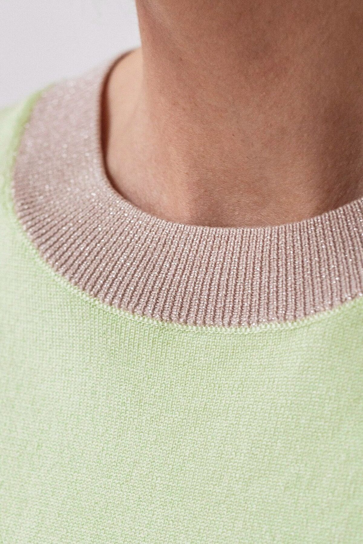 Джемпер с коротким рукавом тонкой вязки из вискозы с люрексом VILATTE, светло-зеленый