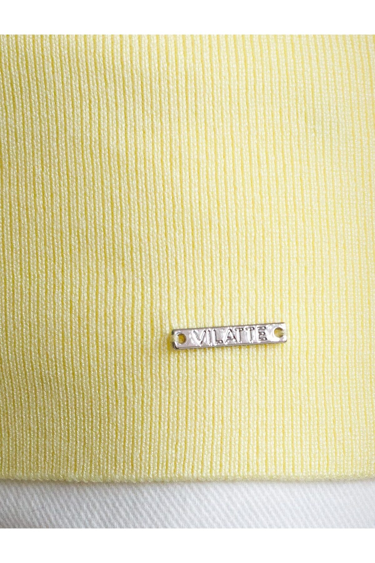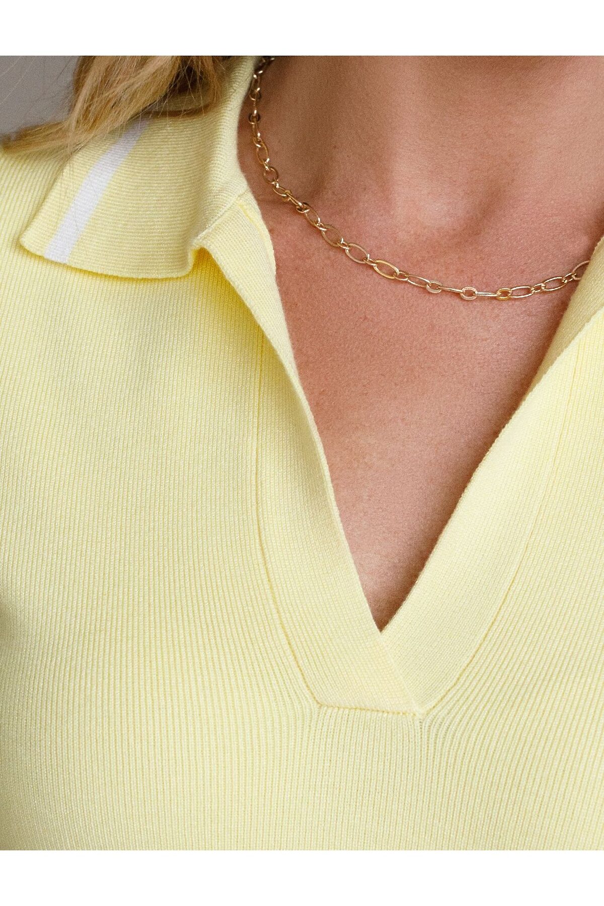 Джемпер с воротником-поло с коротким рукавом тонкой вязки из вискозы VILATTE, лимонный