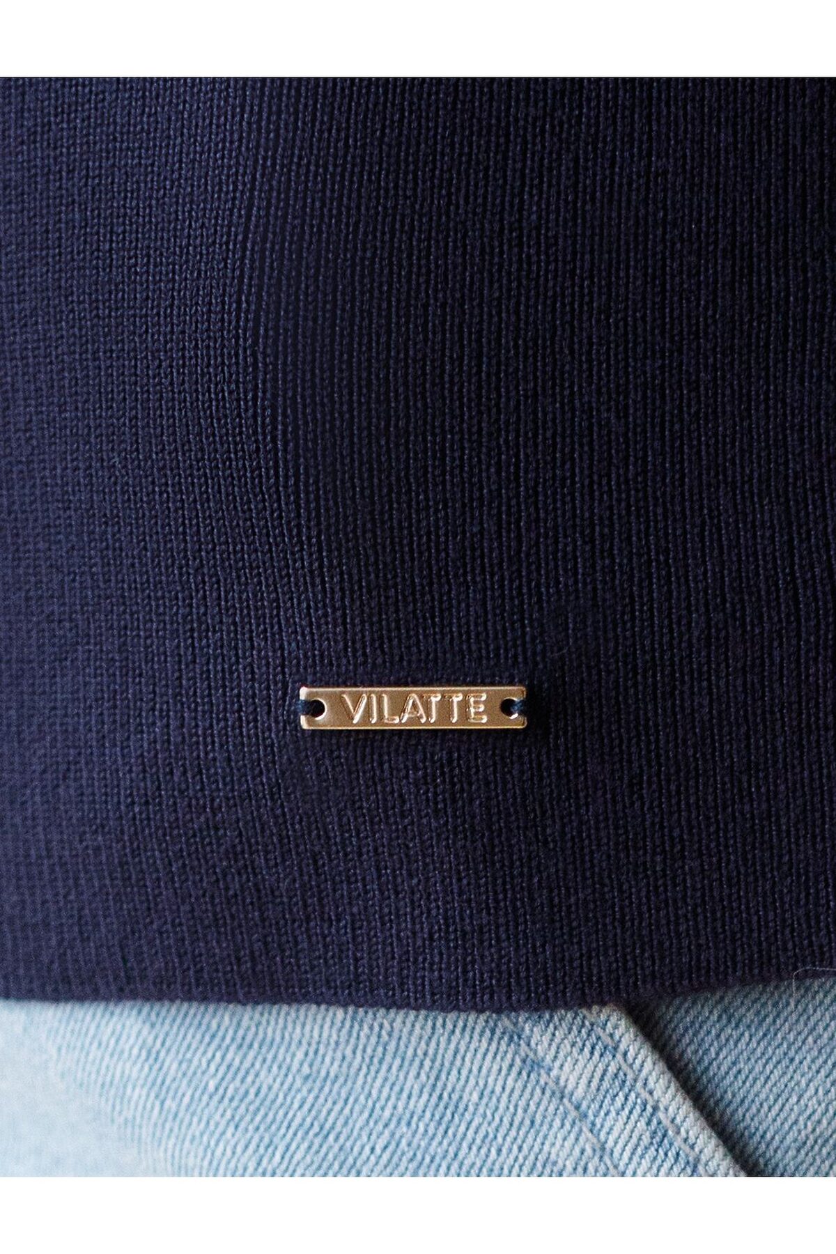 Джемпер с воротником-поло с коротким рукавом тонкой вязки из вискозы VILATTE, темно-синий