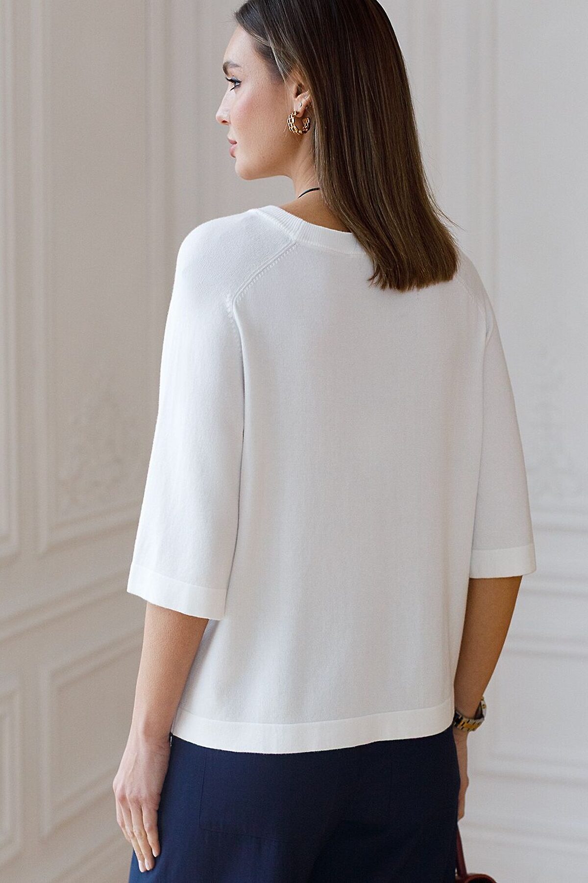 Свободный джемпер с рукавом 3/4 тонкой вязки из вискозы VILATTE, белый