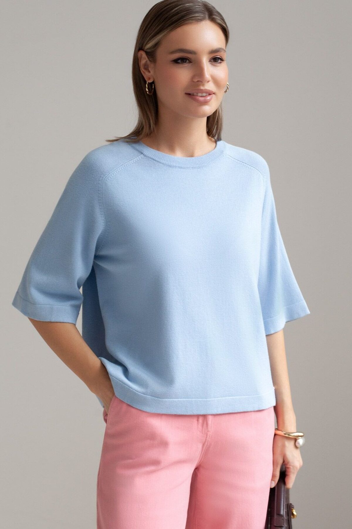 Свободный джемпер с рукавом 3/4 тонкой вязки из вискозы VILATTE, светло-голубой