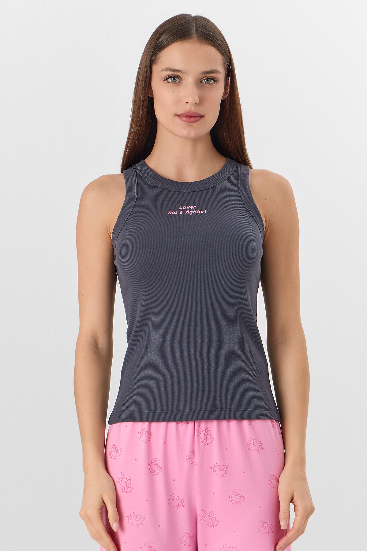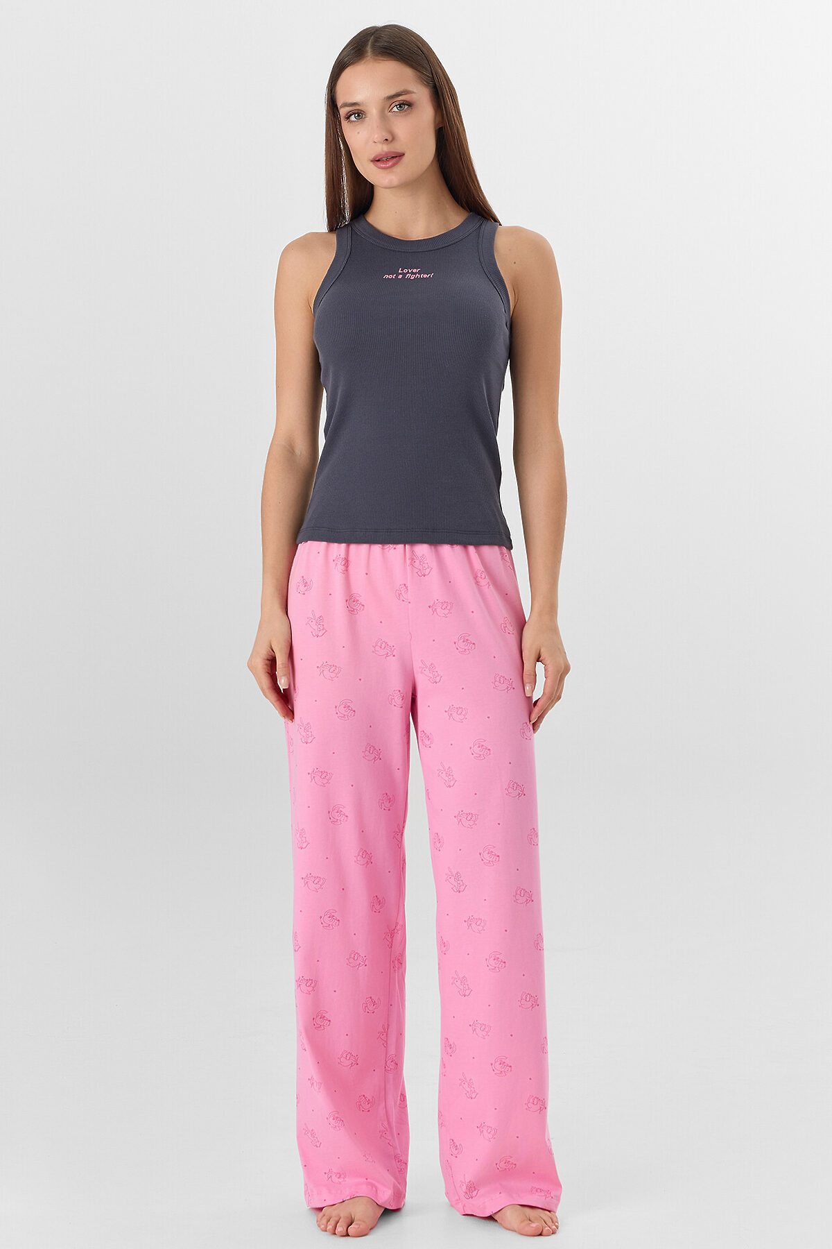 Комплект женский (блузка, брюки) MARK FORMELLE, графит +котики на розовом