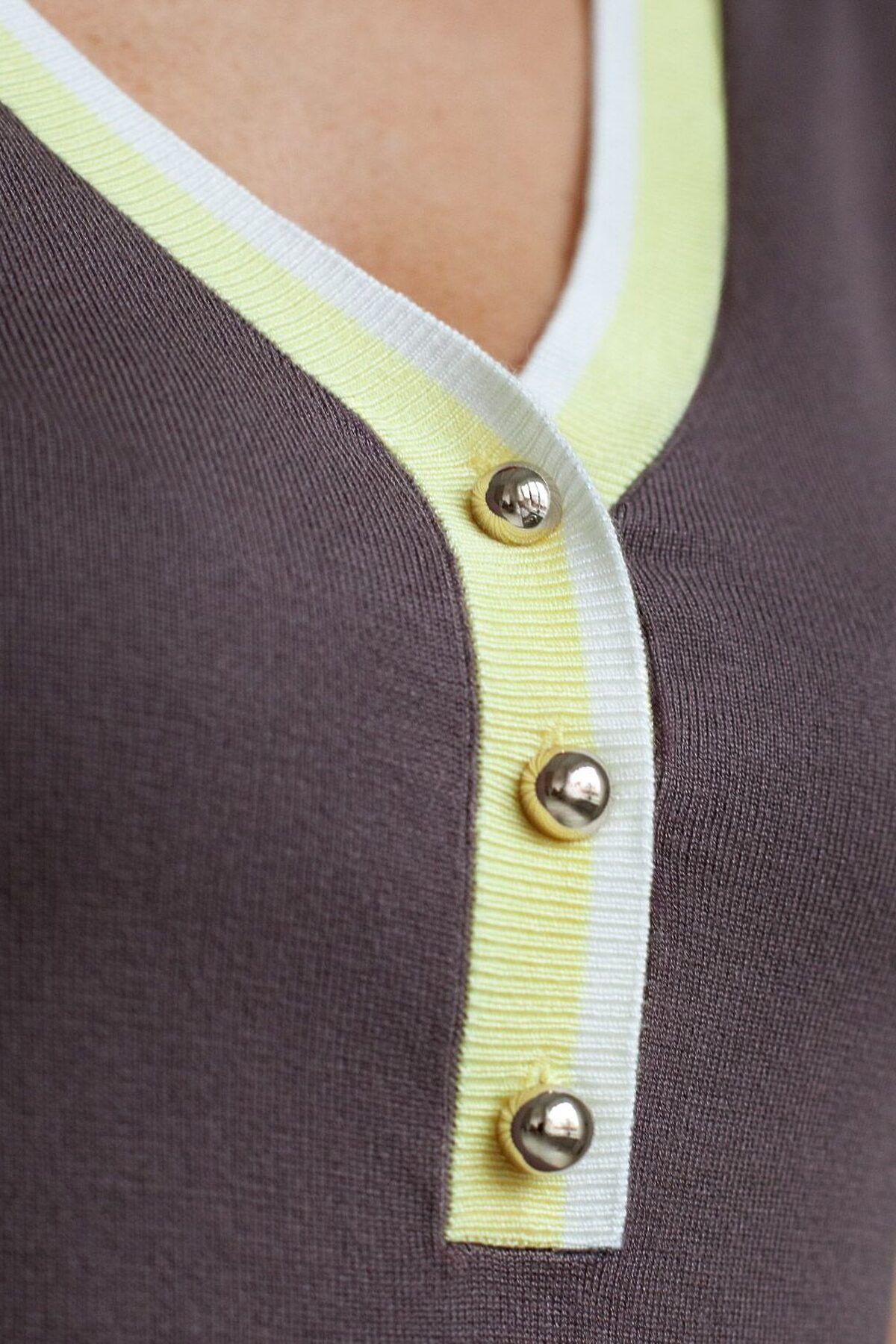 Джемпер с V-вырезом с коротким рукавом из вискозы VILATTE, кофейный