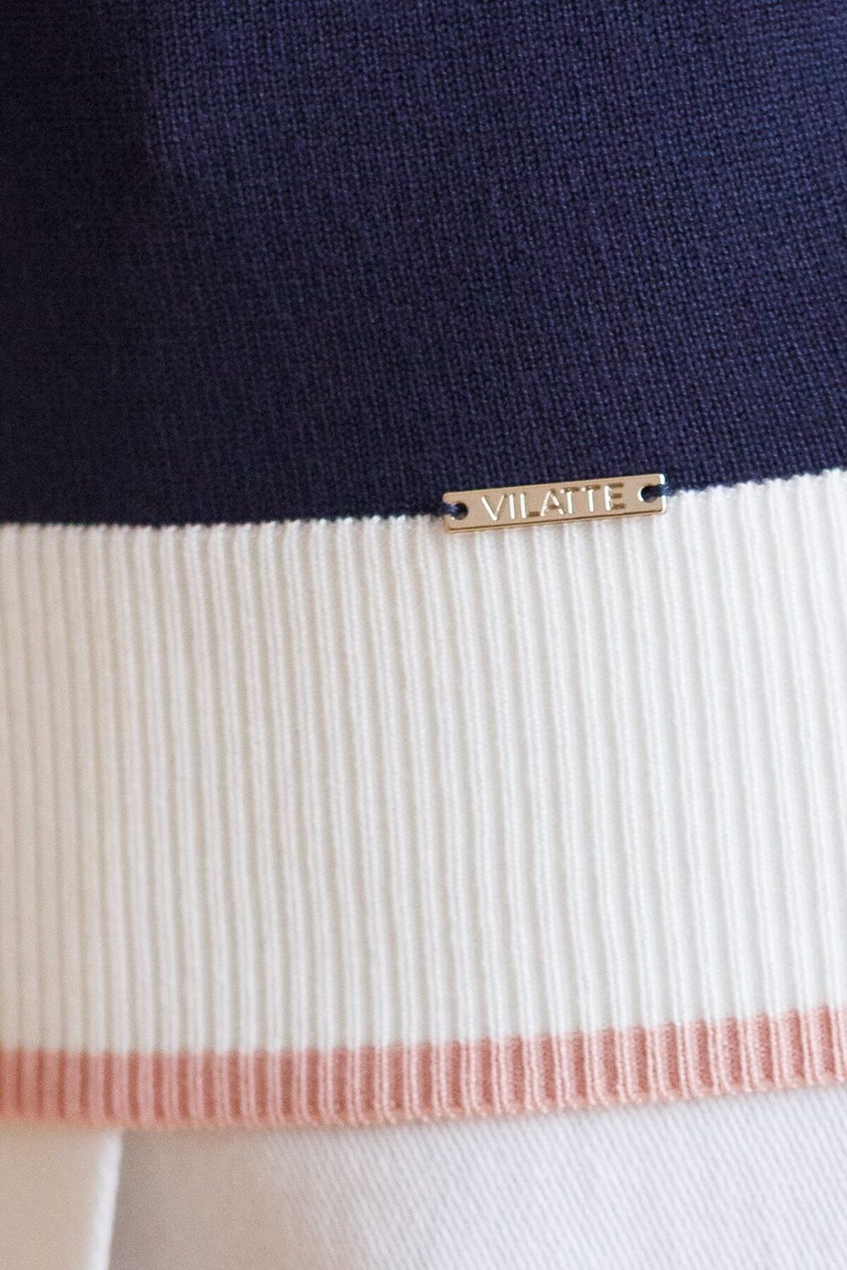 Джемпер с V-вырезом с коротким рукавом из вискозы VILATTE, темно-синий