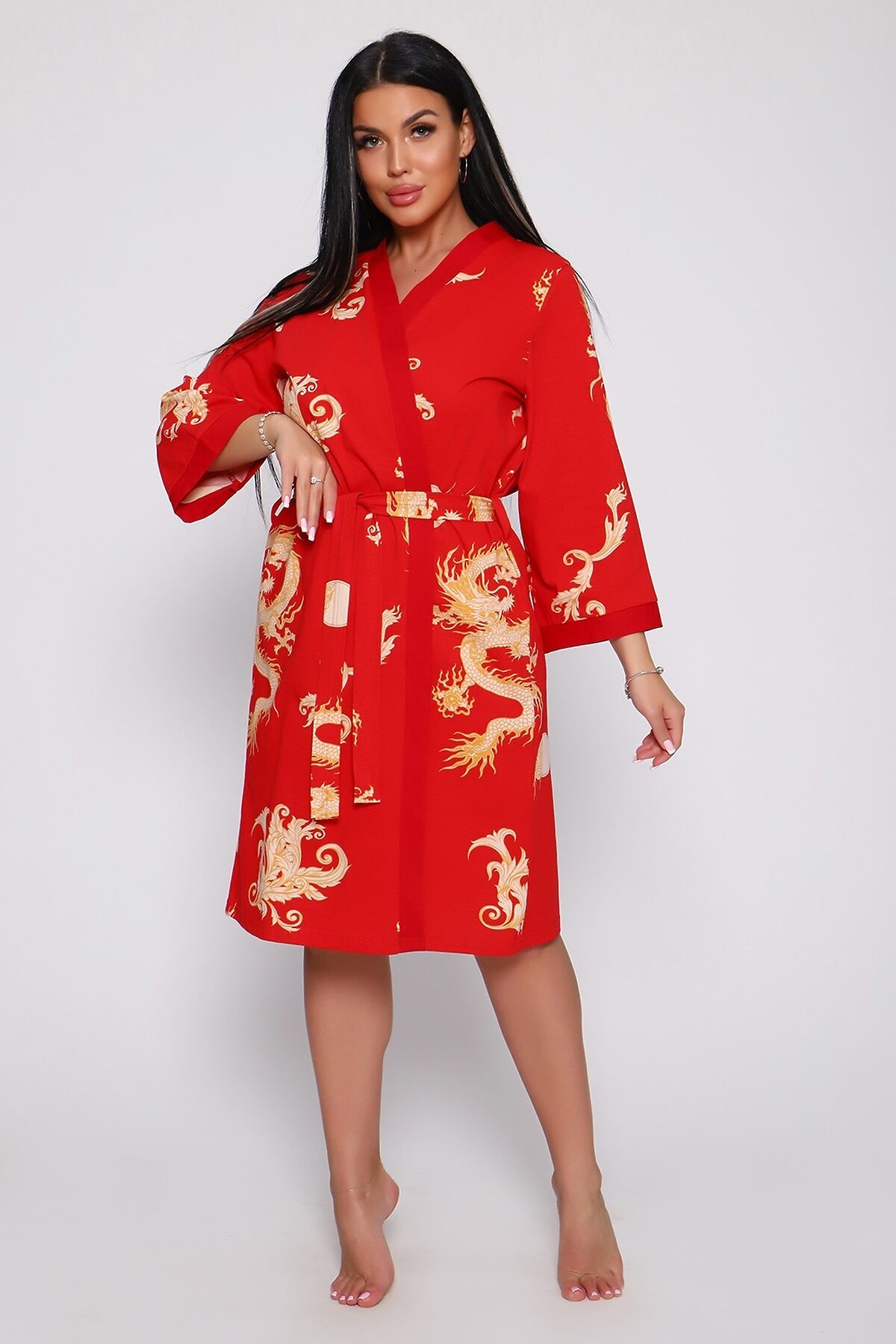 Женский пеньюар и сорочка Драконы Изготовлены из легкого, приятного на ощупь натурального хлопка. Элегантный домашний наряд включает халат на запах и легкую ночную сорочку. Халат свободного кроя с поясом, рукава 3/4, длина до колена идеально для комфортных и стильных будней. Сорочка на тонких бретелях создаст романтичный образ. Широкий размерный ряд. Наслаждайтесь уютом и стилем дома!