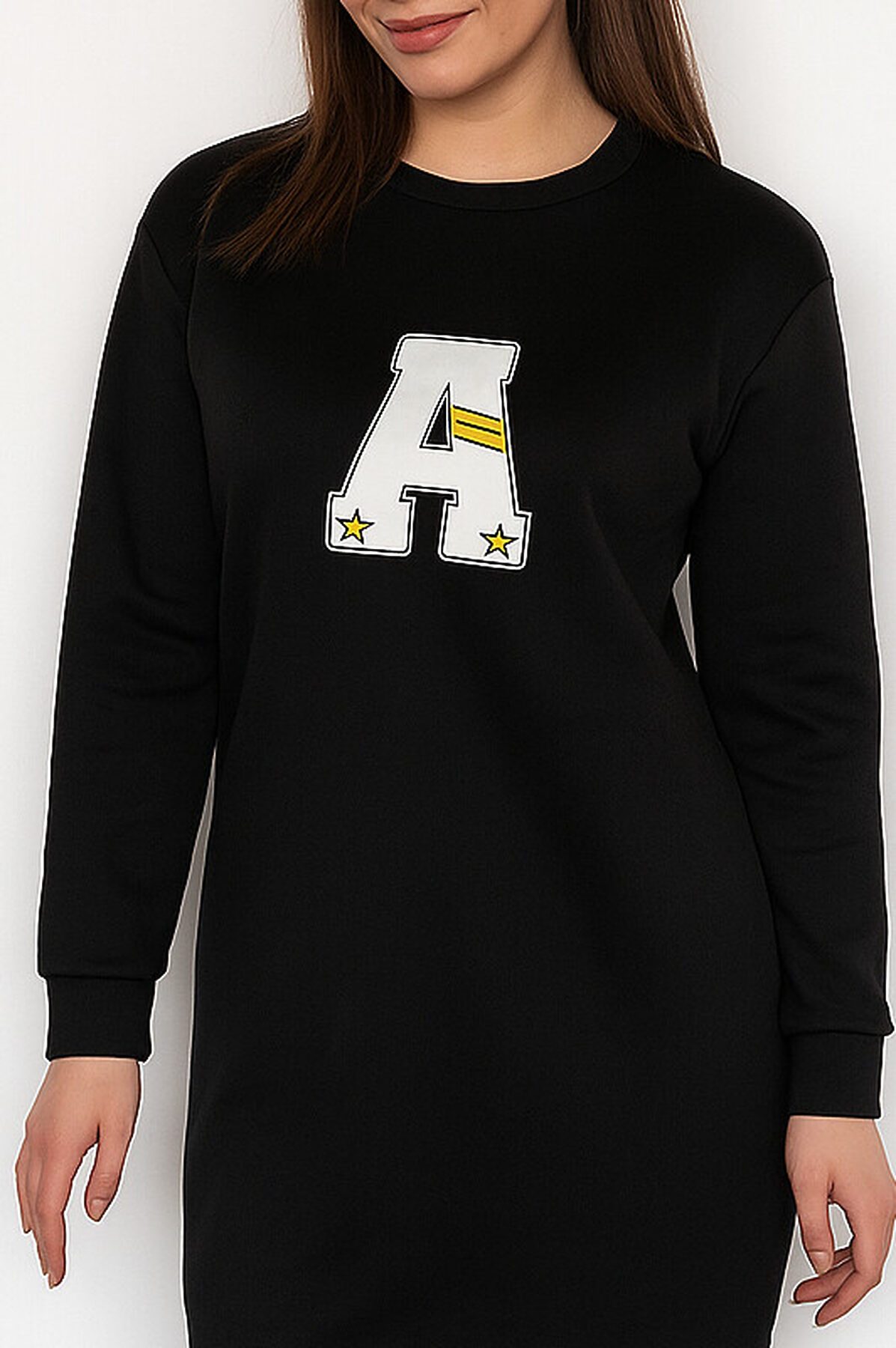 Туника женская удлиненная, теплая на флисе. Ярким акцентом на груди. Удобная и качественная.