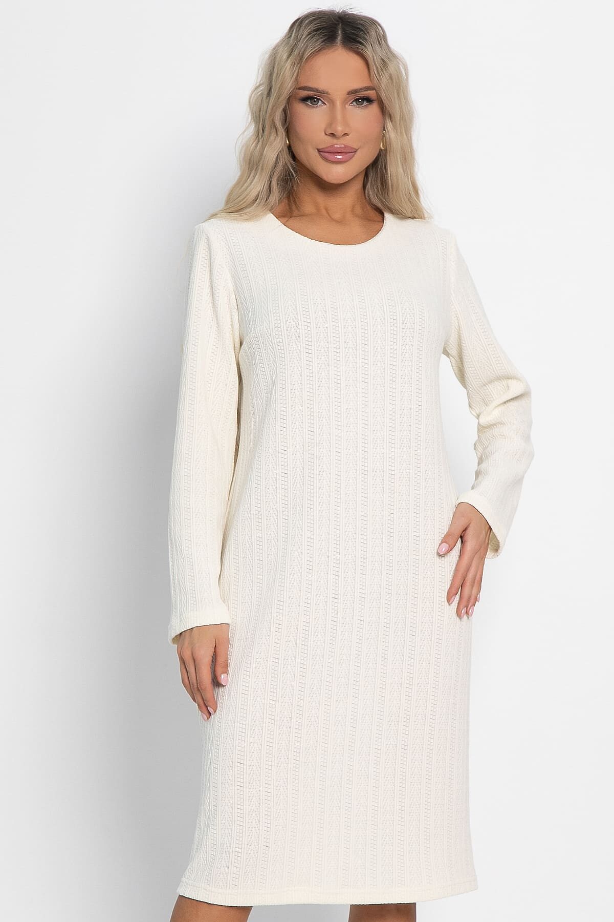 Стильное и комфортное повседневное платье молочного цвета станет идеальным дополнением вашего гардероба. Округлая горловина подчеркивает шею, создавая элегантный силуэт. Длинный рукав обеспечивает дополнительный уют и защиту от прохладной погоды. Универсальность модели заключается в отсутствии лишних декоративных элементов, благодаря чему платье легко сочетается с различными аксессуарами и обувью. Создавайте разные образы, будь то деловой стиль для офиса, спортивный look для активного отдыха или casual образ для прогулок по городу. Выбирайте женственное и функциональное платье, которое подарит вам ощущение комфорта и уверенности каждый день.