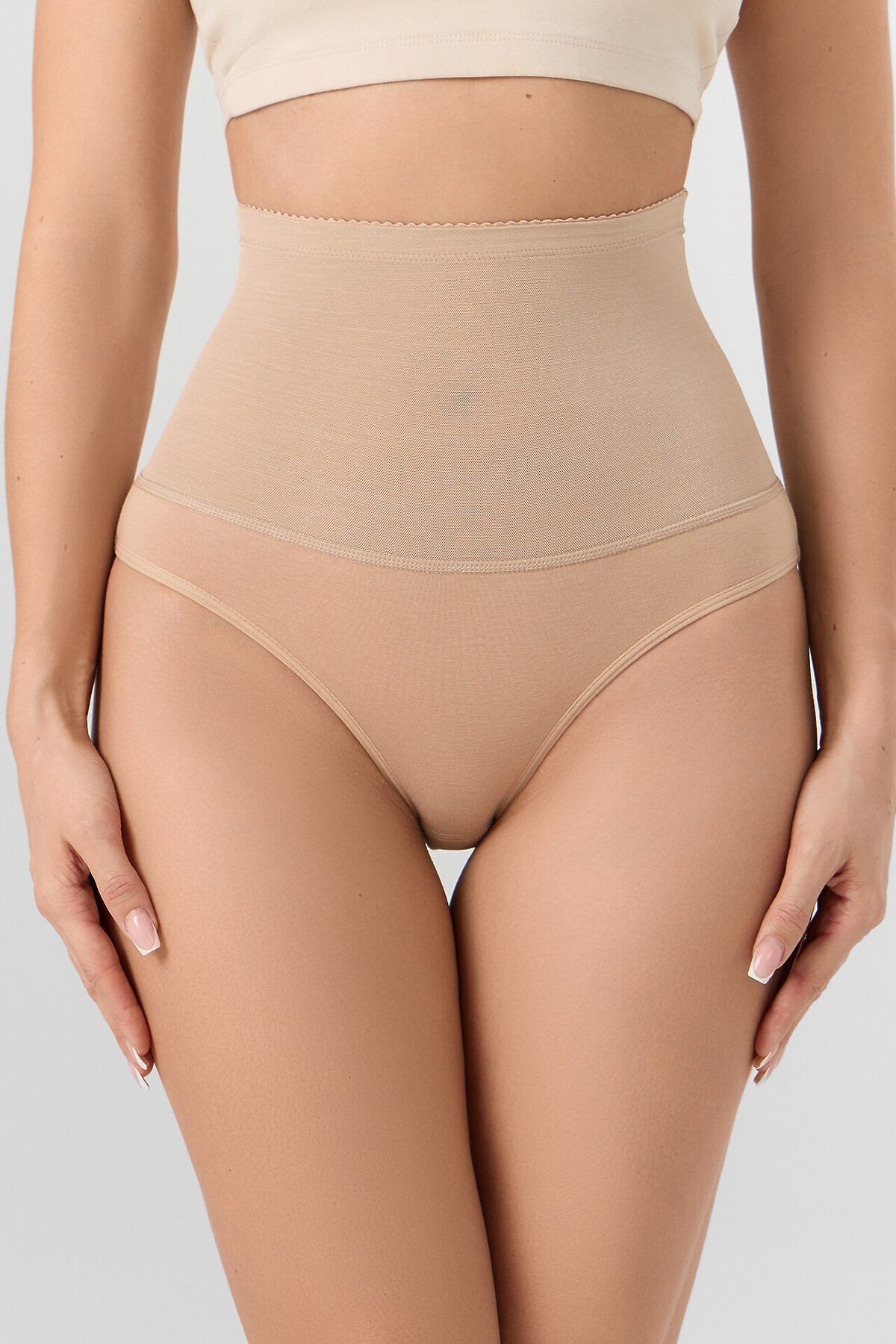Корректирующие трусики с высокой посадкой. Деликатно утягивают проблемные зоны, формируя элегантный женственный силуэт. Нижняя часть модели выполнена из натурального хлопкового полотна, верхняя – из полотна эластик. На поясе – эластичная тесьма, по ножкам – бейка. Базовая расцветка – рекомендуем!
