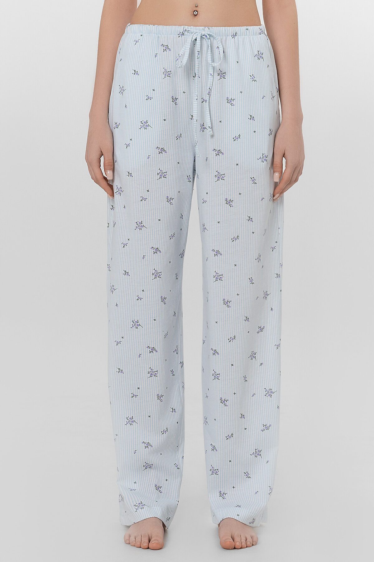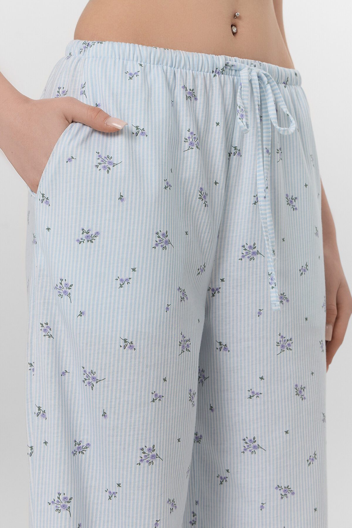 Брюки женские MARK FORMELLE, цветы на голубой полоске
