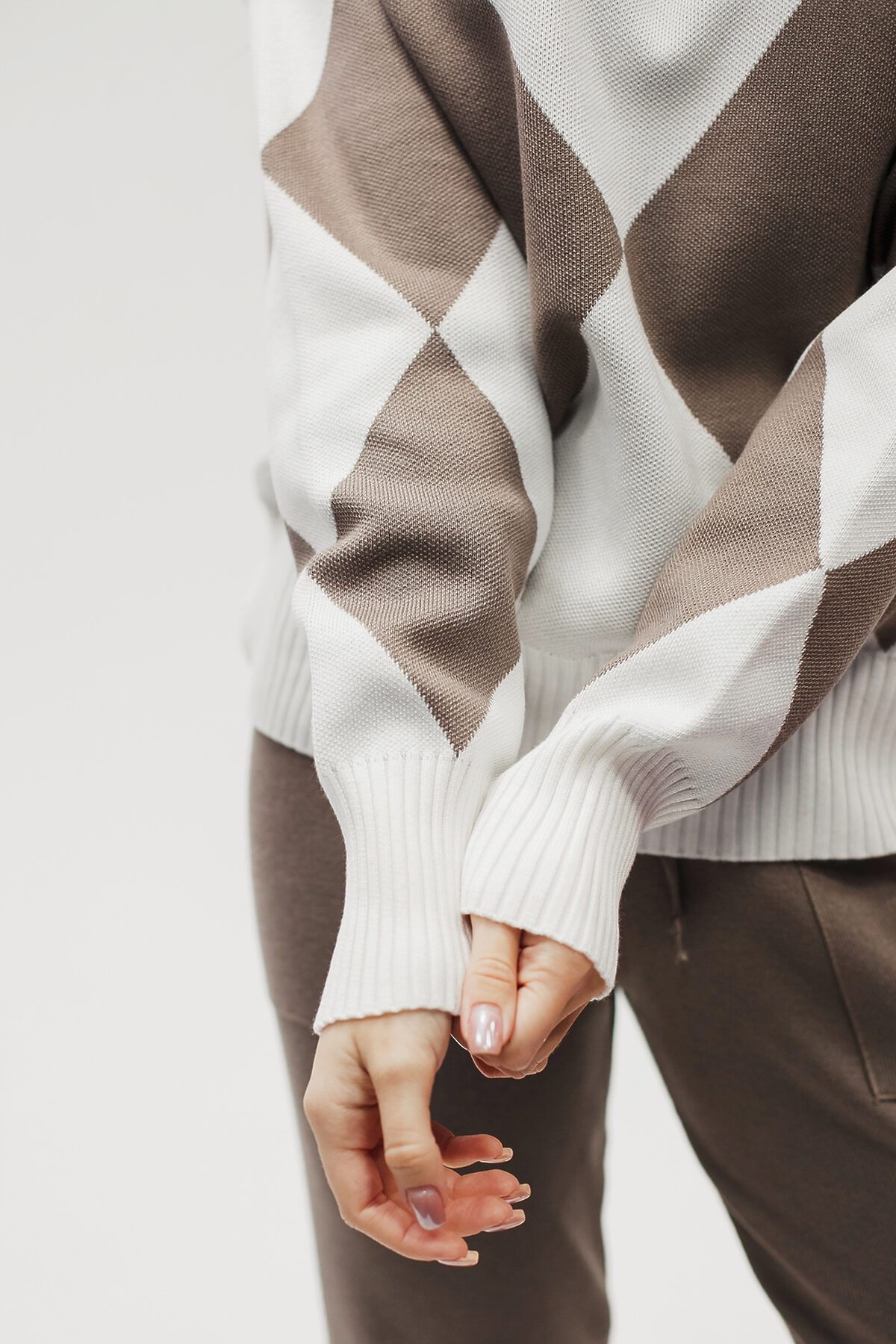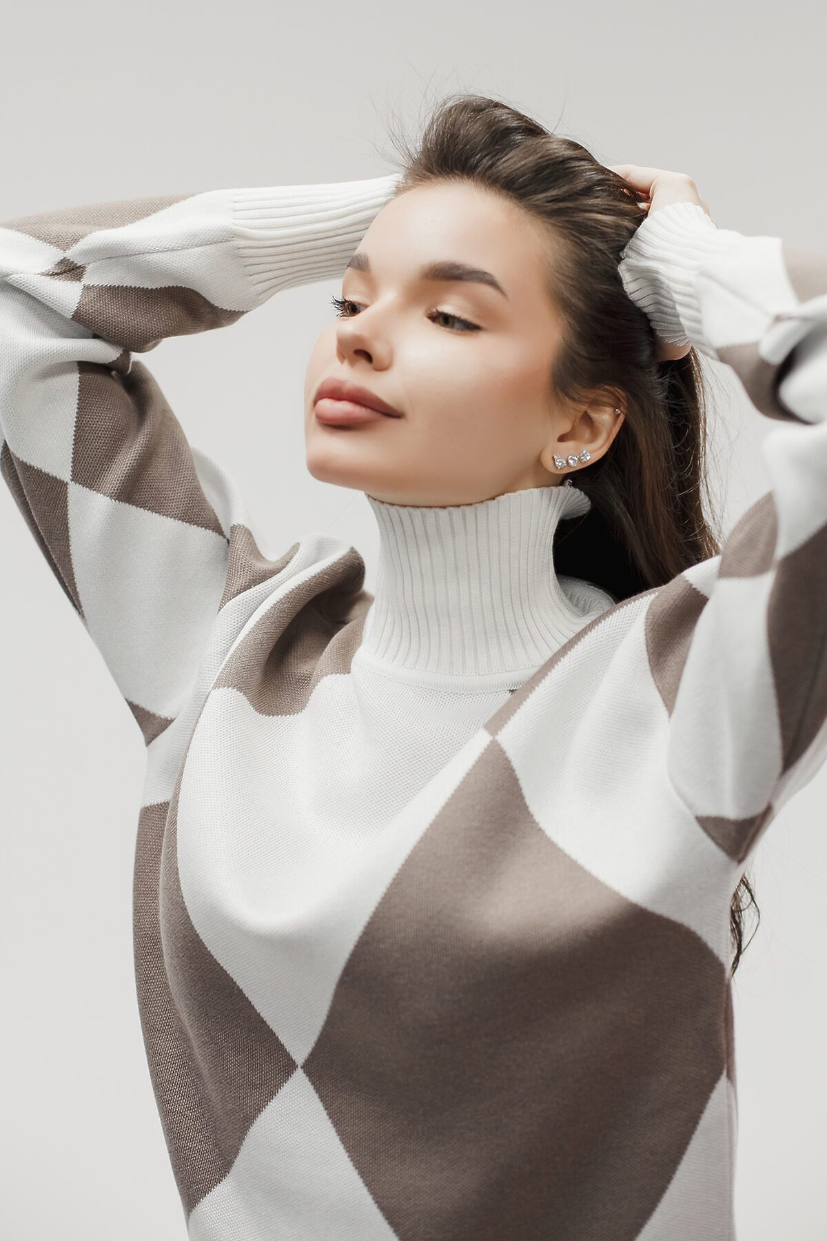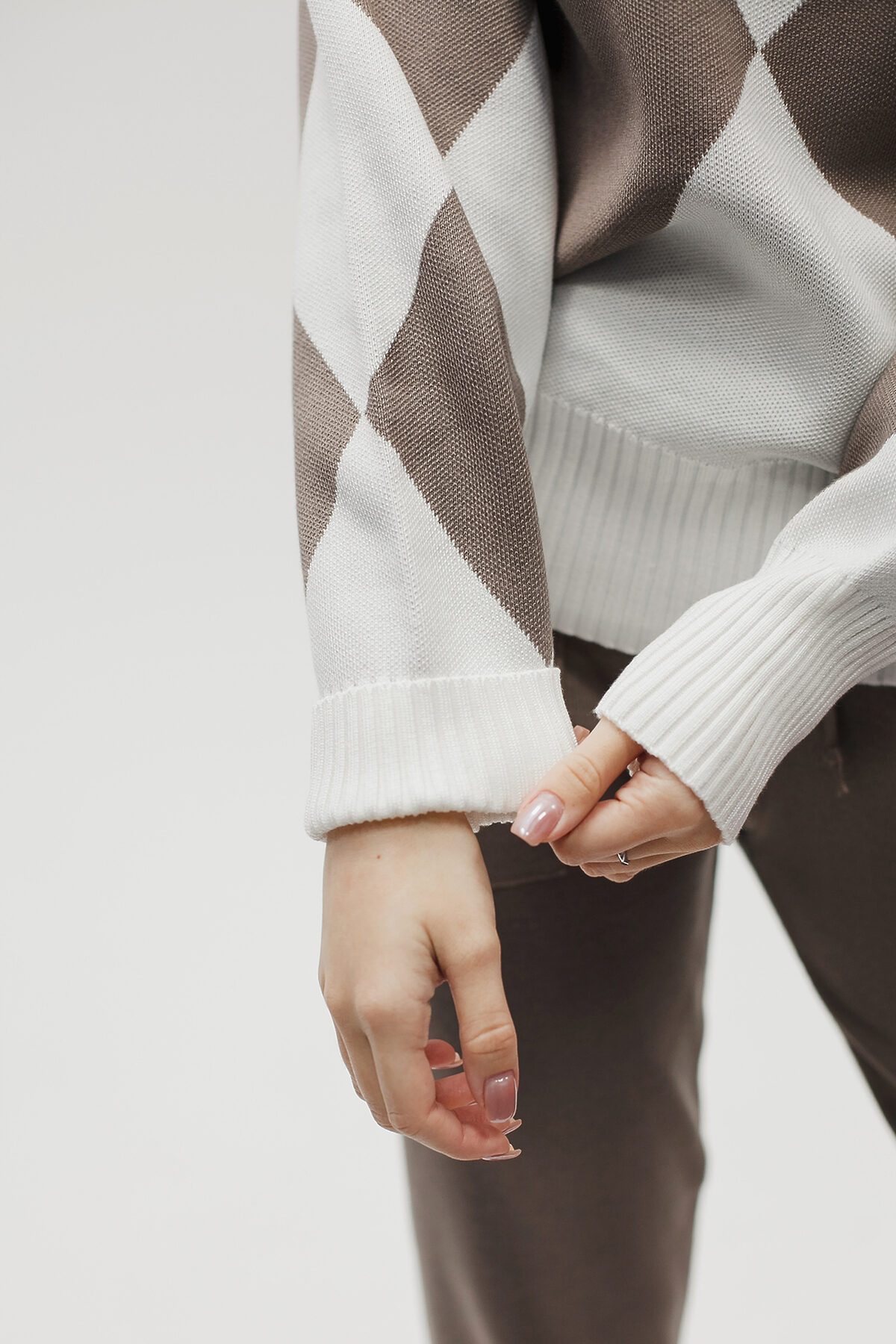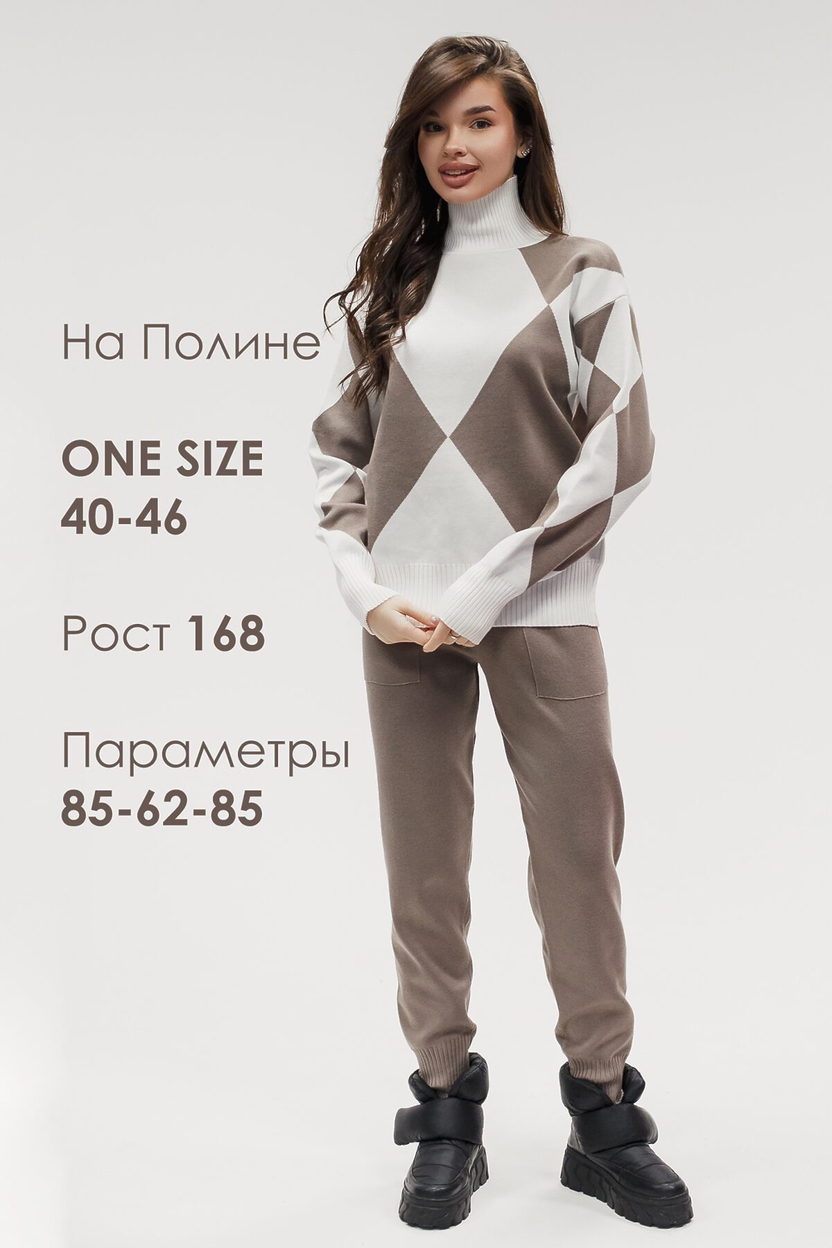 Этот тёплый женский вязаный костюм гармоничный комплект из свитера и брюк, выполненный из плотной, мягкой и эластичной пряжи (состав: 30% хлопок, 40% вискоза, 30% полиэстер), который надёжно сохраняет тепло и при этом приятно прилегает к телу. Свитер свободногос аккуратной воротниковой стойкой средней высоты визуально стройнит и обеспечивает дополнительную защиту от холода, манжеты и нижняя кромка обработаны резинкой для лучшей посадки и сохранения формы. Плечи оформлены со скосом или лёгким полупритёком для комфортной посадки на фигуры разных типов; брюки средней посадки с эластичным поясом и внутренней мягкой тесьмой или шнурком обеспечивают индивидуальную регулировку, прямой или слегка зауженный книзу силуэт свободно сидит по бедру и книзу, благодаря эластичности материала изделие тянется и адаптируется под параметры от 40 до 46 размера и комфортно смотрится на росте до 160 см, при этом посадка и длина оптимизированы под невысокий рост брюки не требуют сильной подшивки, а длина пуловера рассчитана так, чтобы сочетаться с верхней одеждой; в дизайне предусмотрены функциональные детали: скрытые боковые или накладные карманы в брюках, аккуратные декоративные швы или узорная вязка на передней части пуловера, что добавляет текстуре и визуального интереса, при этом декоративность не мешает повседневному использованию; палитра нейтральные базовые оттенки (беж, серый, графит, тёмно-синий) и несколько насыщенных цветовых акцентов (бордо, изумруд, горчичный), которые легко сочетаются с верхней одеждой и аксессуарами; материал и плотная вязка делают костюм универсальным для осенне-зимнего периода и прохладной весны он отлично подойдёт как для прогулок и поездок, так и для уютных домашних вечеров или неофициальных встреч; уход: рекомендована деликатная стирка руками или в машине на щадящем режиме при температуре не выше 30C, сушить в расправленном виде на горизонтальной поверхности, не отбеливать, при необходимости возможна бережная химчистка; благодаря продуманной посадке и использованию качественной пряжи комплект сохраняет форму и внешний вид даже при регулярной носке, подчёркивает женственность без лишней вычурности и станет практичным элементом гардероба тех, кто ценит комфорт, тепло и стиль.