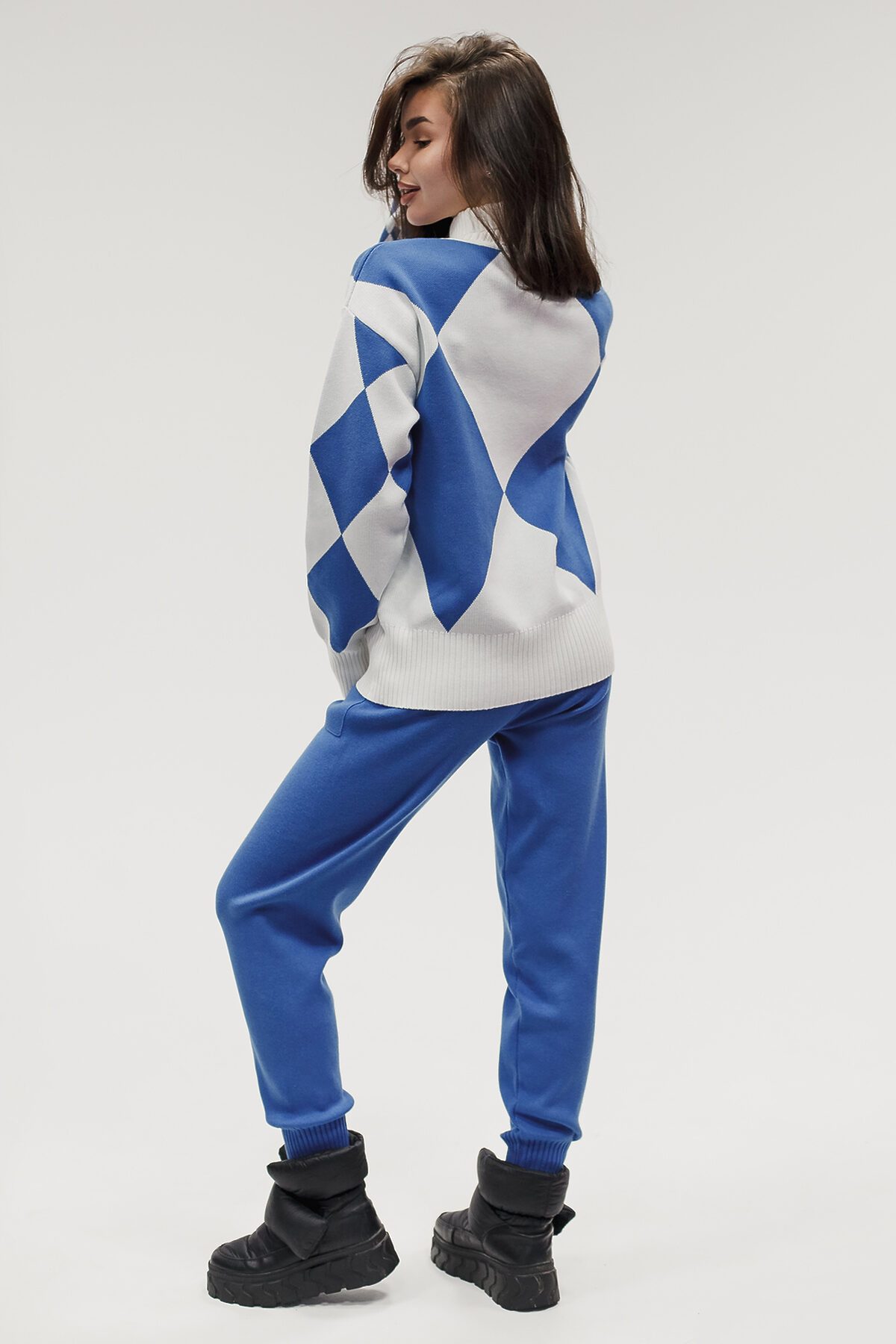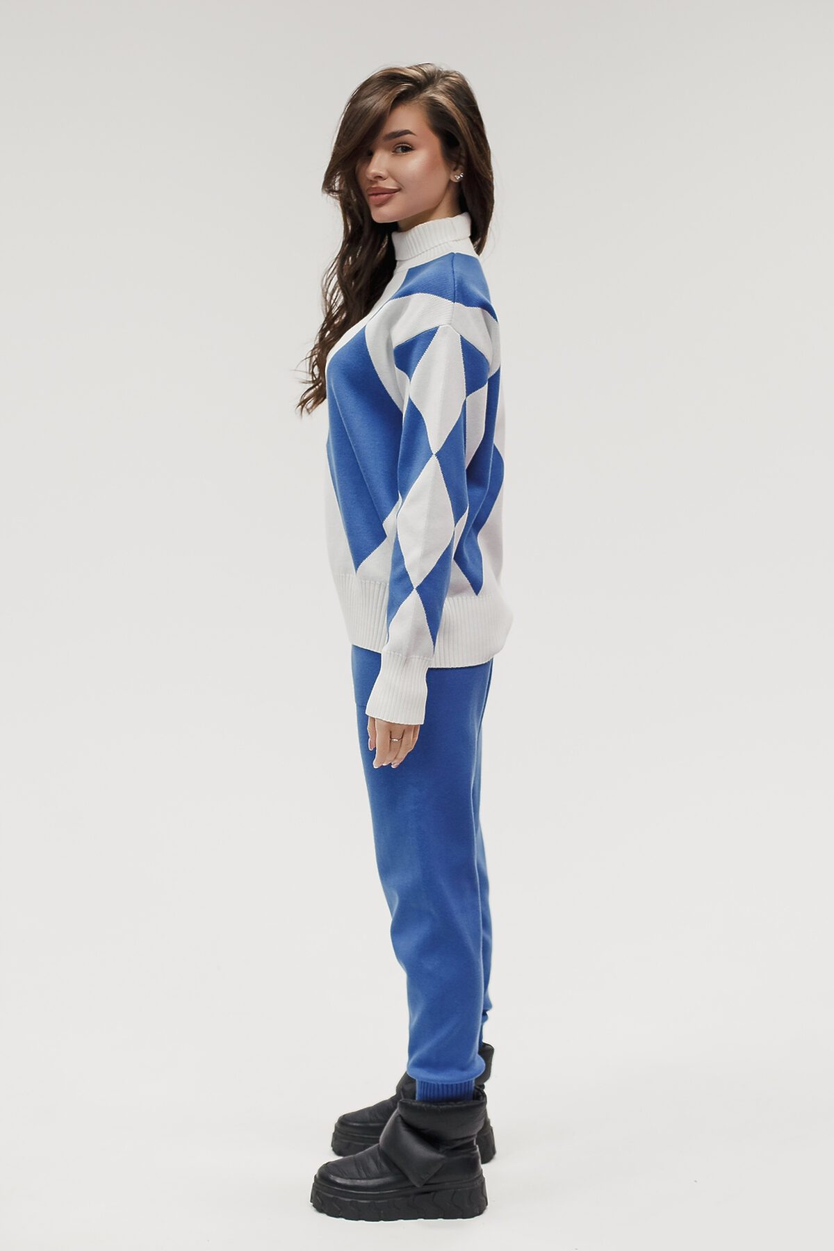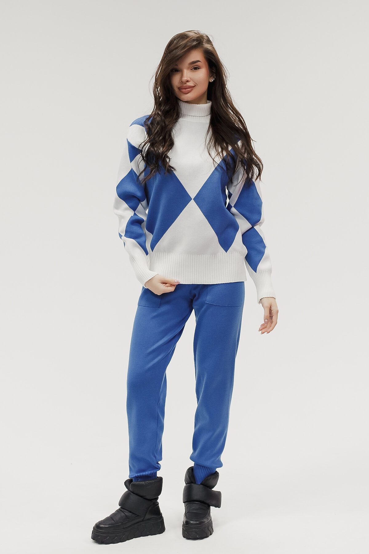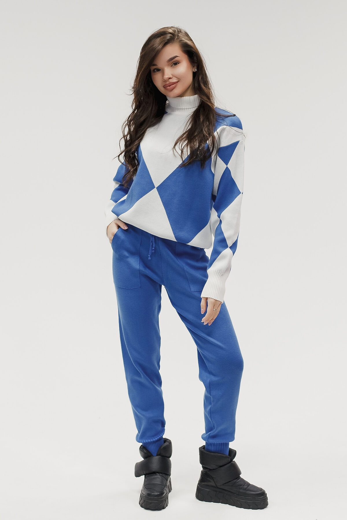 Этот тёплый женский вязаный костюм гармоничный комплект из свитера и брюк, выполненный из плотной, мягкой и эластичной пряжи (состав: 30% хлопок, 40% вискоза, 30% полиэстер), который надёжно сохраняет тепло и при этом приятно прилегает к телу. Свитер свободногос аккуратной воротниковой стойкой средней высоты визуально стройнит и обеспечивает дополнительную защиту от холода, манжеты и нижняя кромка обработаны резинкой для лучшей посадки и сохранения формы. Плечи оформлены со скосом или лёгким полупритёком для комфортной посадки на фигуры разных типов; брюки средней посадки с эластичным поясом и внутренней мягкой тесьмой или шнурком обеспечивают индивидуальную регулировку, прямой или слегка зауженный книзу силуэт свободно сидит по бедру и книзу, благодаря эластичности материала изделие тянется и адаптируется под параметры от 40 до 46 размера и комфортно смотрится на росте до 160 см, при этом посадка и длина оптимизированы под невысокий рост брюки не требуют сильной подшивки, а длина пуловера рассчитана так, чтобы сочетаться с верхней одеждой; в дизайне предусмотрены функциональные детали: скрытые боковые или накладные карманы в брюках, аккуратные декоративные швы или узорная вязка на передней части пуловера, что добавляет текстуре и визуального интереса, при этом декоративность не мешает повседневному использованию; палитра нейтральные базовые оттенки (беж, серый, графит, тёмно-синий) и несколько насыщенных цветовых акцентов (бордо, изумруд, горчичный), которые легко сочетаются с верхней одеждой и аксессуарами; материал и плотная вязка делают костюм универсальным для осенне-зимнего периода и прохладной весны он отлично подойдёт как для прогулок и поездок, так и для уютных домашних вечеров или неофициальных встреч; уход: рекомендована деликатная стирка руками или в машине на щадящем режиме при температуре не выше 30C, сушить в расправленном виде на горизонтальной поверхности, не отбеливать, при необходимости возможна бережная химчистка; благодаря продуманной посадке и использованию качественной пряжи комплект сохраняет форму и внешний вид даже при регулярной носке, подчёркивает женственность без лишней вычурности и станет практичным элементом гардероба тех, кто ценит комфорт, тепло и стиль.