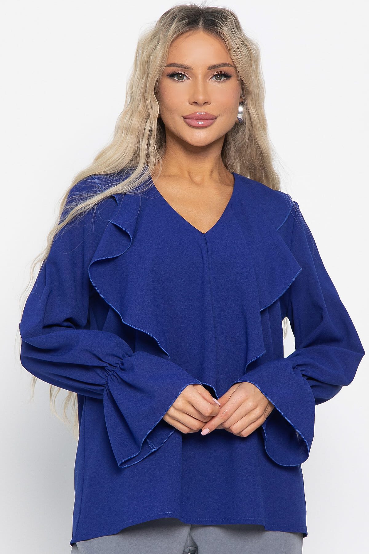 Блузки представляют собой важный элемент женского гардероба. Стиль — это всё. Как и блузки с длинным рукавом. Изделие выполнено из креп-шифона. V-образный вырез горловины с воланом по переду и рукав на резинке с оборкой придают воздушность, женственность и элегантность. Свободный крой дарит комфорт и не сковывает движения. Блуза универсальна и может быть использована как для офисного стиля при сочетании с подходящими элементами гардероба, так и для торжественных мероприятий.