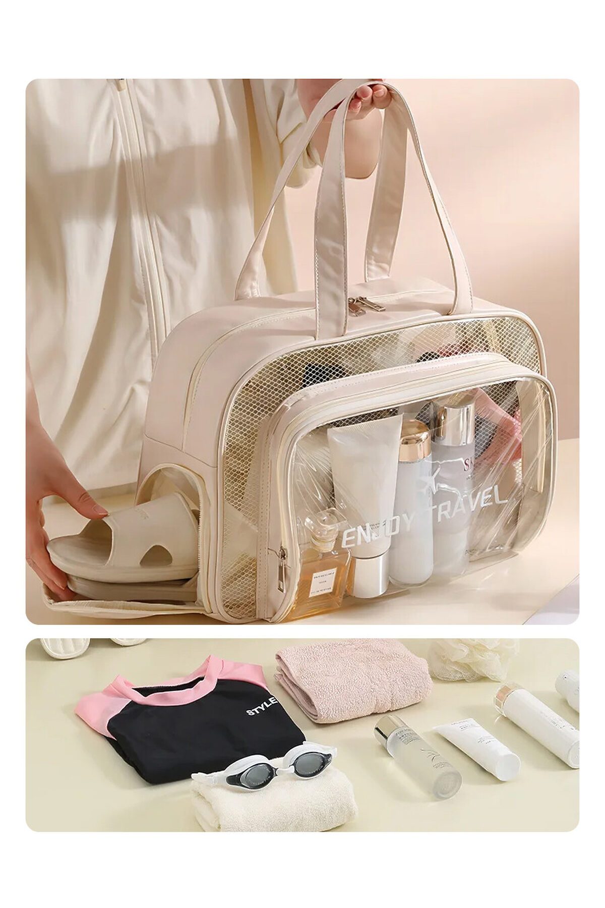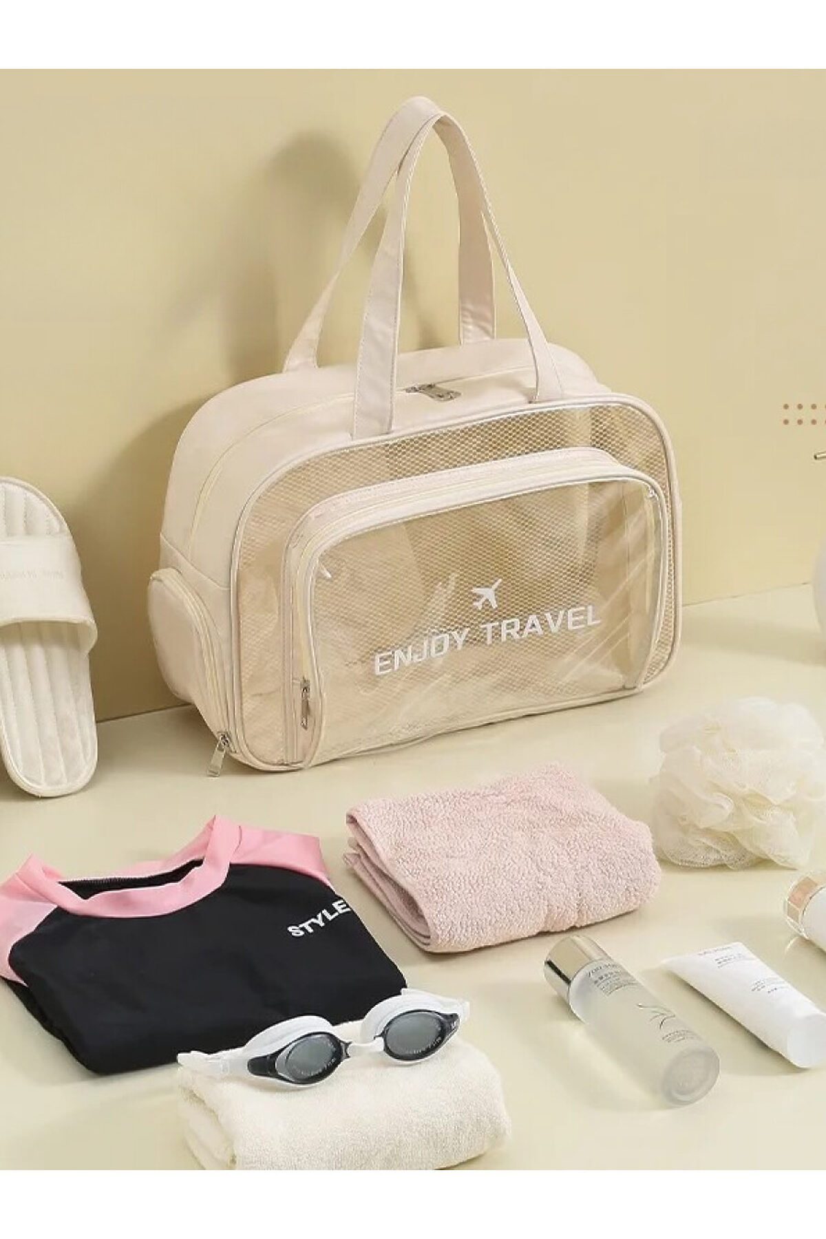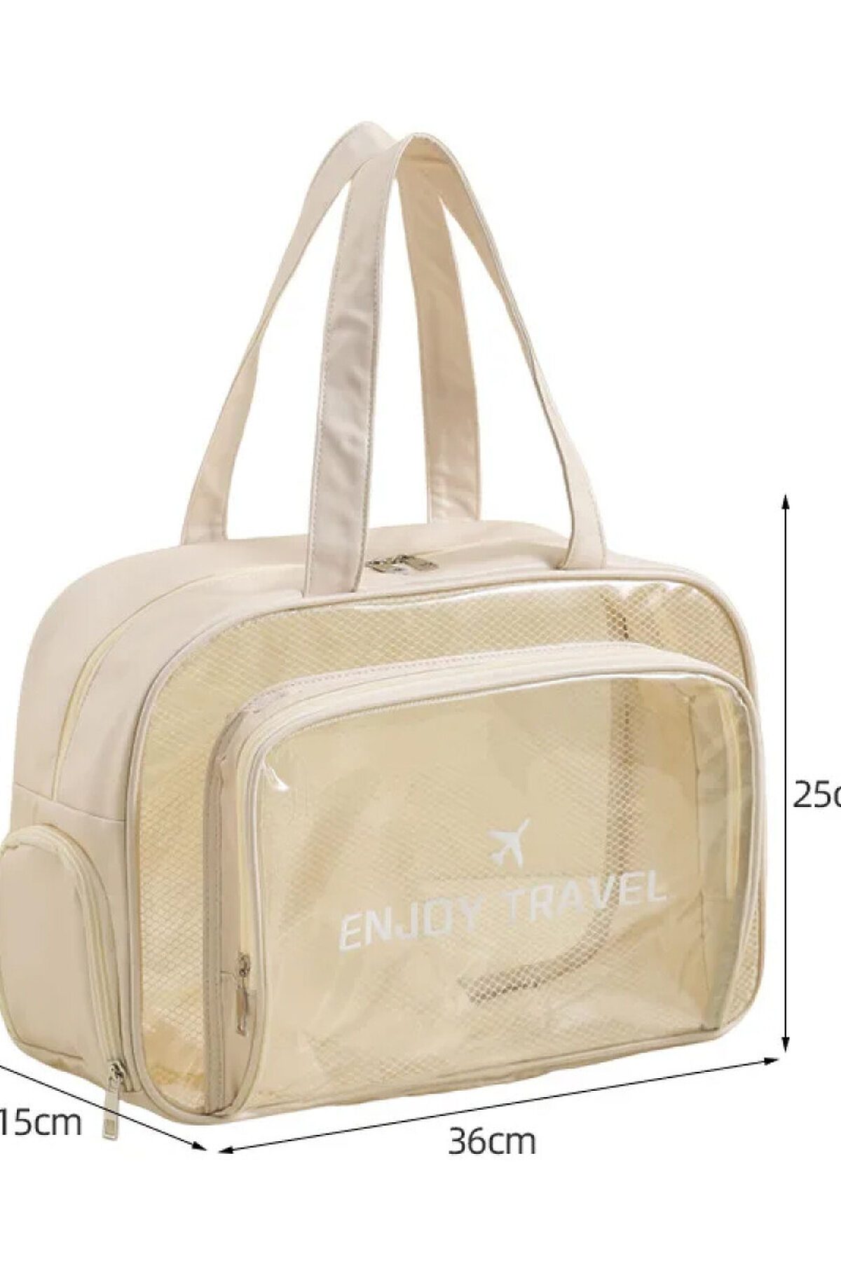 Универсальная прозрачная сумка Kristaller — практичное решение для плавания, пляжа, фитнеса, путешествий и хранения личных вещей. Выполнена из водонепроницаемых материалов ПУ и ПВХ, защищает содержимое от влаги и загрязнений. Стильный бежевый оттенок и лаконичный дизайн подойдут как женщинам, так и мужчинам. Особенности и преимущества Водонепроницаемая — подходит для бассейна и пляжа Прозрачный корпус — удобно контролировать содержимое Отдельный боковой карман для обуви или влажных вещей Вместительное основное отделение на молнии Накладной карман на молнии для мелочей и аксессуаров Унисекс-дизайн — для спорта, путешествий и повседневного использования Функциональность Для плавания и бассейна Для фитнеса и спортзала Для пляжного отдыха Для путешествий и ручной клади Застёжка: молния Отделения: большое основное отделение боковой карман для обуви накладной карман на молнии Размер: 36 × 15 × 25 см