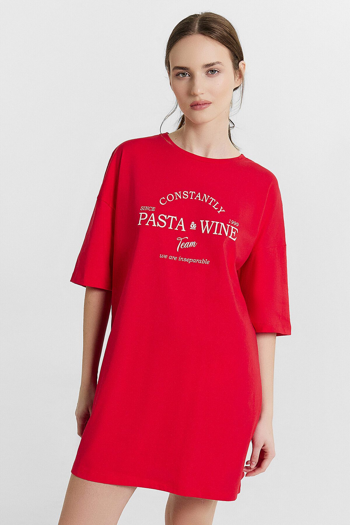 Очаровательная женская туника станет идеальным дополнением ваших домашних образов. Она прекрасно сидит по фигуре и не стесняет движений, обеспечивая максимальный комфорт. Короткие рукава со спущенной линией плеча и круглая горловина придают модели легкость. Изделие выполнено из мягкого и дышащего материала, который не сковывает движений и обеспечивает ощущение свободы. Деликатные швы абсолютно не чувствуются на коже, что добавляет дополнительное удобство. Эта туника идеально подходит для занятий домашними делами, отдыха и сна. В линейке представлены интересные базовые цвета, а широкий размерный ряд позволяет каждой женщине найти подходящий вариант. Рекомендуем!