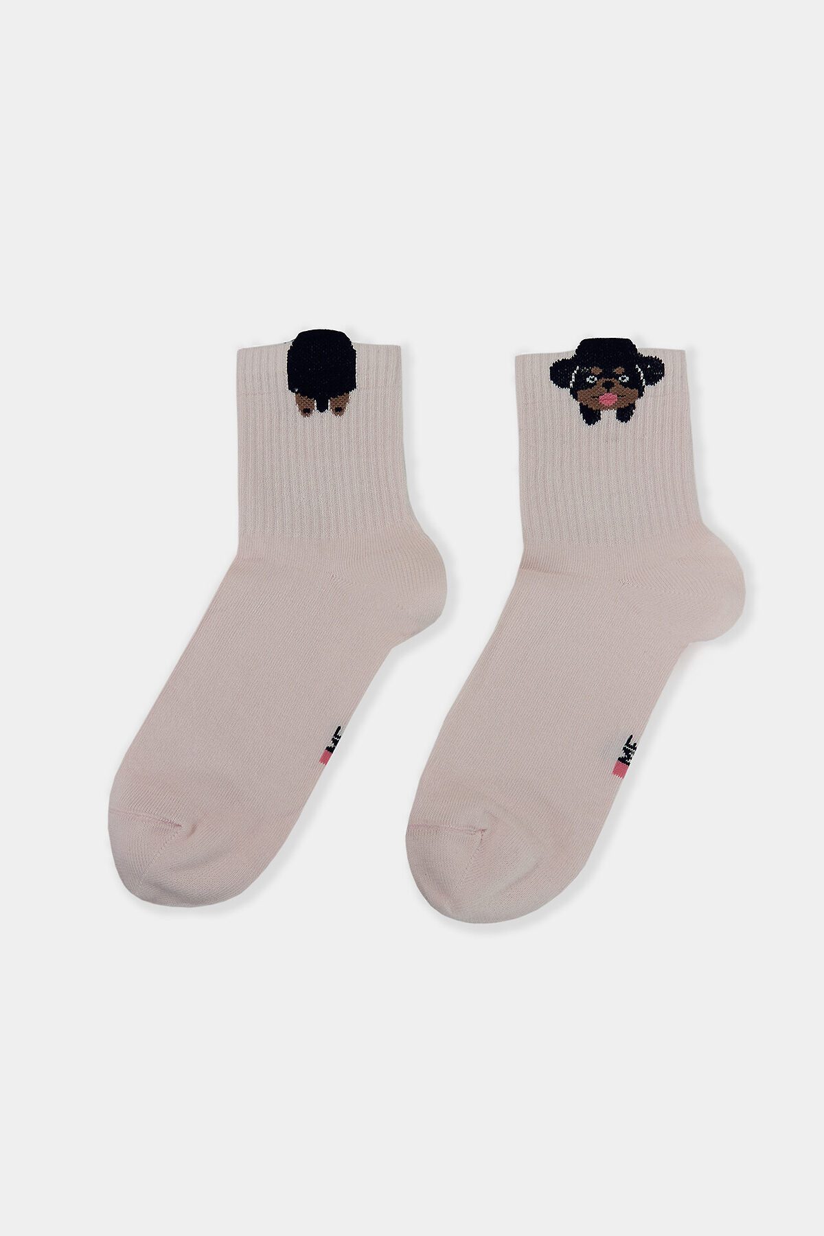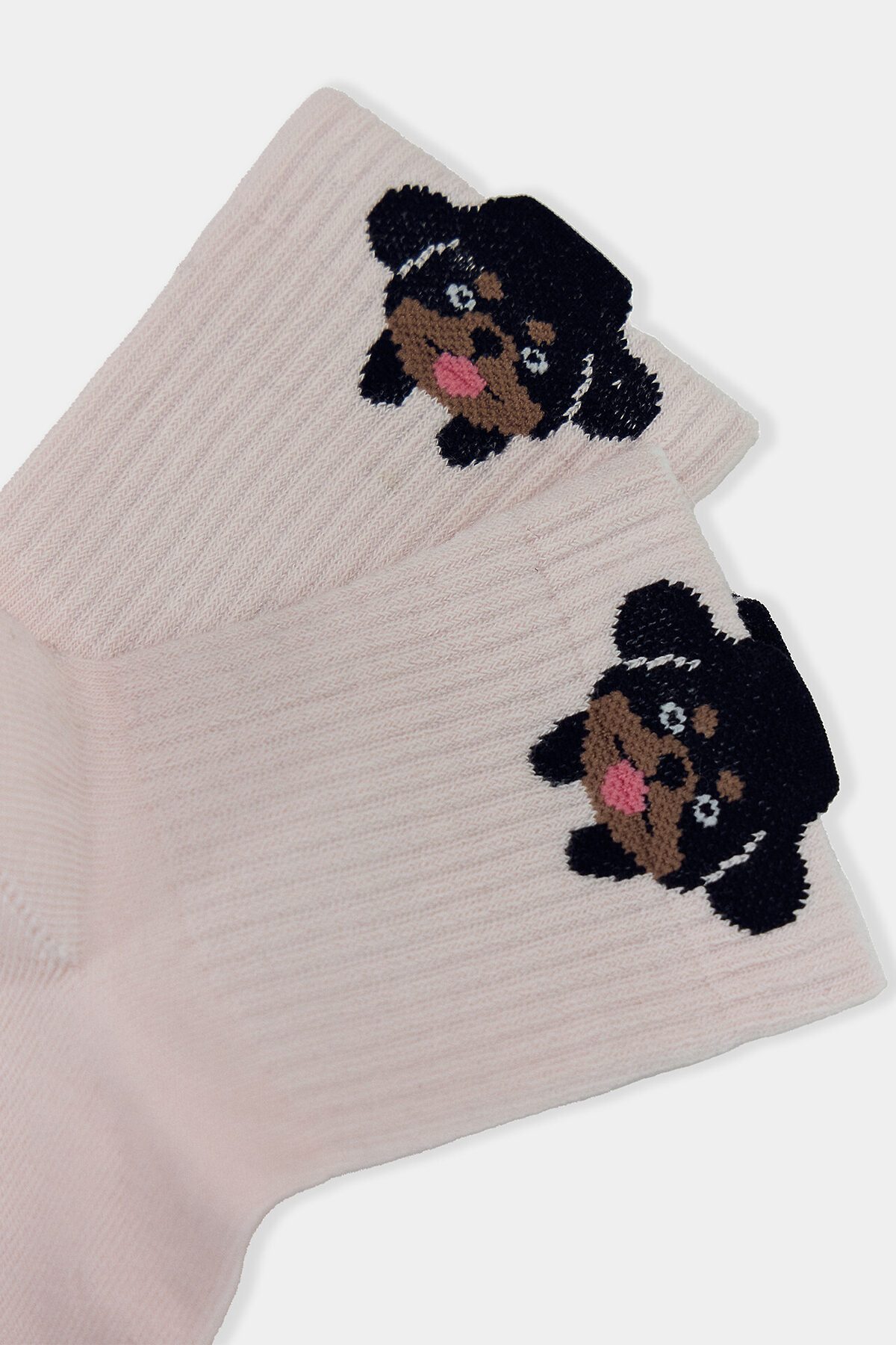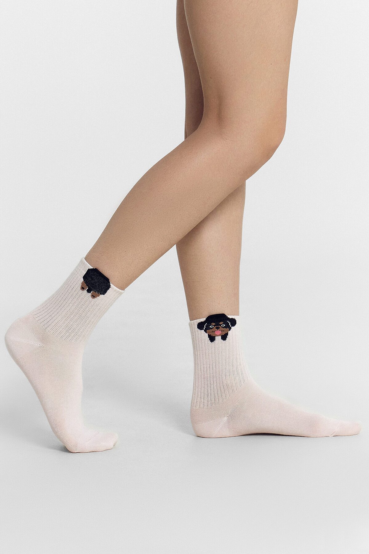 рис.2761 Женские носки средней высоты, с плотным бортом с рисунком в виде собачки с элементами пикота на бортике.