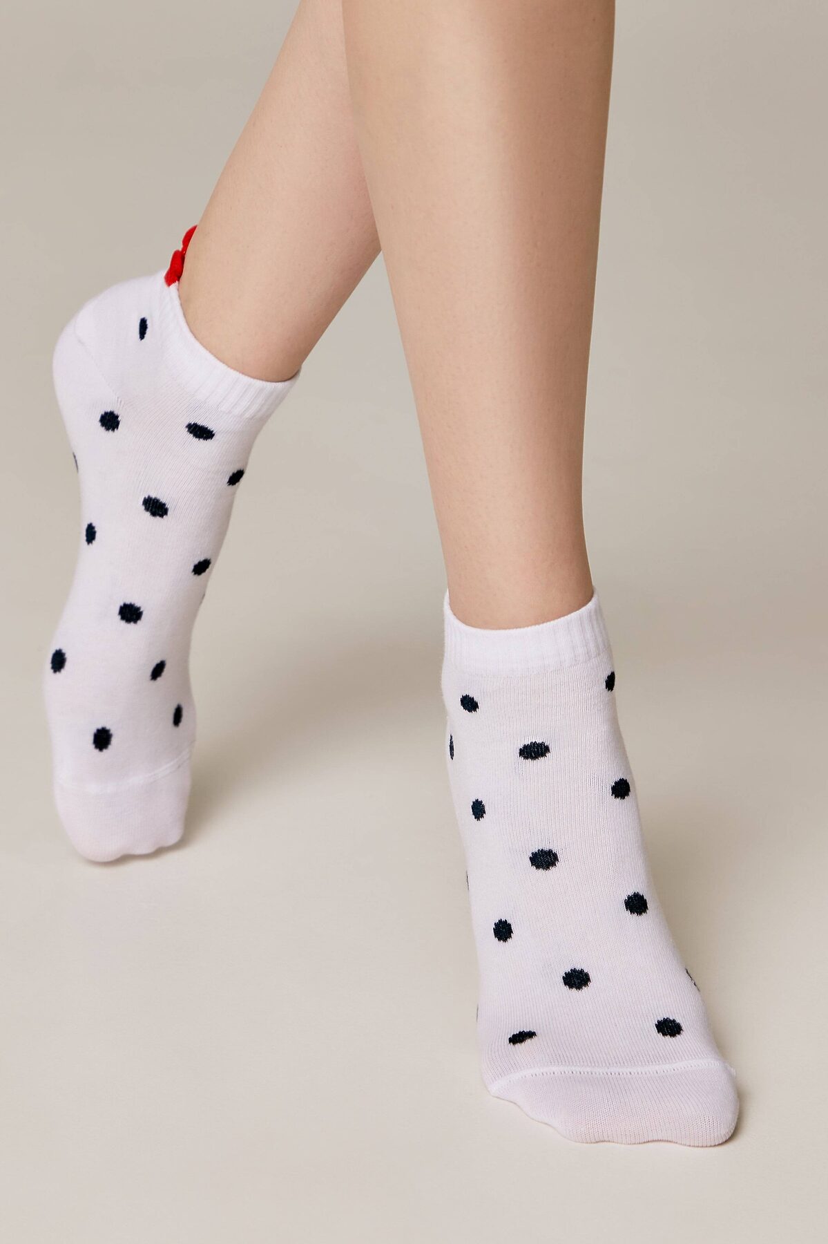 Носки женские CONTE Короткие хлопковые носки в горошек CONTE ELEGANT, white