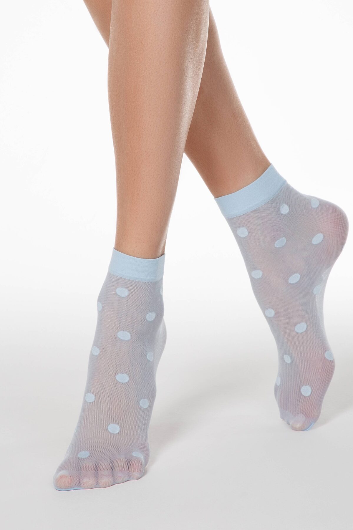 Эластичные полупрозрачные носки в горошек станут стильным акцентом вашего модного образа. Вы оцените удобный эластичный борт и комфортную облегающую посадку на ноге.