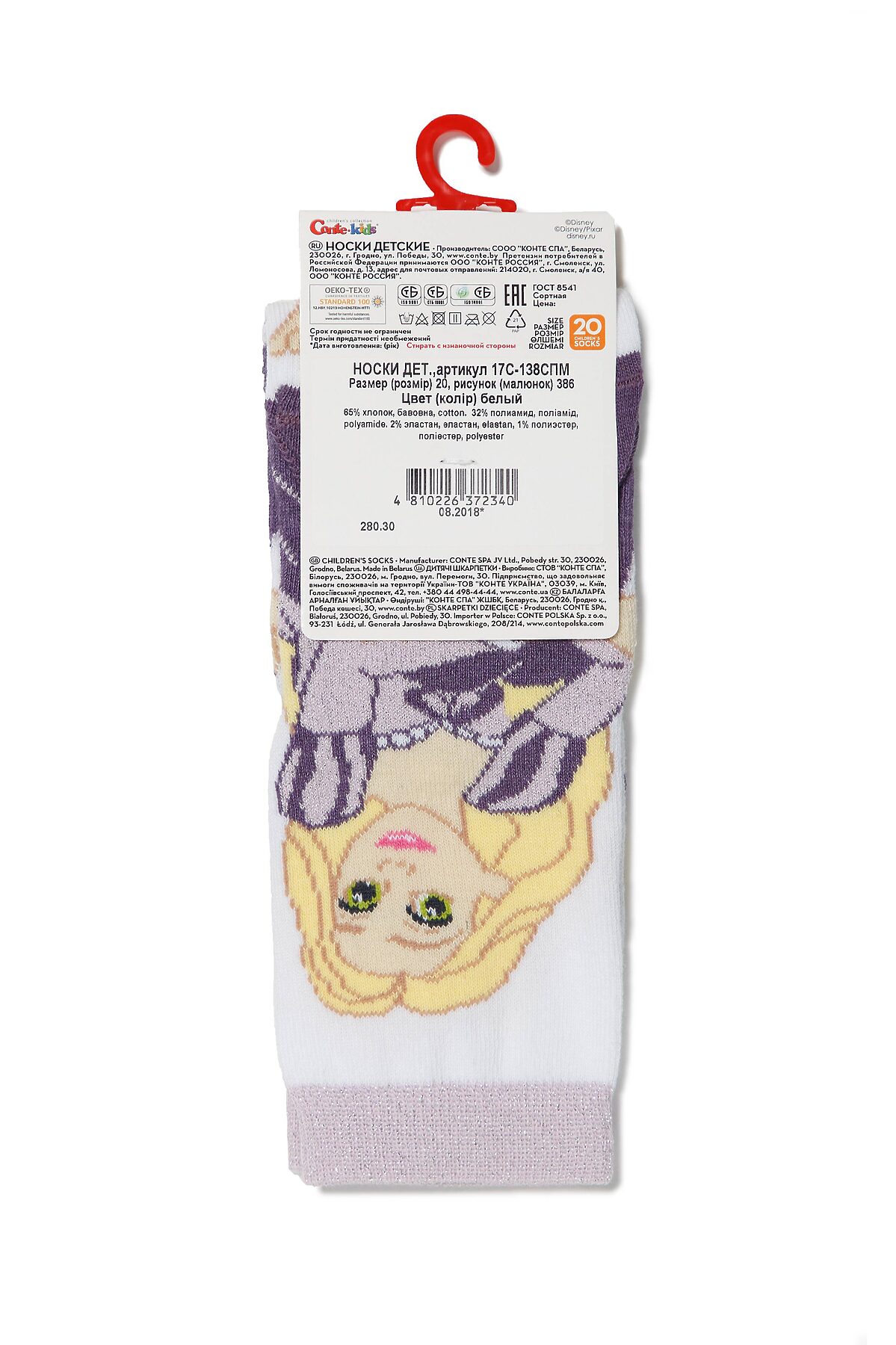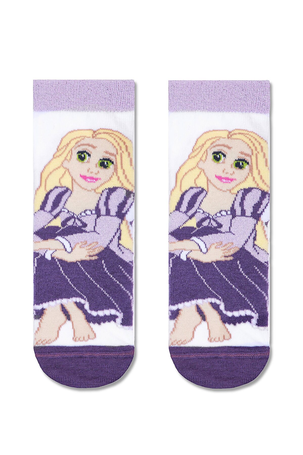 Эти яркие детские носочки из хлопка с люрексом станут отличным дополнением к гардеробу маленькой поклонницы мультфильмов студии ©Disney. Лицензионные герои сказочного мира ©Disney – любопытная Ариэль, прекрасная Рапунцель, смелая Бель и заботливая Золушка, - ждут встречи с Вашей принцессой!