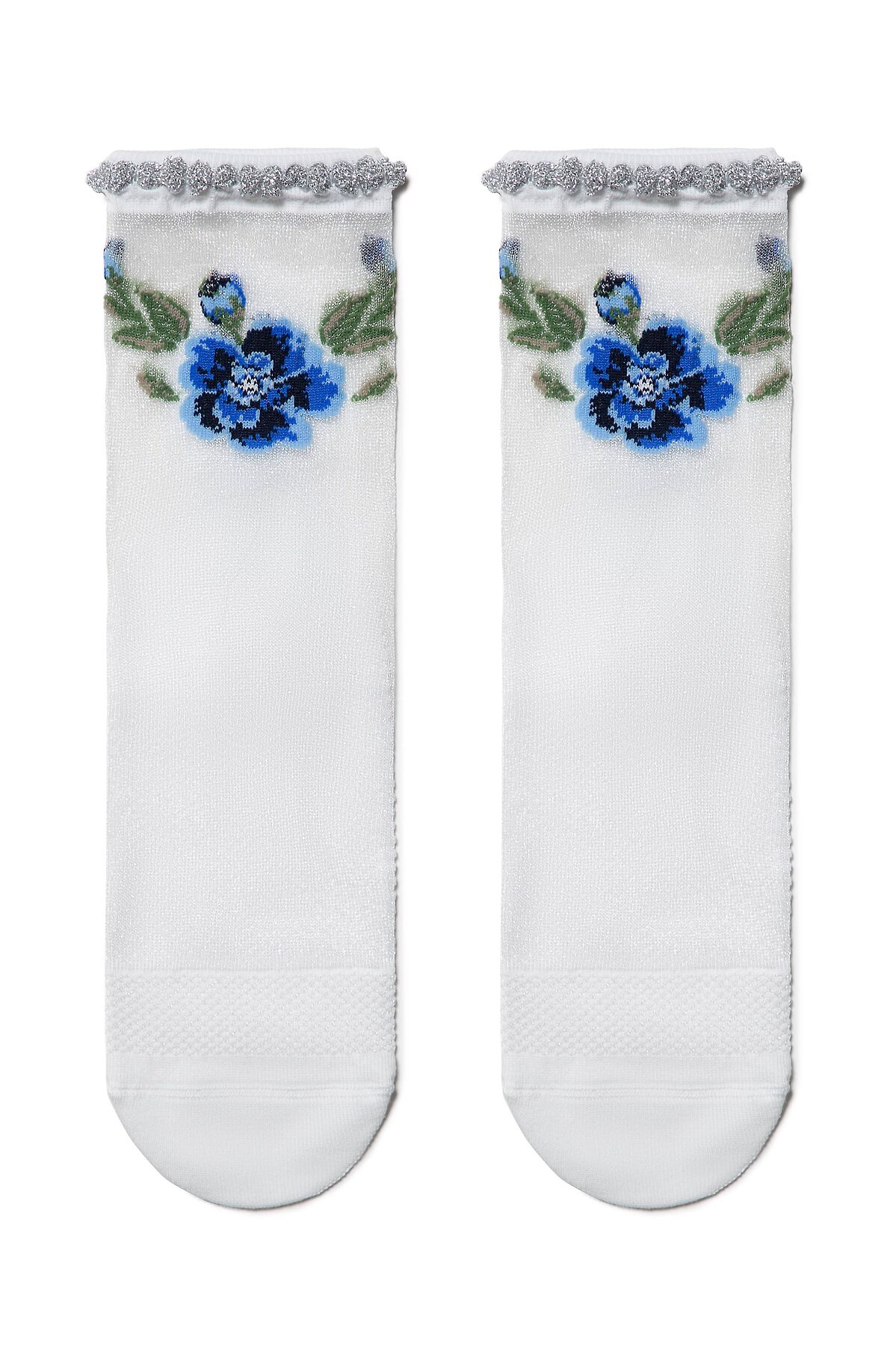Имитация ручной вышивки с цветочными мотивами, «пикот» из сияющего люрекса, прозрачная сетка – в этих фантазийных носках прекрасно все. Носки смотрятся так стильно и ярко, что их смело можно носить с туфлями или открытой обувью. Расставляйте модные акценты в своем образе правильно с новыми трендовыми носочками!
