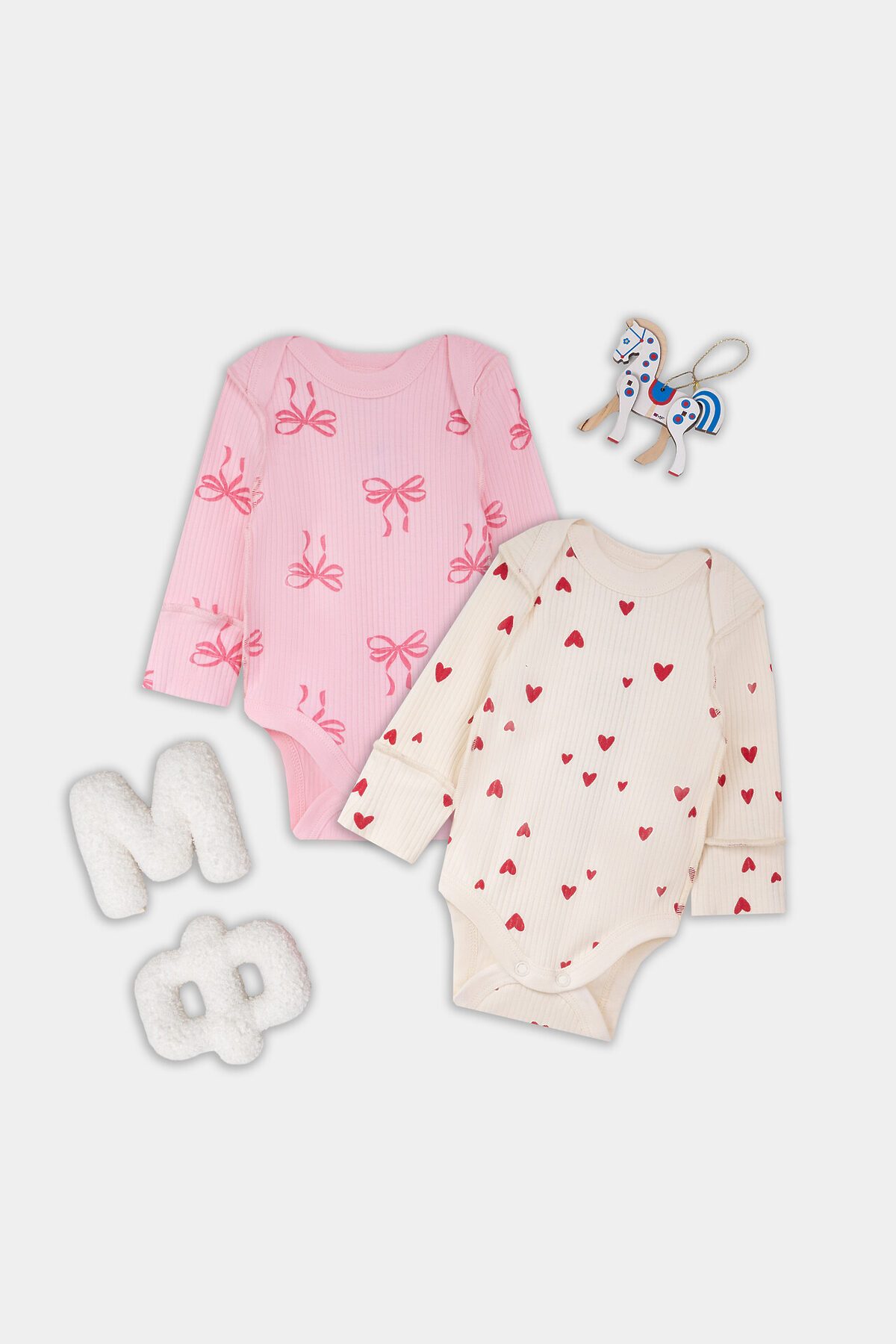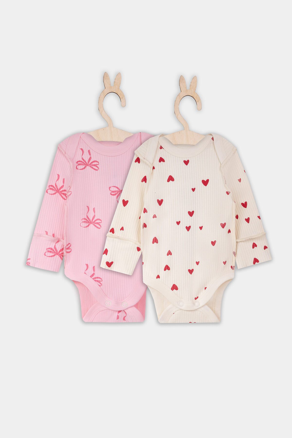 Боди детское (2шт.) MARK FORMELLE, сердечки на молочном +бантики на розовой сказке