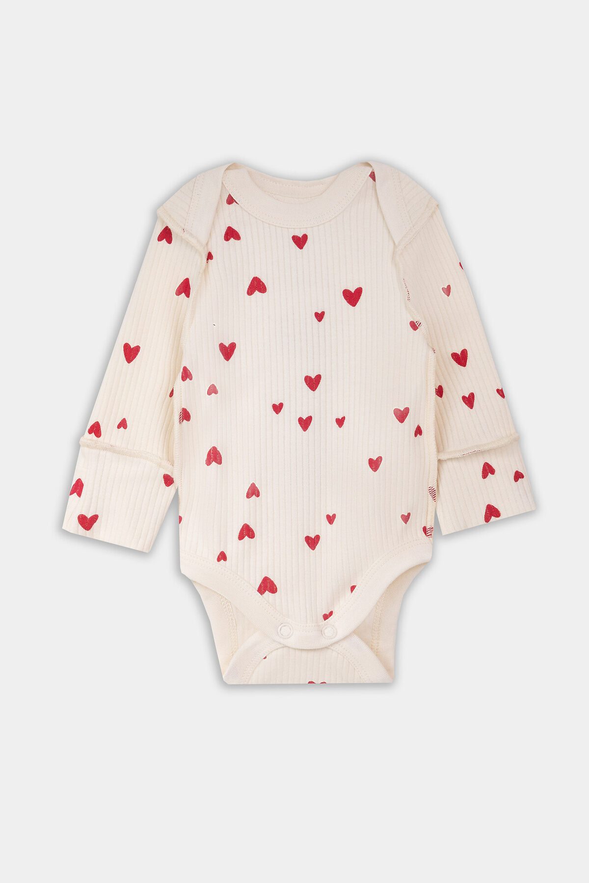 Круглая горловина и все срезы аккуратно окантованы мягкой бейкой, которая нежно прилегает к телу. Длинные рукава с защитными «царапками» надежно закрывают ручки малыша, предотвращая случайные царапины.