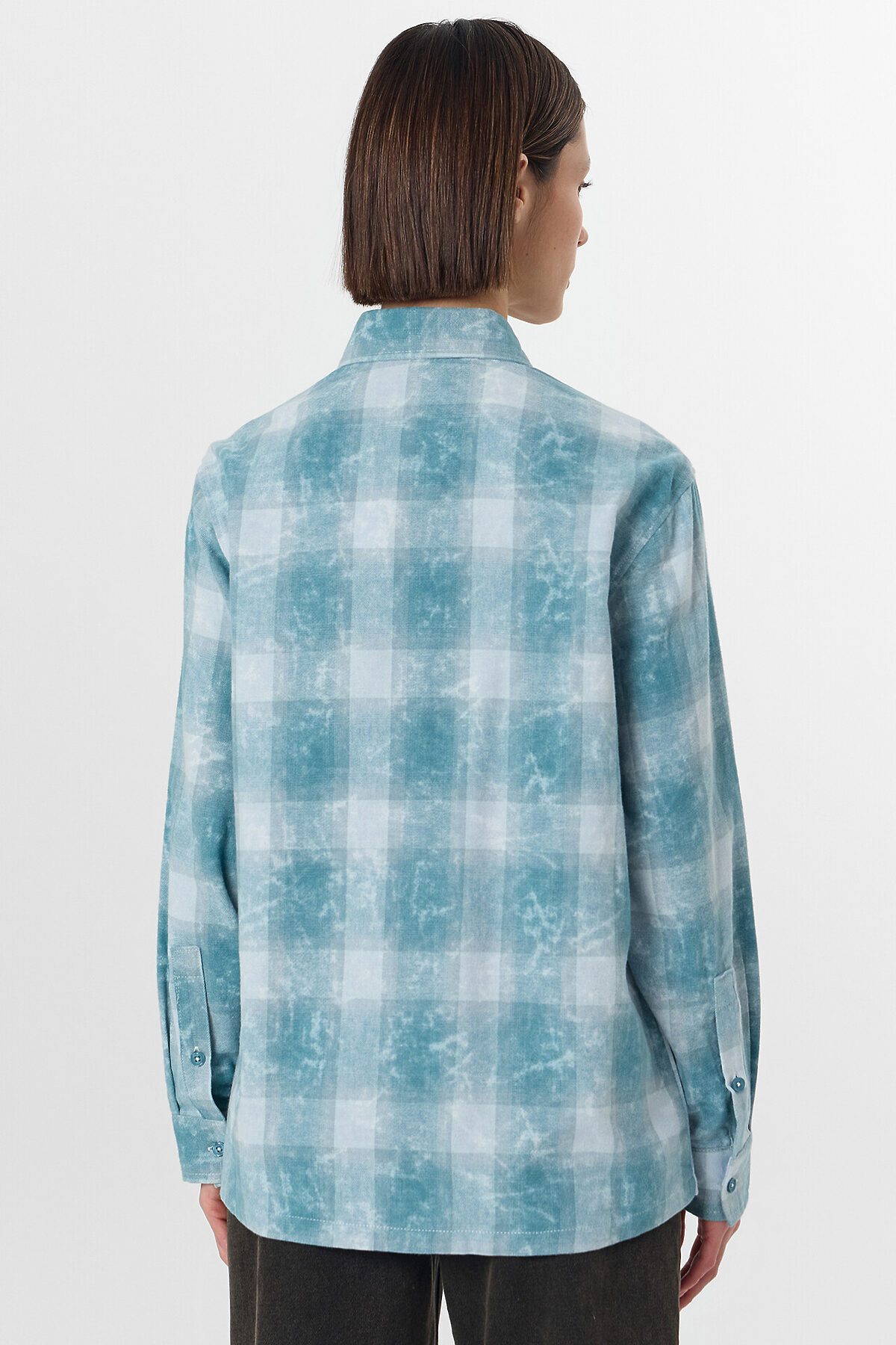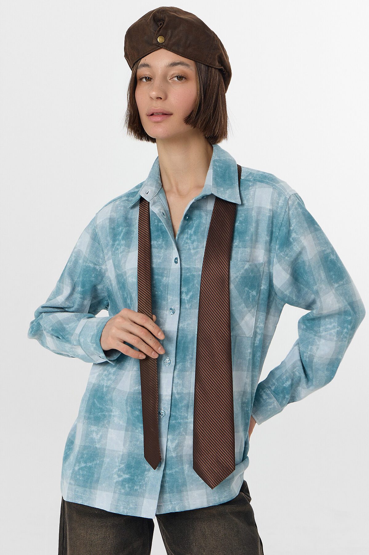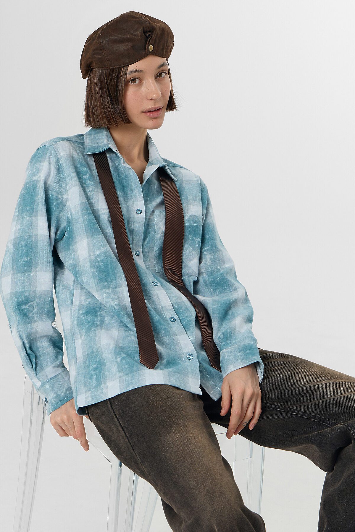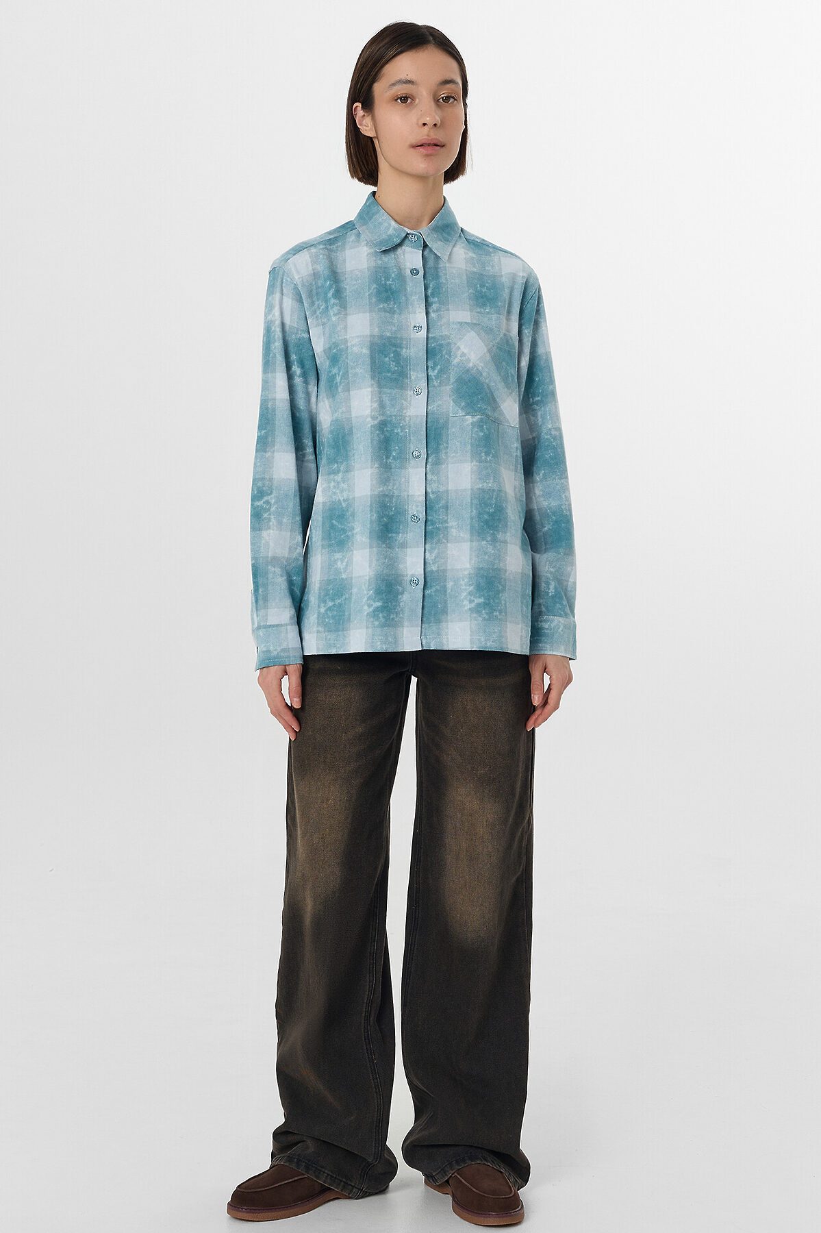 Эта модель легко сочетается с джинсами, брюками современных фасонов и юбками, позволяя создавать стильные комбинации. Графичная клетка делает рубашку самостоятельным акцентом в луке, который органично дополнит как расслабленные, так и собранные образы.