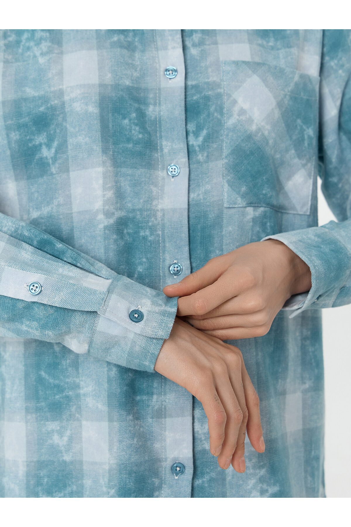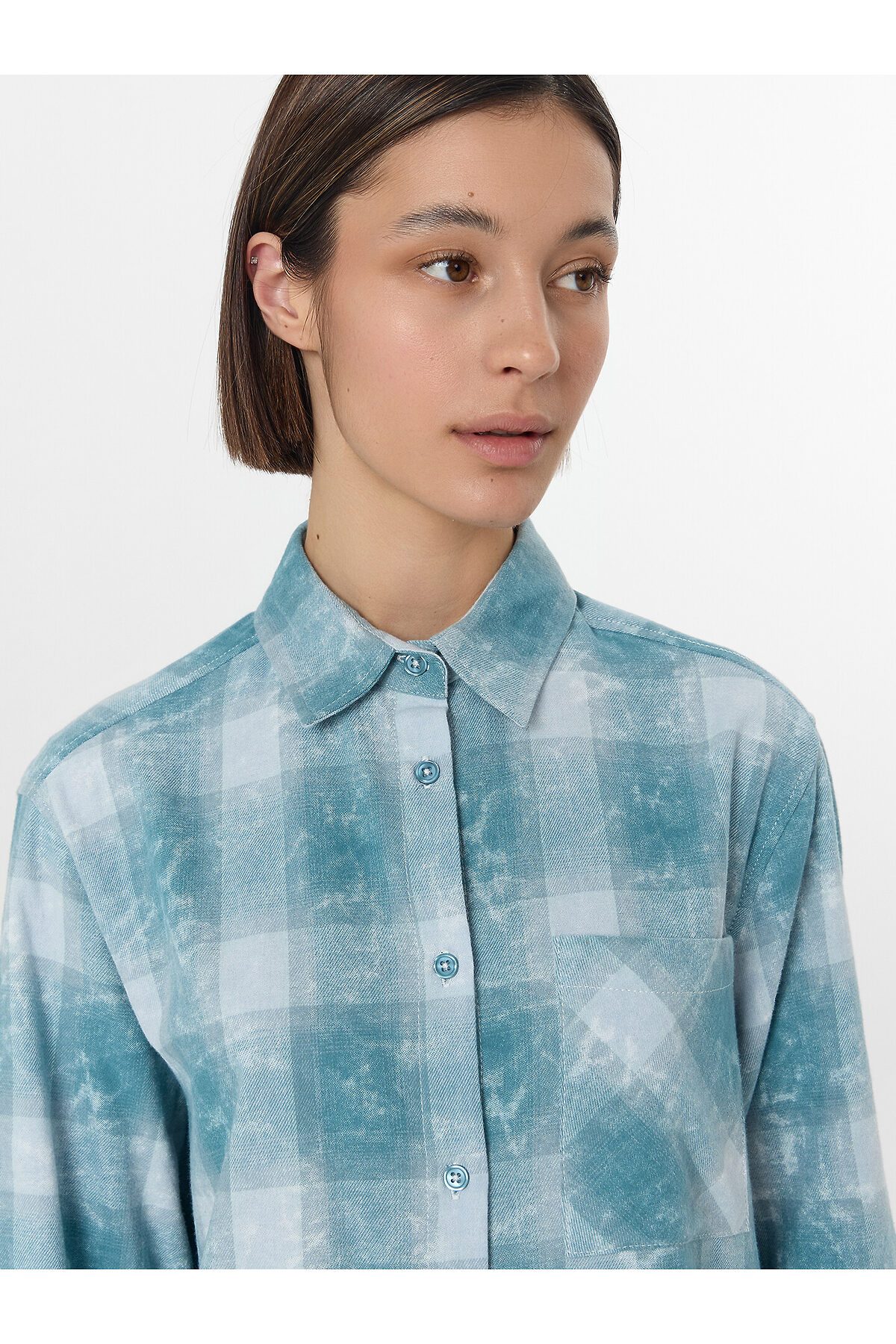 Женская рубашка из хлопка в клетку — современный базовый элемент гардероба, где классическая форма встречается с актуальным дизайном. Модель прямого силуэта с отложным воротником и длинными рукавами на манжетах создает выразительный образ. Нагрудный карман и застежка на пуговицы по всей длине и на манжетах подчеркивают продуманность деталей.