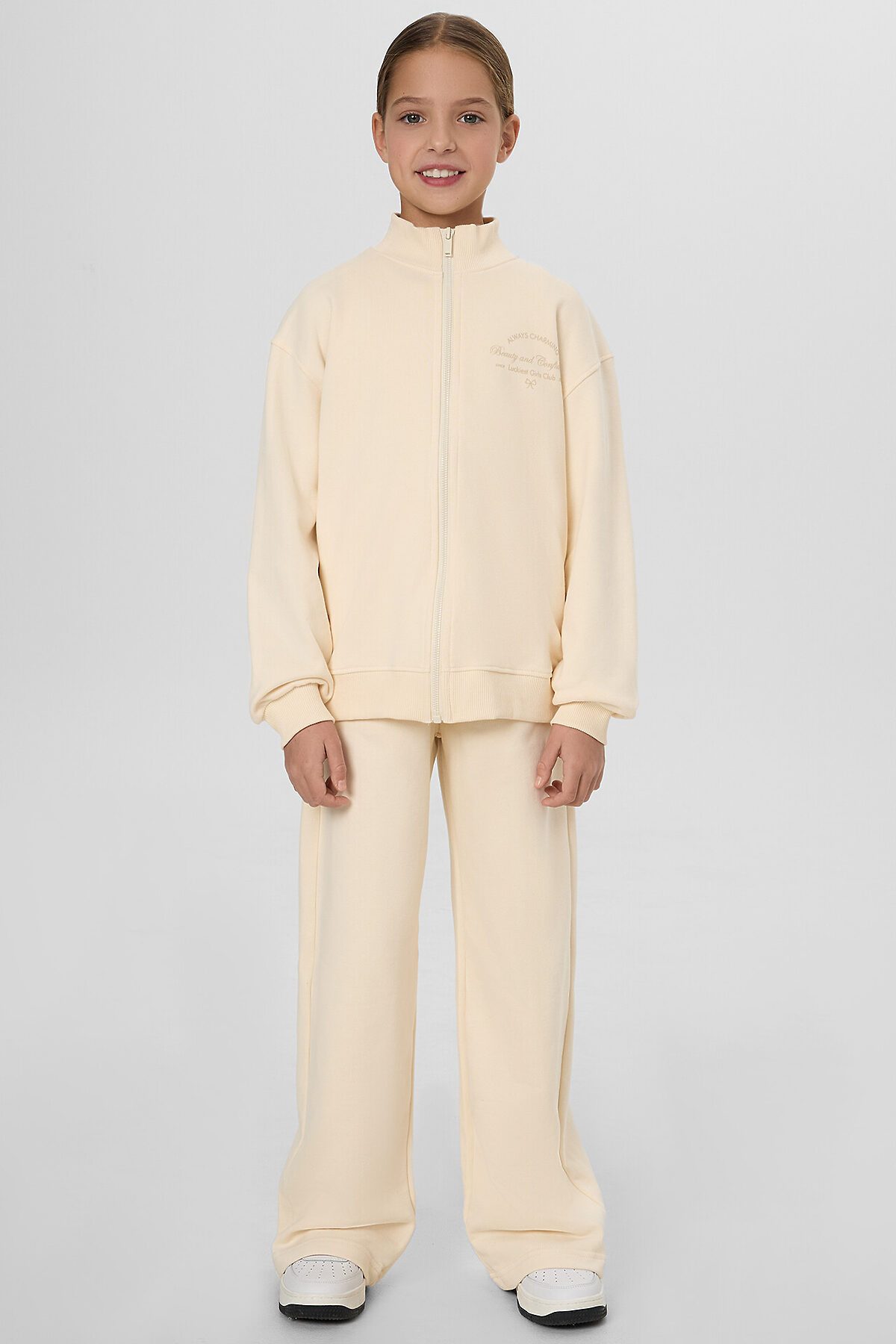 Стильная толстовка для девочек — это практичный и комфортный элемент гардероба, который станет незаменимым спутником в любое время года. Модель выполнена из футера без подчеса и имеет спущенное плечо, что придает ей стильный и современный вид. По низу рукавов — отрезные манжеты из рибаны, а отрезной пояс также выполнен из рибаны, что обеспечивает плотное и комфортное прилегание к фигуре. Застежка-молния позволяет легко надевать и снимать толстовку, делая ее удобной в использовании. Высококачественный хлопок в составе изделия обеспечивает мягкость и долговечность. А универсальный дизайн позволяет сочетать эту толстовку с различными элементами гардероба, создавая стильные повседневные образы. Она станет отличным вариантом как для занятий спортом, так и для прогулок с друзьями. Рекомендуем!