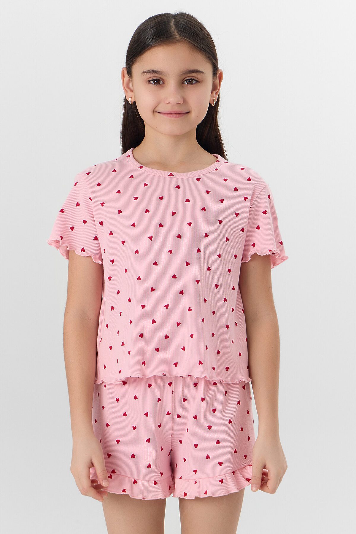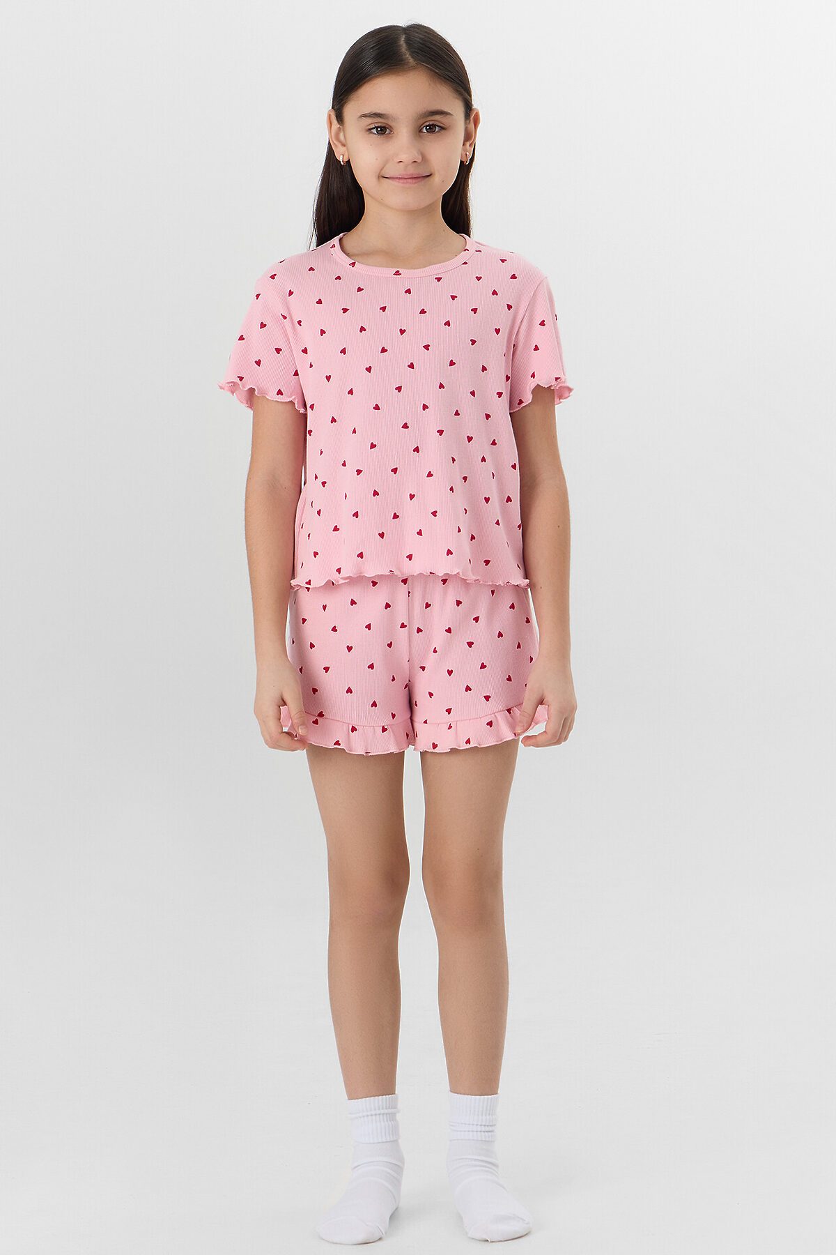 Комплект для девочек (футболка, шорты) MARK FORMELLE, сердечки на розовом