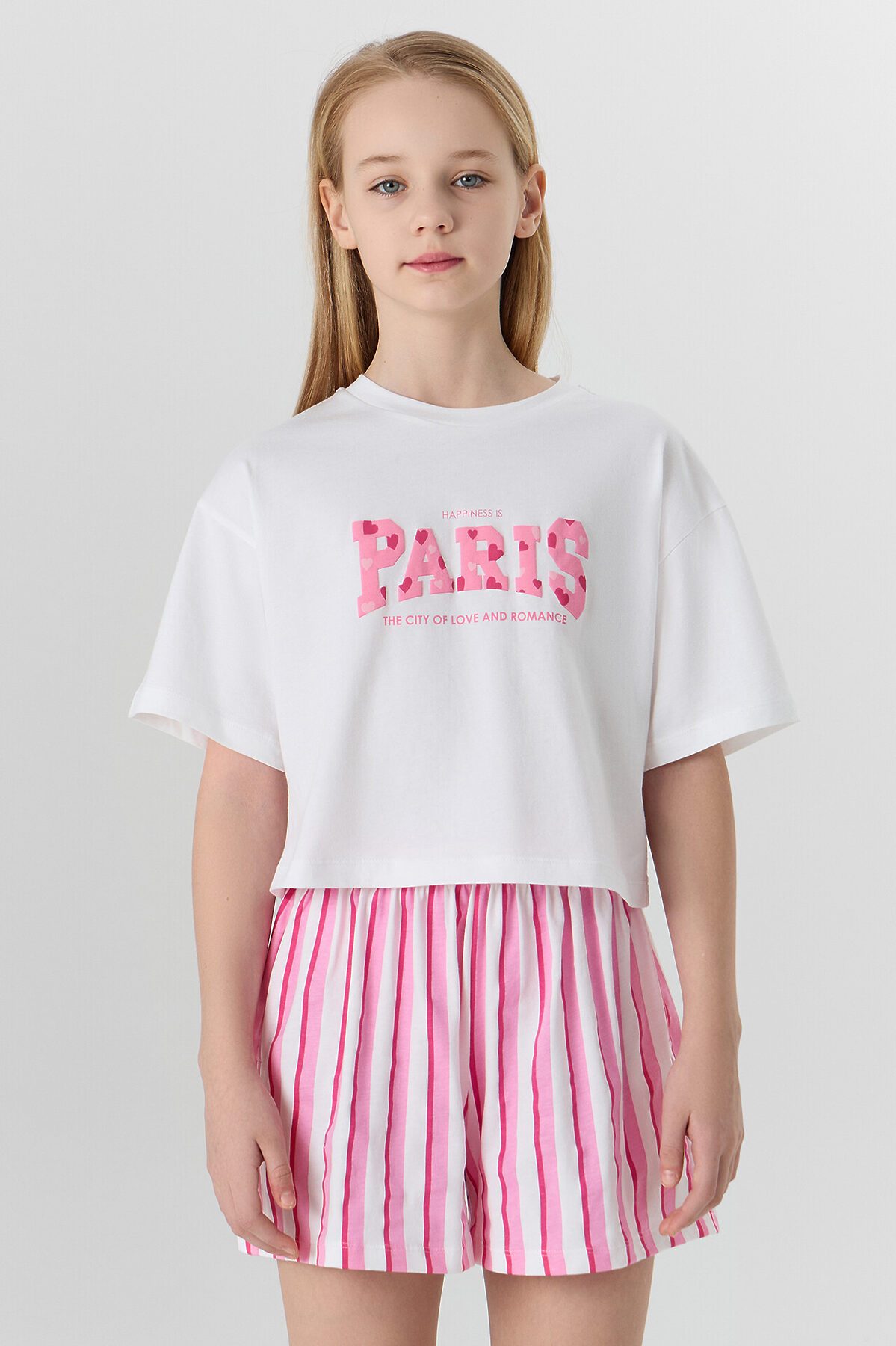 Комплект для девочек (футболка, шорты) MARK FORMELLE, белый +розовая полоска