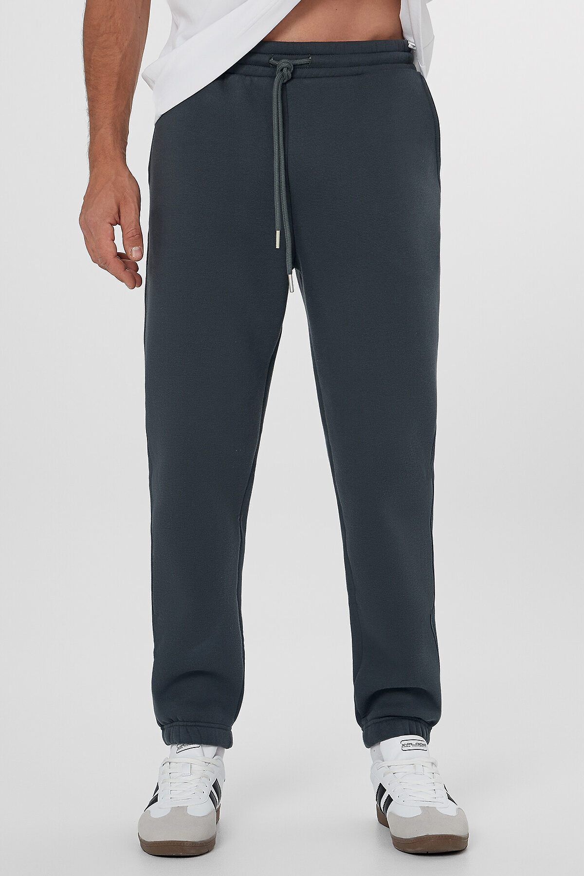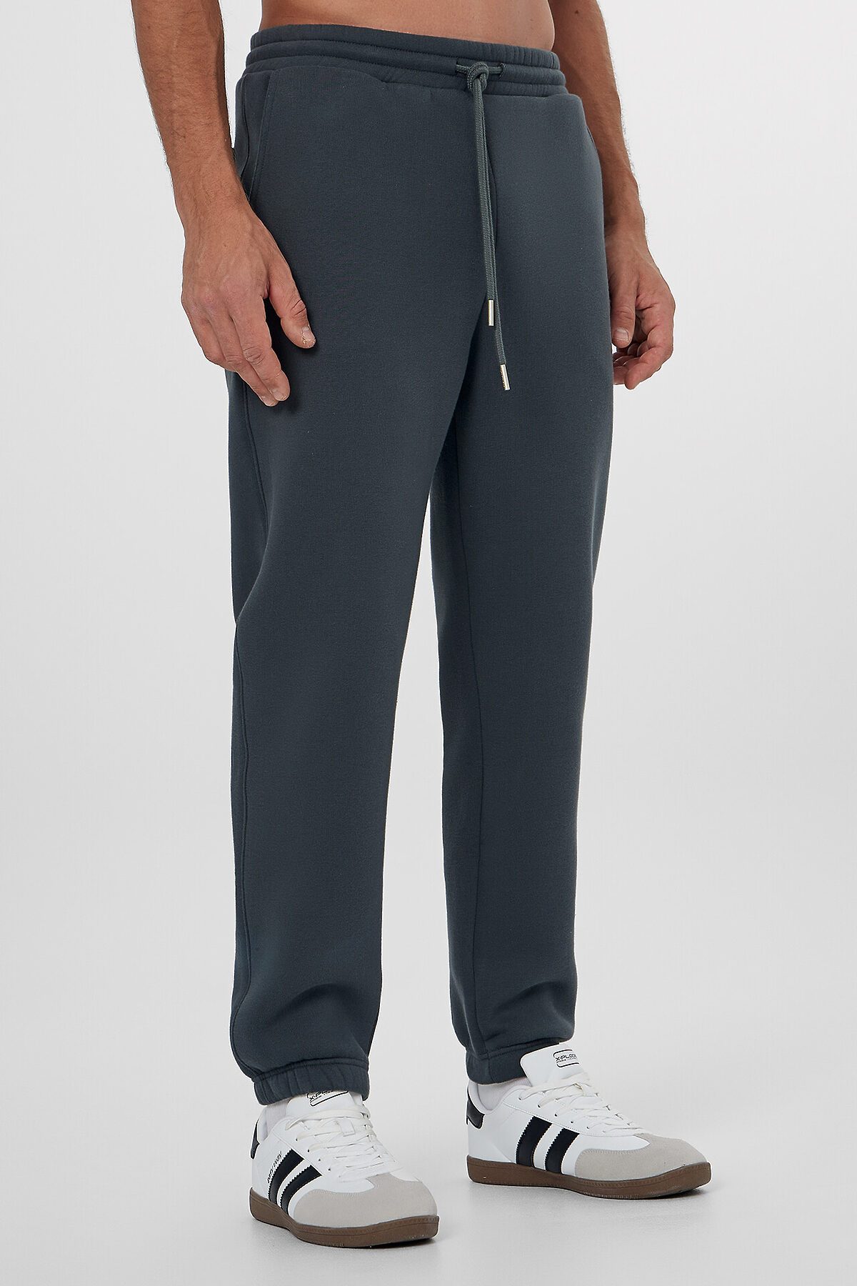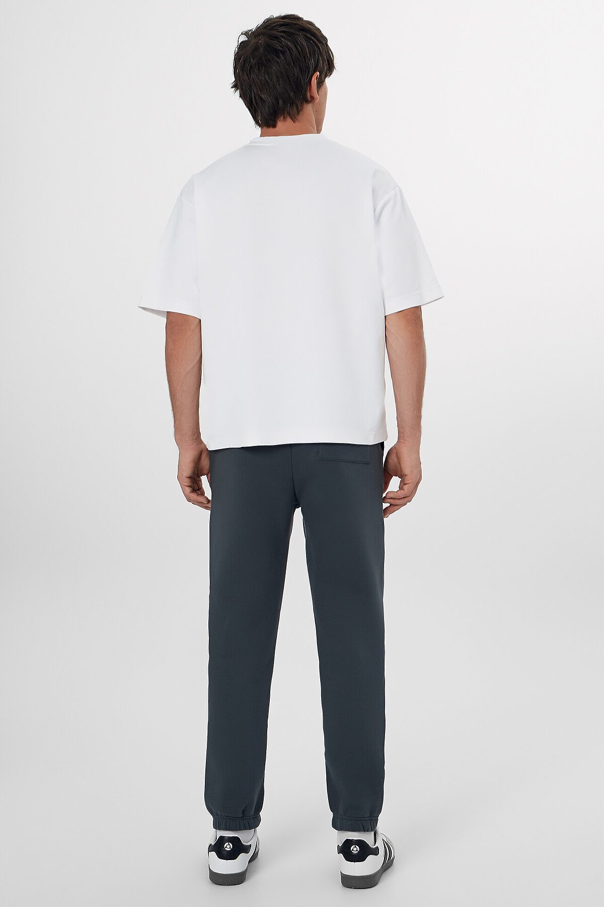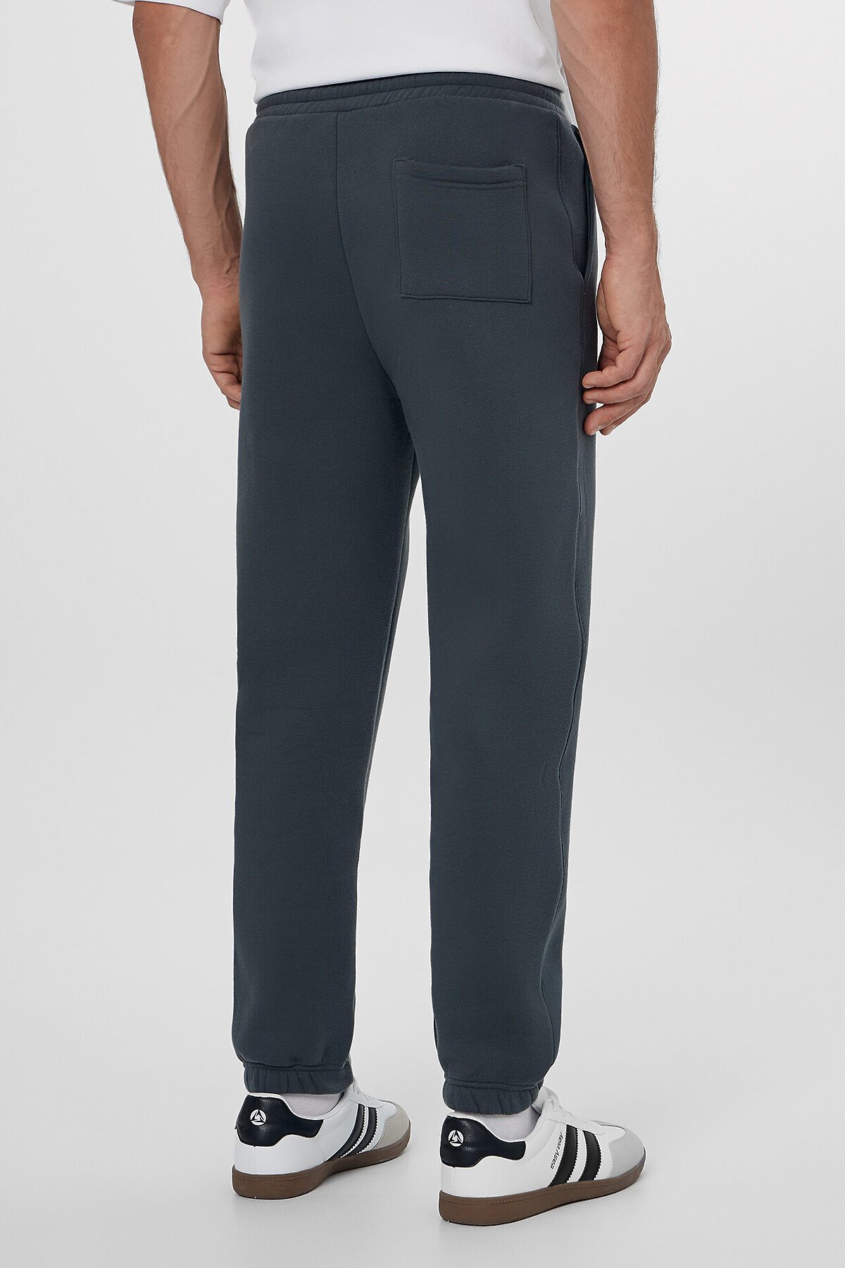 Джогеры прямые, зауженные к низу. Пояс отрезной с эластичной тесьмой внутри. С внутренней стороны пояса пробиты петли и втянут шнур с эглетами (8EКXWCp-1). В боковых швах обработаны карманы - хулиганы, подкладка карман из кулирки. На задней правой половинке накладной карман, по заданию. Нижние срезы брюк обработаны швом вподгибку с эластичной тесьмой внутри.