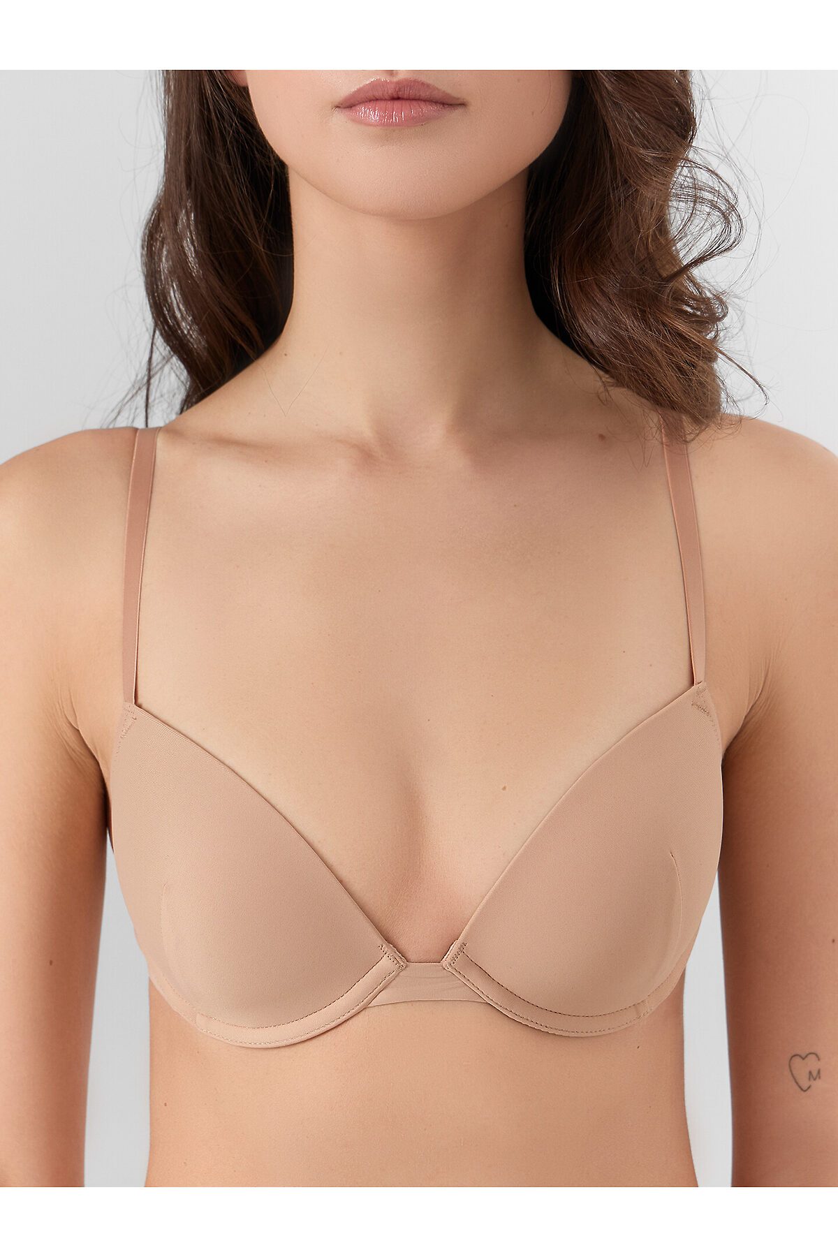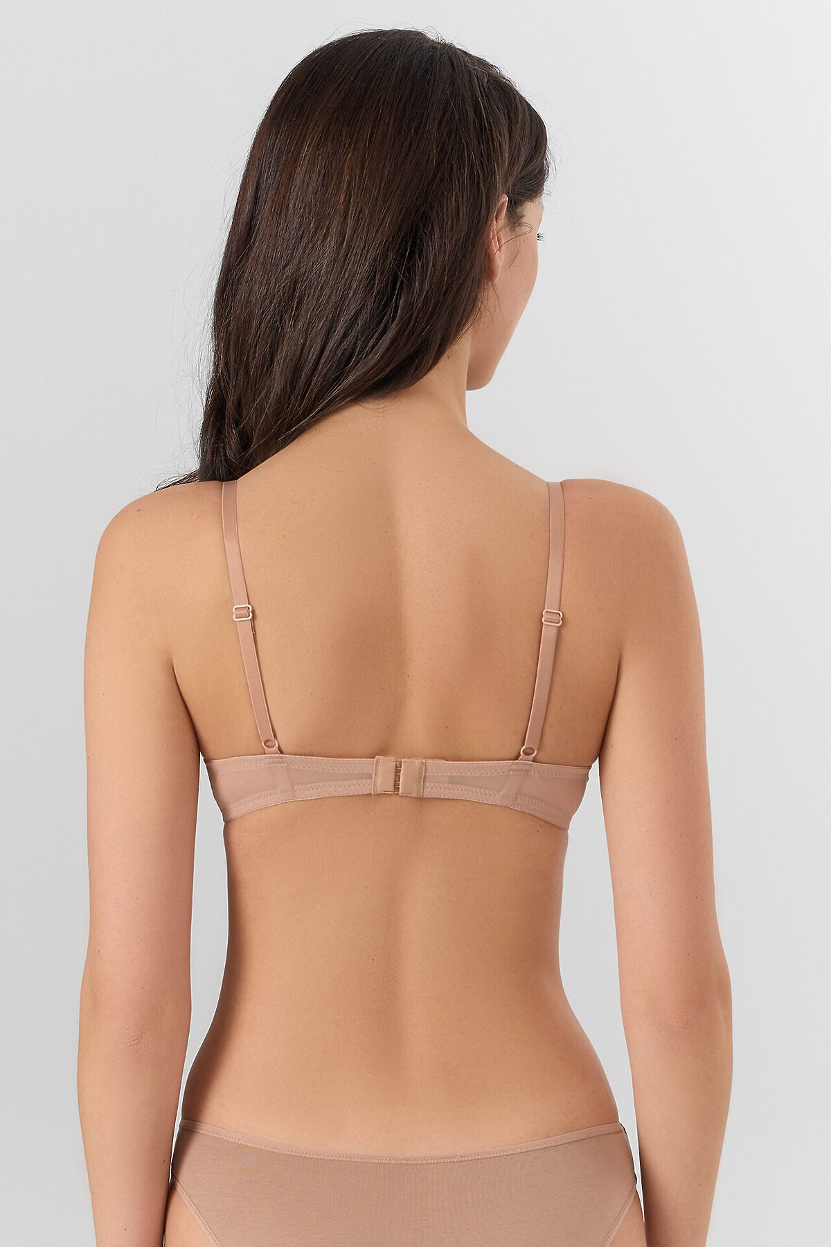 Женский бюстгальтер на каркасах с формованными чашками — это удачное сочетание комфорта, поддержки и элегантного дизайна. Чашки выполнены из гладкой микрофибры, приятной на ощупь, с вытачкой, которая обеспечивает анатомически правильную посадку и подчеркивает естественную форму груди. Каркасная конструкция надежно поддерживает грудь, делая модель подходящей для ежедневной носки. Боковые детали изготовлены из эластичной сетки, которая обеспечивает дополнительную вентиляцию и легкость. Бретели регулируются по длине с помощью металлических колец-регуляторов, позволяя адаптировать бюстгальтер под индивидуальные параметры. Застежка на спинке — двойная, на крючках, обеспечивает удобство и надежную фиксацию. Такая модель отличается лаконичным стилем и универсальностью, легко сочетается с трусиками из нашей коллекции, создавая минималистичные комплекты на каждый день.